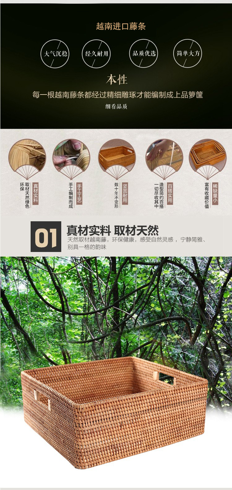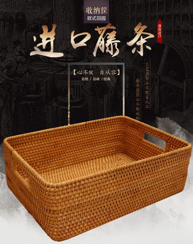 越南藤编收纳筐藤编筐收纳篮桌面内衣藤编收纳盒收纳筐藤条大号