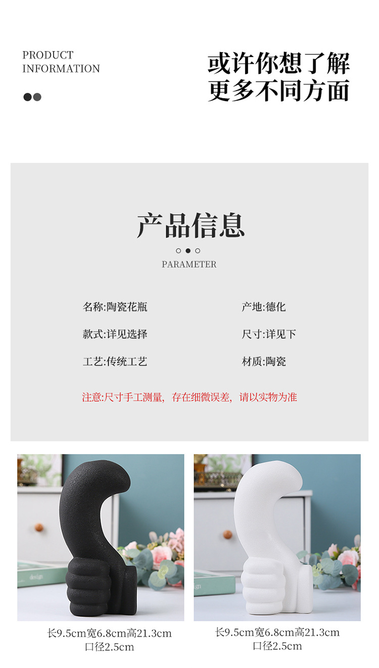 大拇指个性创意北欧花瓶客厅插花现代家居桌面摆件陶瓷艺术装饰品