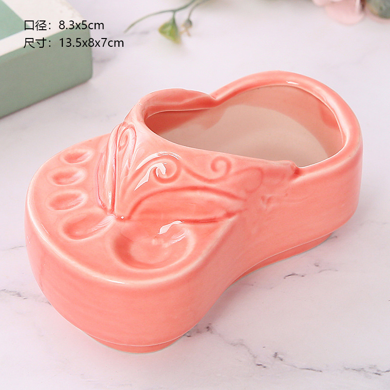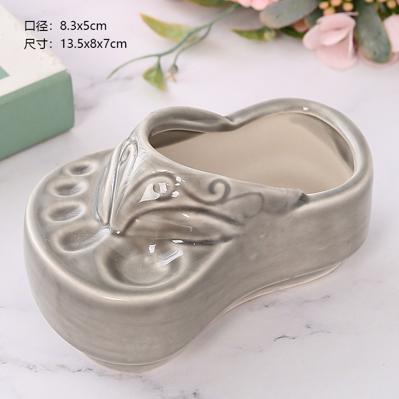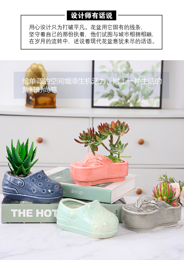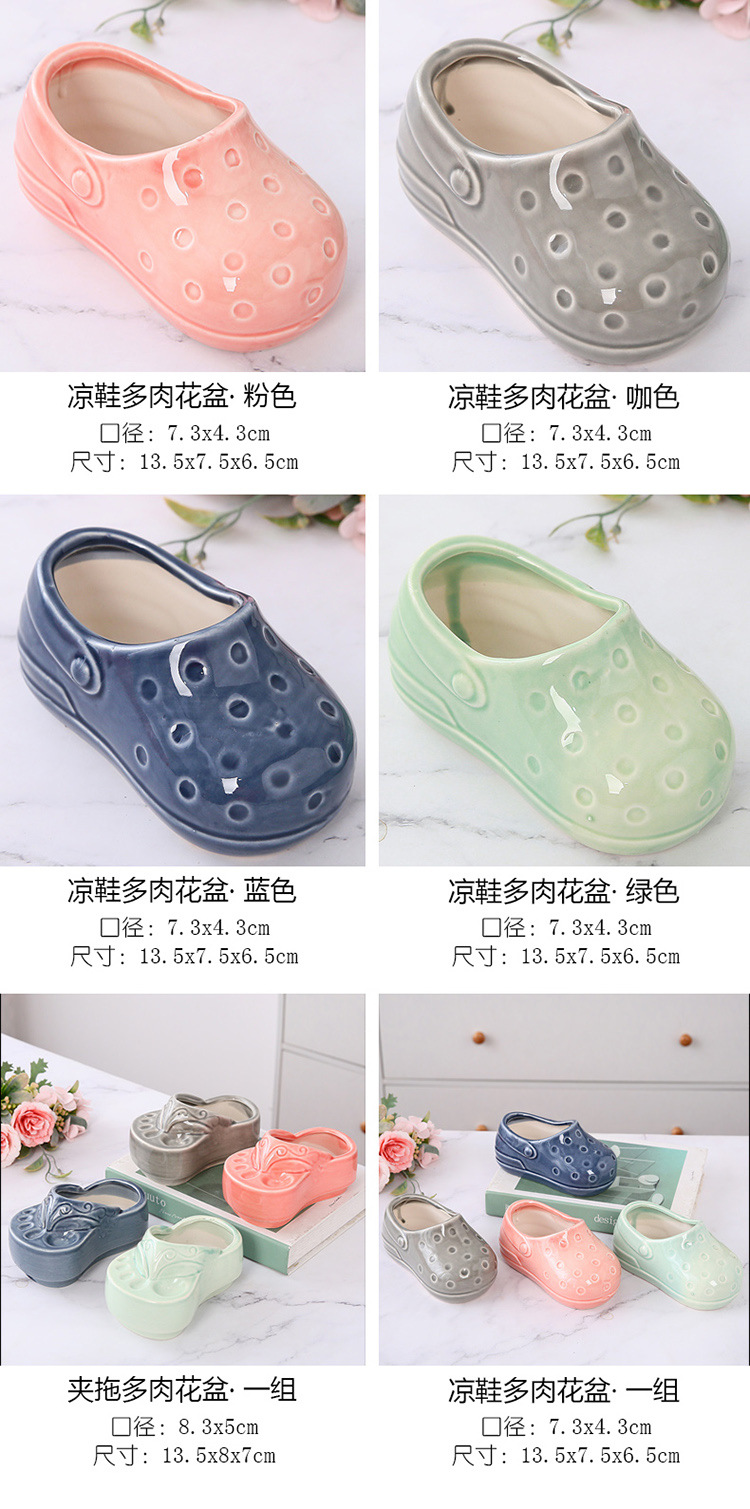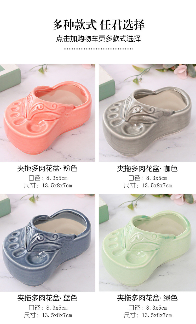 批发个性陶瓷多肉植物花盆可爱拖鞋鞋子简约清新糖果色桌面家居盆