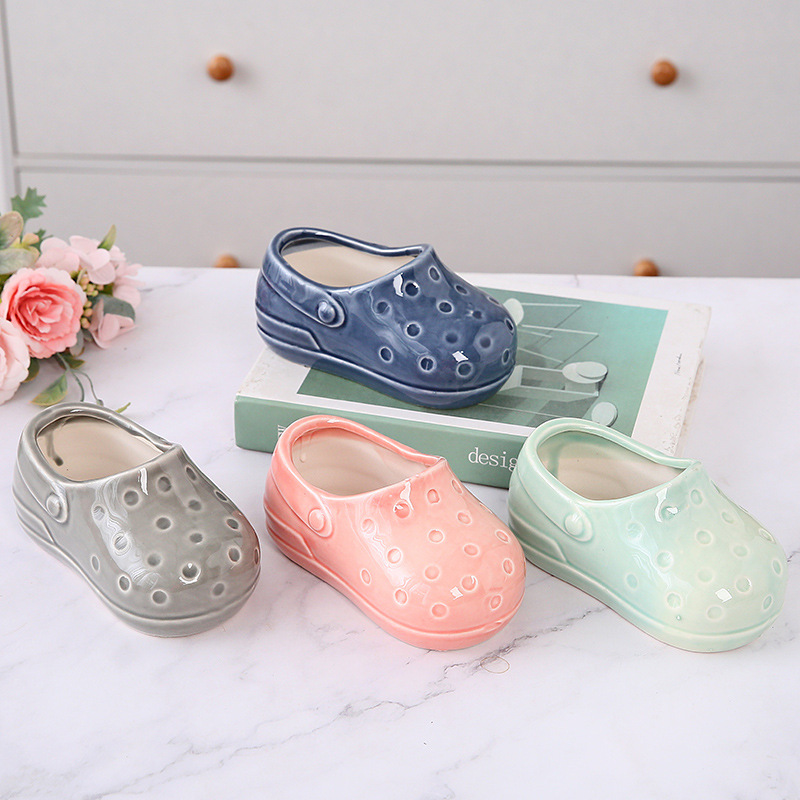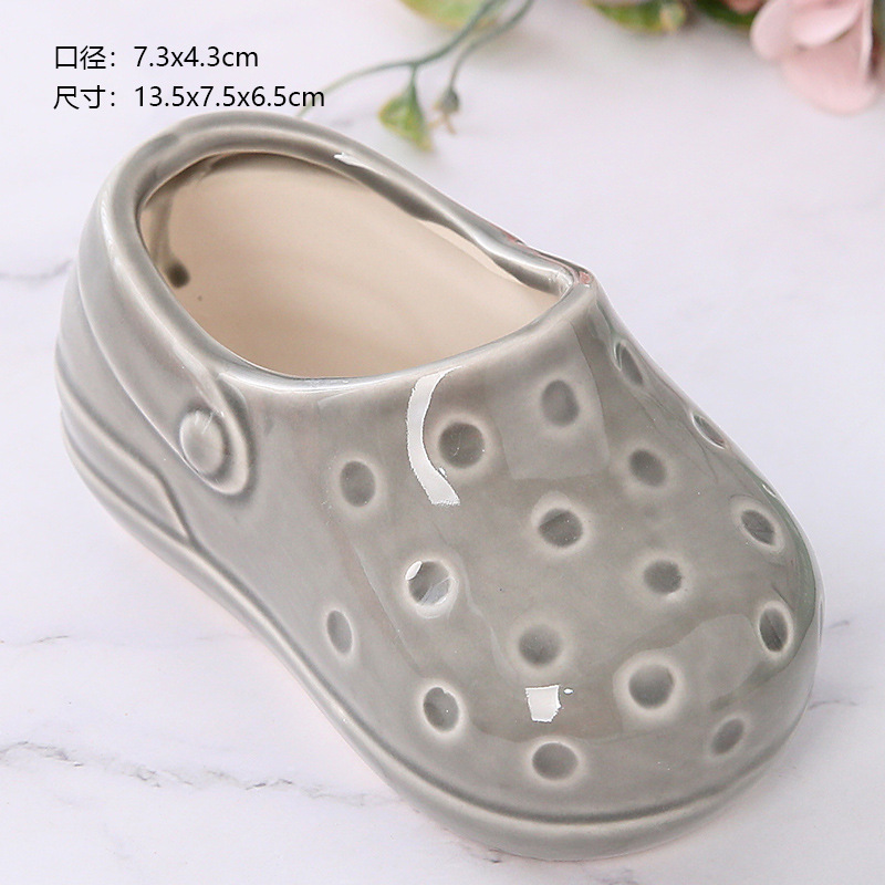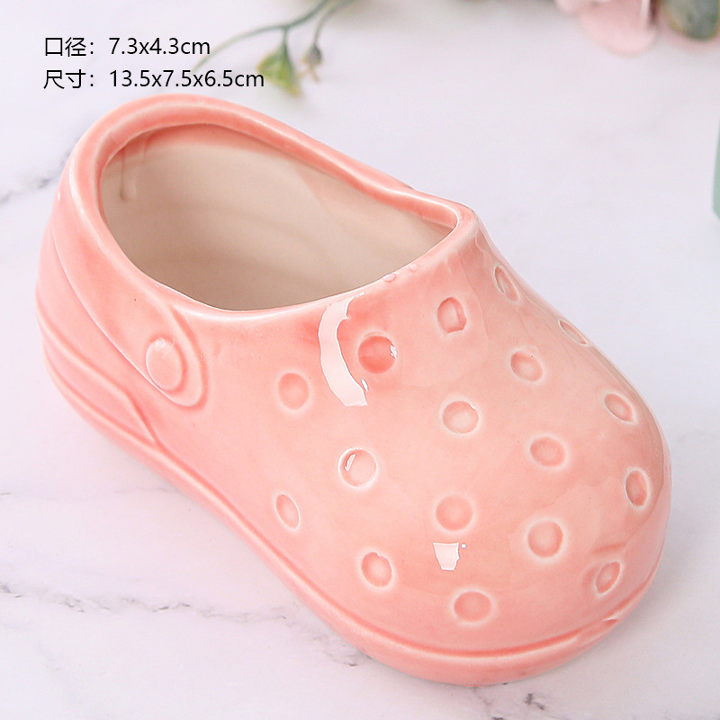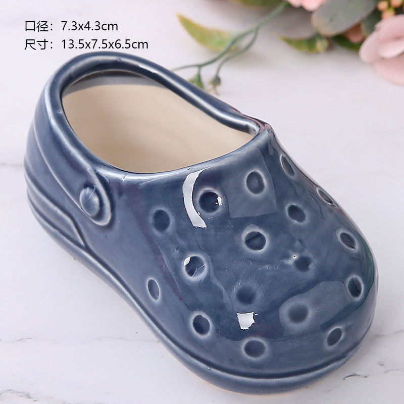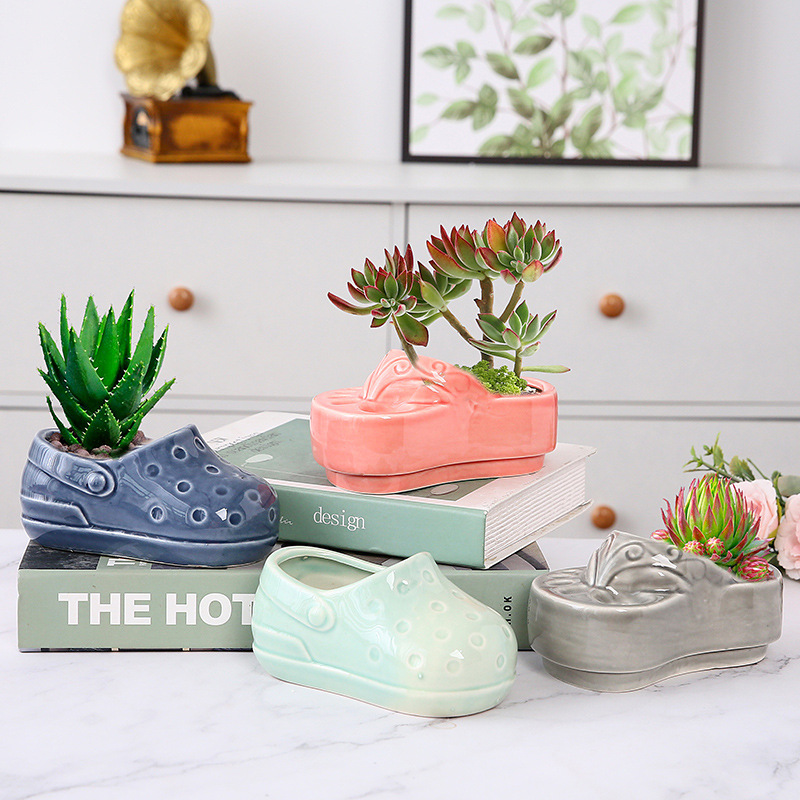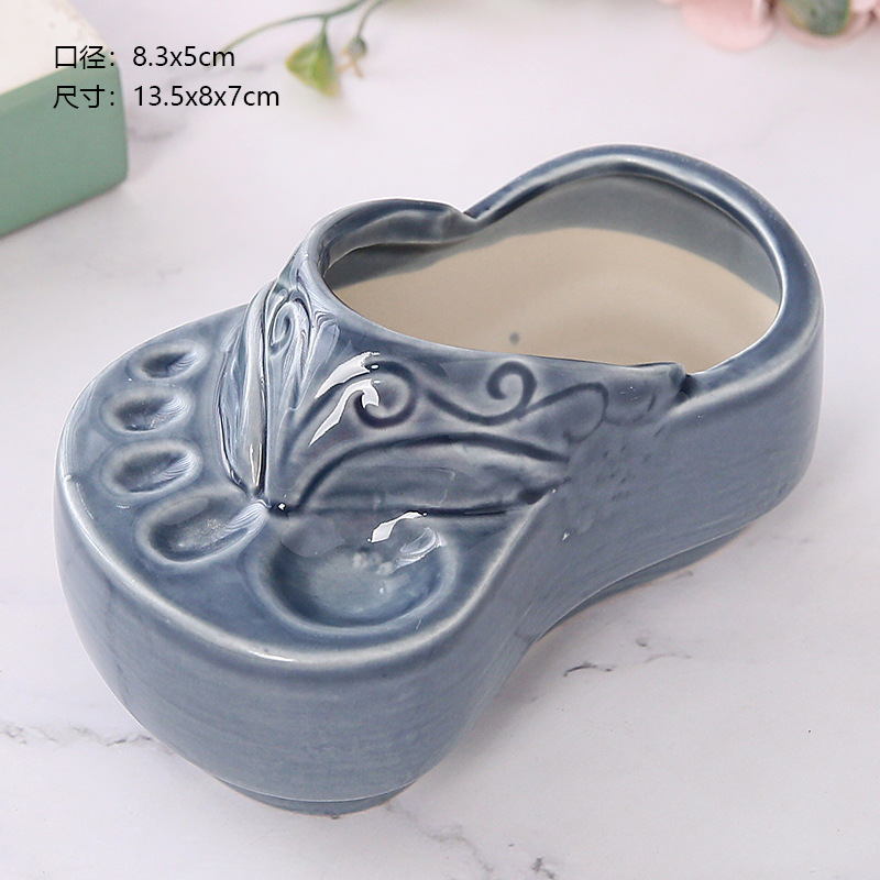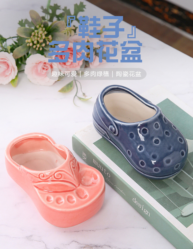 批发个性陶瓷多肉植物花盆可爱拖鞋鞋子简约清新糖果色桌面家居盆