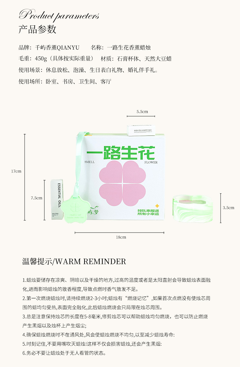 一路生花扩香石香薰蜡烛礼盒室内房间香氛生日伴手礼物精油摆件