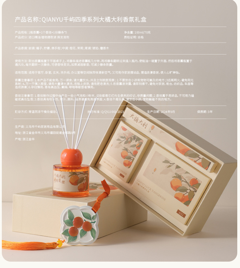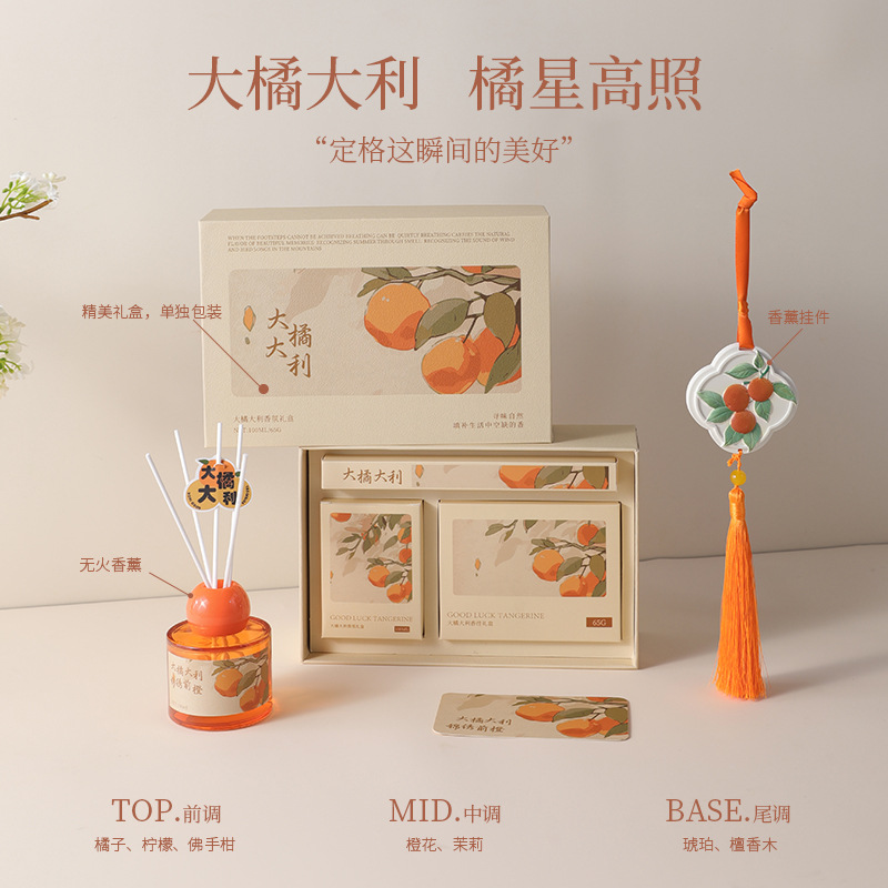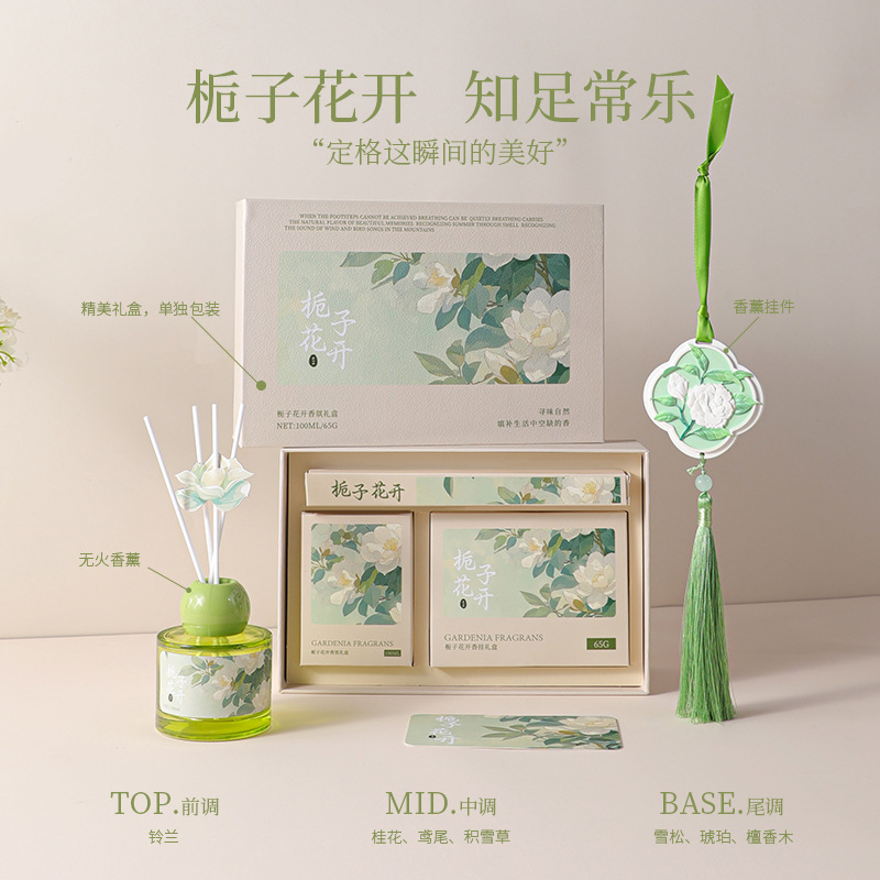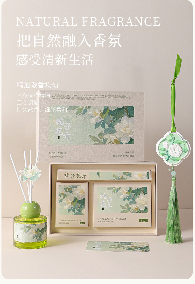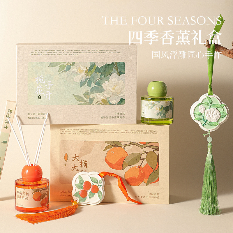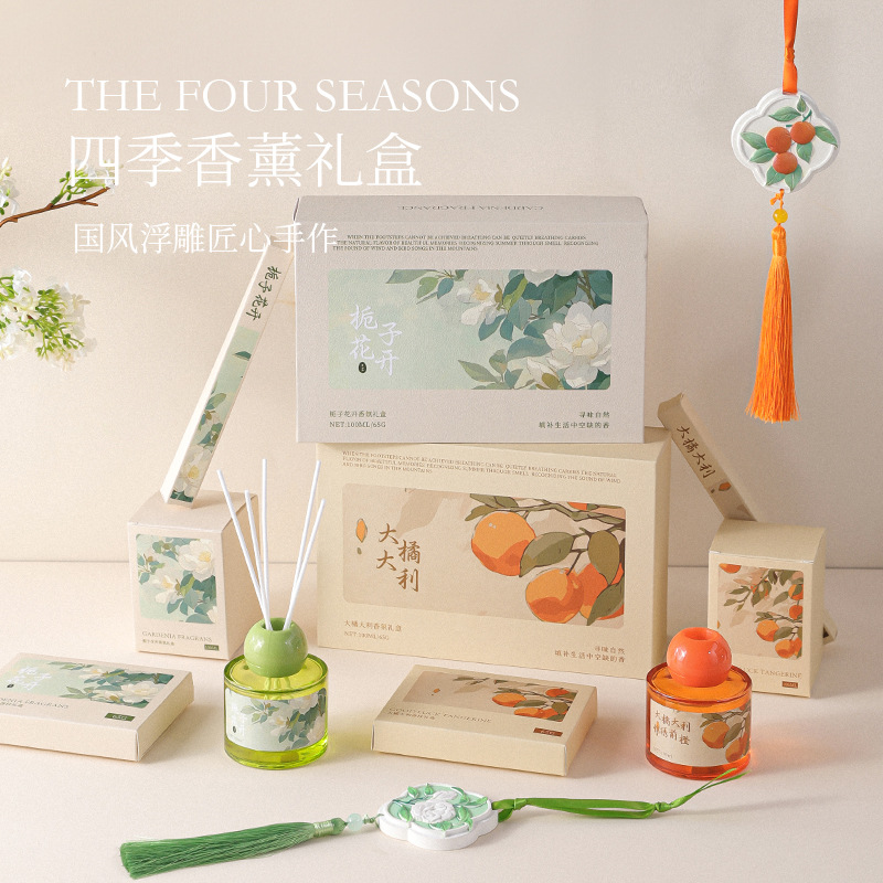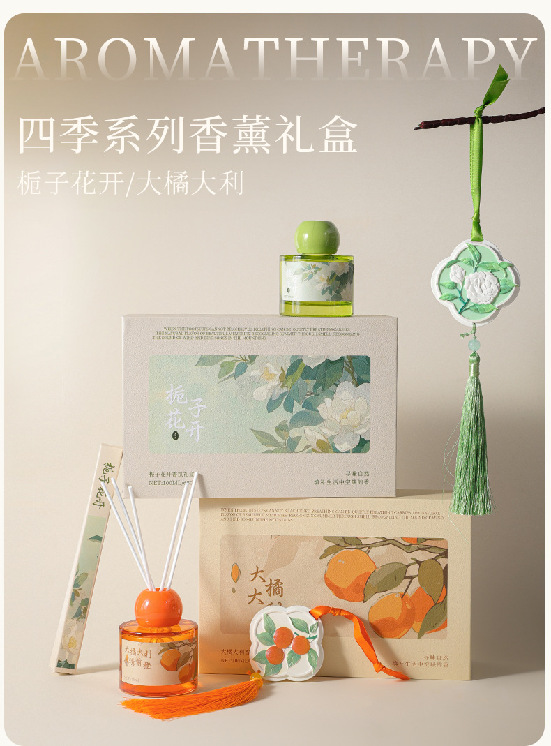 四季香薰礼盒大橘大利栀子花开香薰礼盒高级感室内摆件香薰片挂件