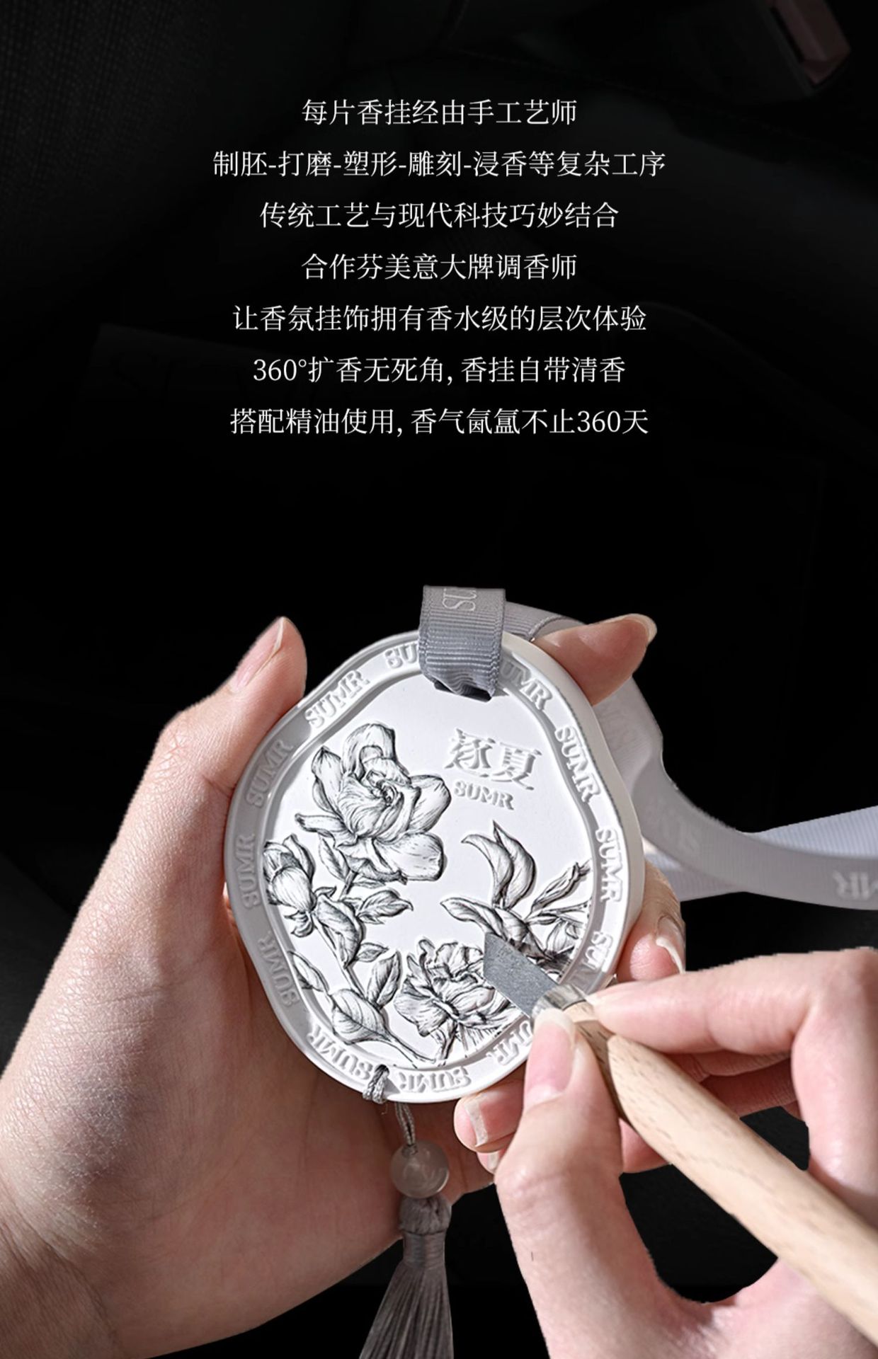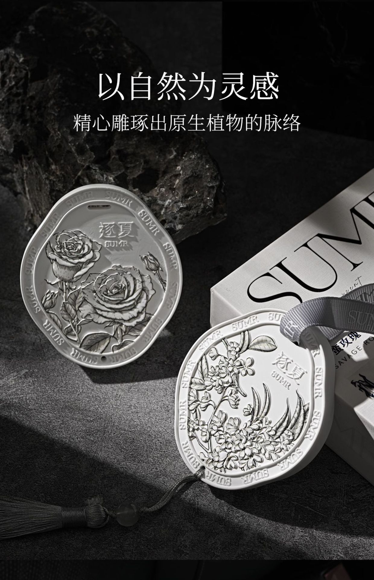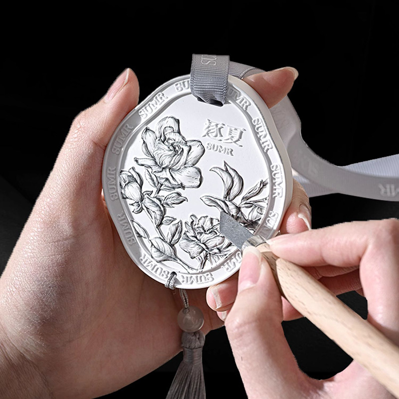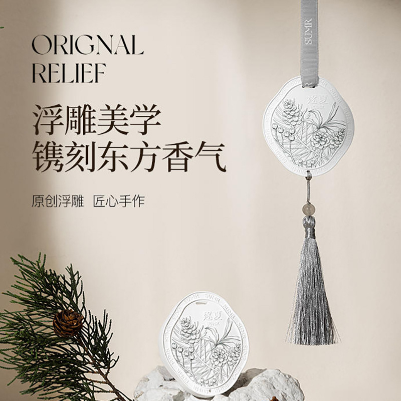 定制国风浮雕香薰石膏片扩香石文艺汽车衣橱持久除臭家用挂件香氛