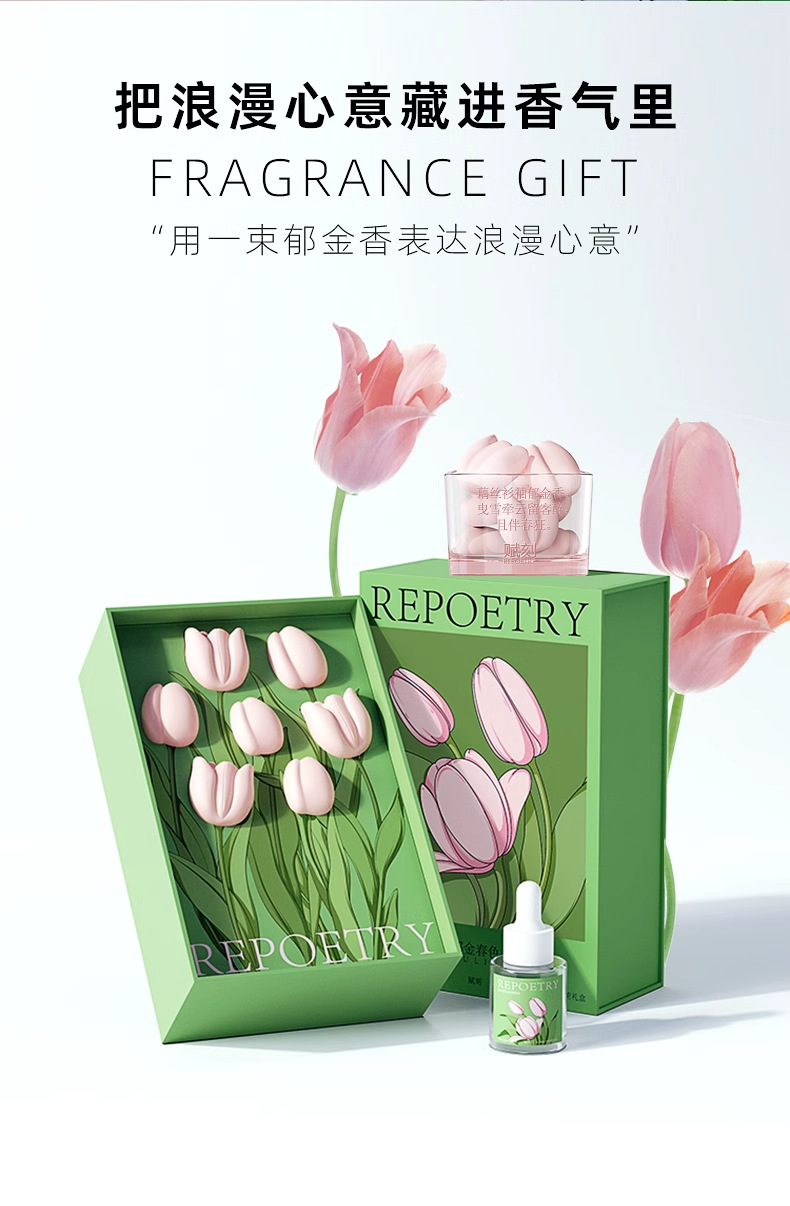 定制赋刻郁金香扩香石车载香氛挂件无火香薰摆件香薰礼盒伴手礼盒