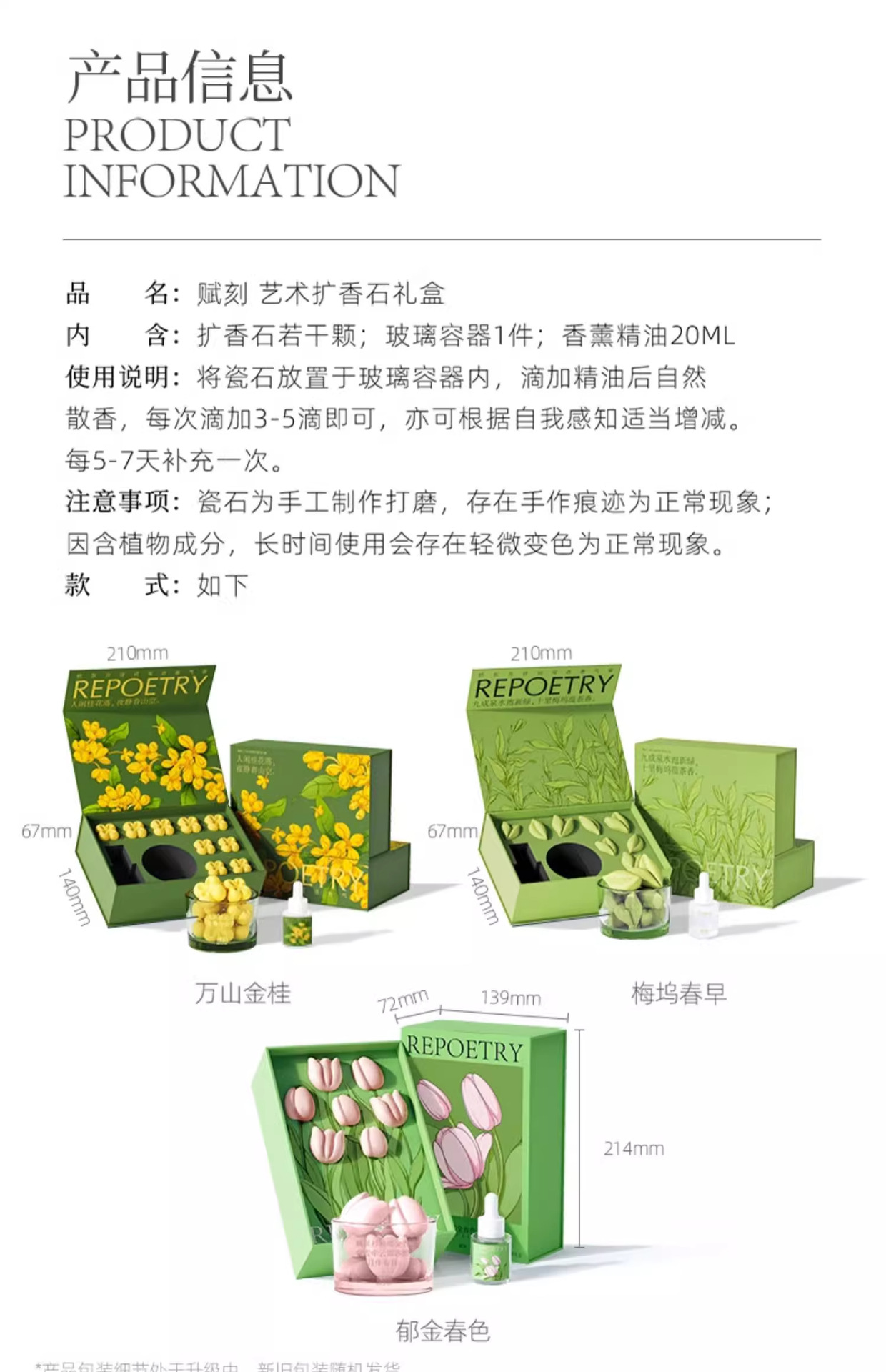 定制赋刻桂花扩香石香薰礼盒车载香氛挂件无火香薰摆件伴手礼盒装
