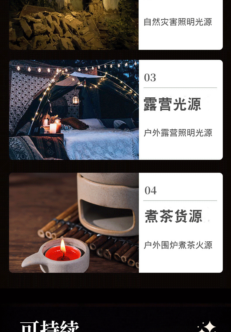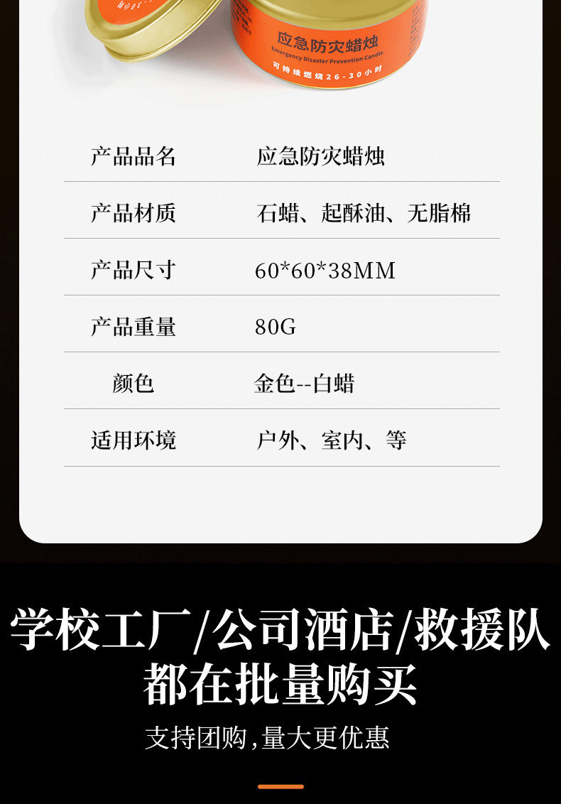 应急蜡烛防灾家用停电紧急照明光源铁罐石蜡野外露营防风防水批发