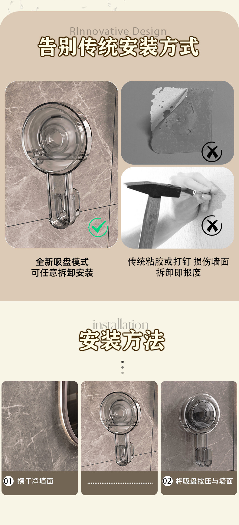 吸盘挂钩浴室卫生间免打孔强力承重厨房门后墙壁透明款式无痕粘钩