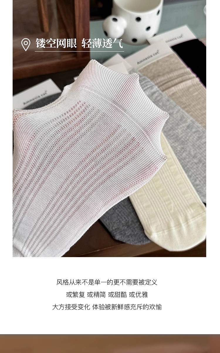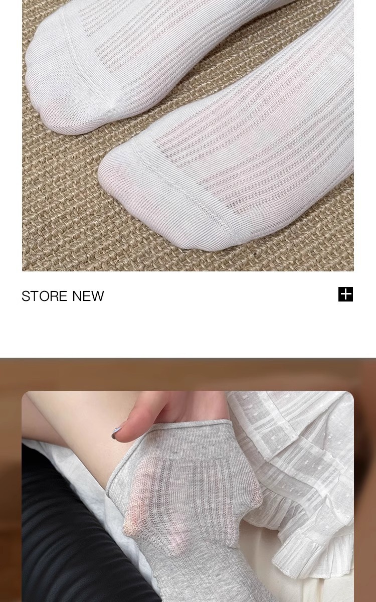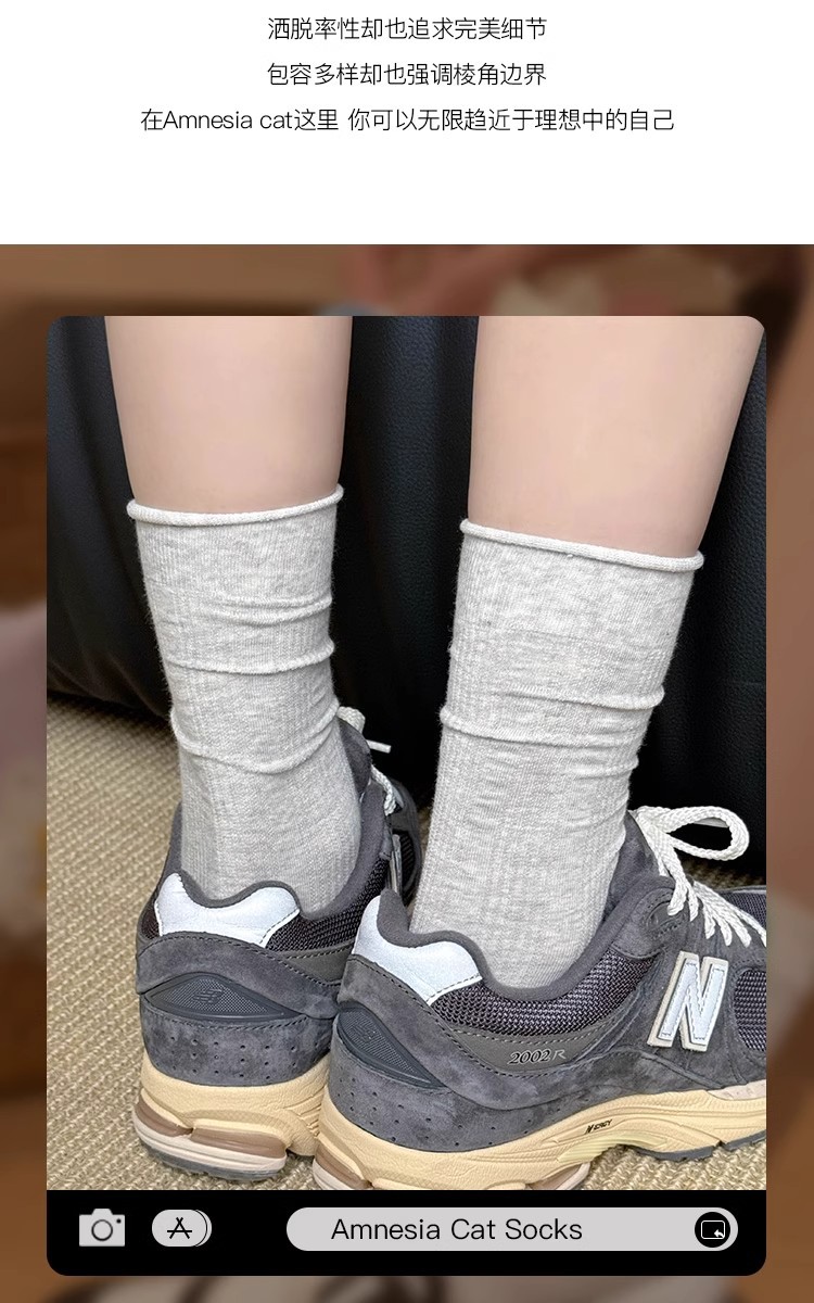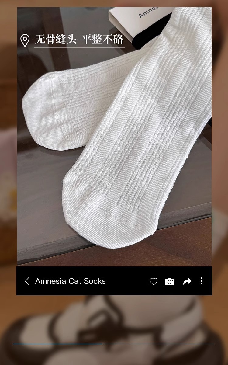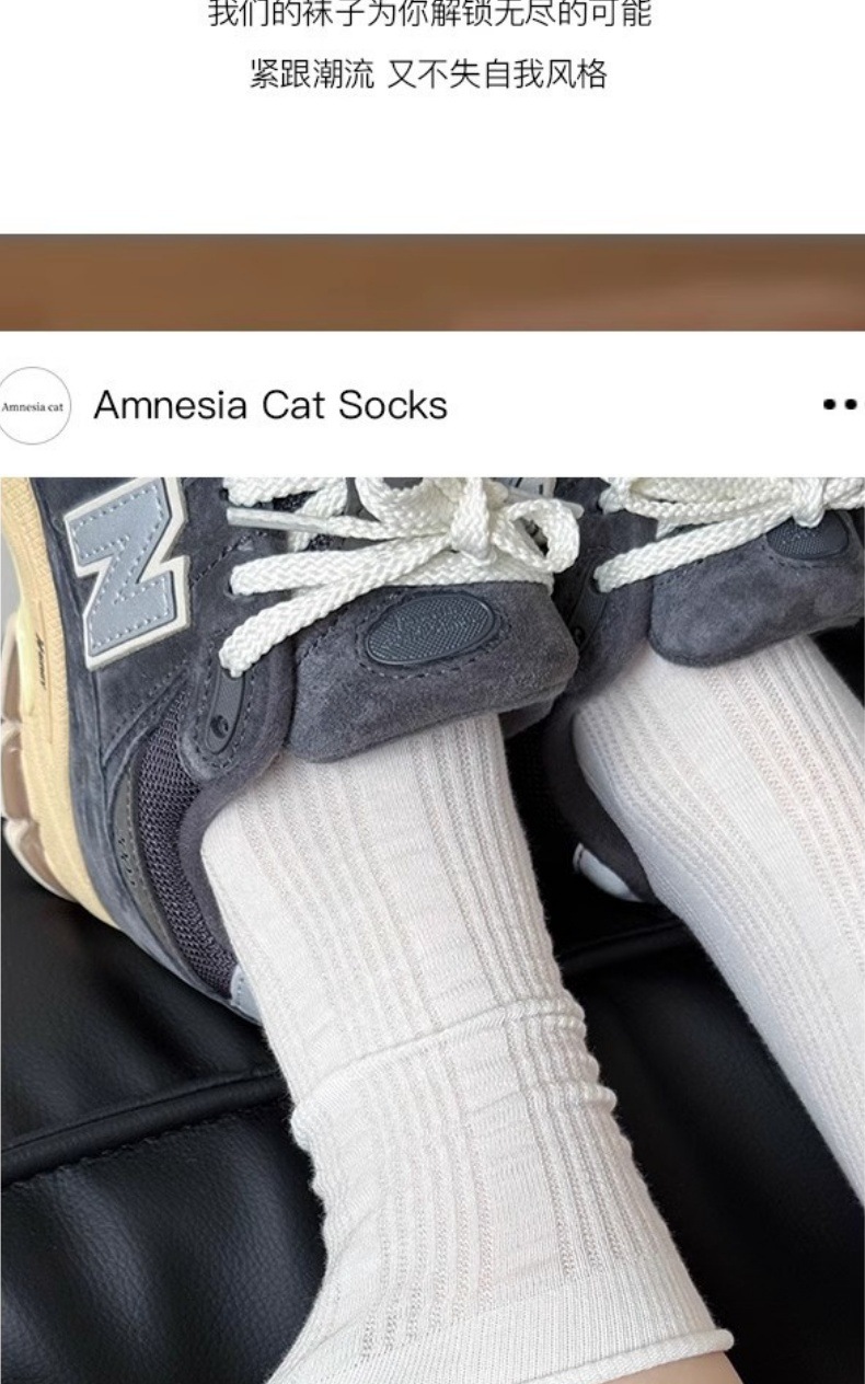 白色袜子女中筒袜夏季薄款纯棉日系堆堆袜卷边竖条无骨长筒袜春秋