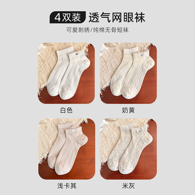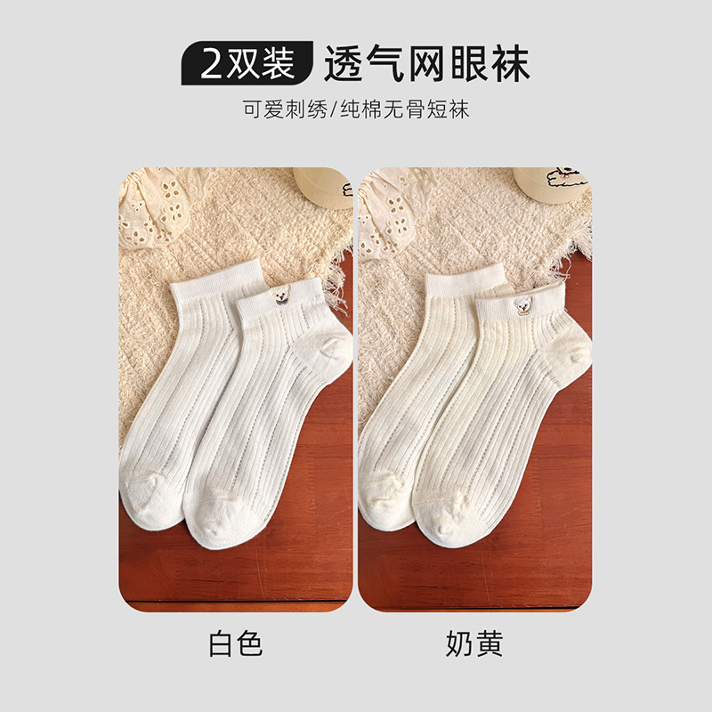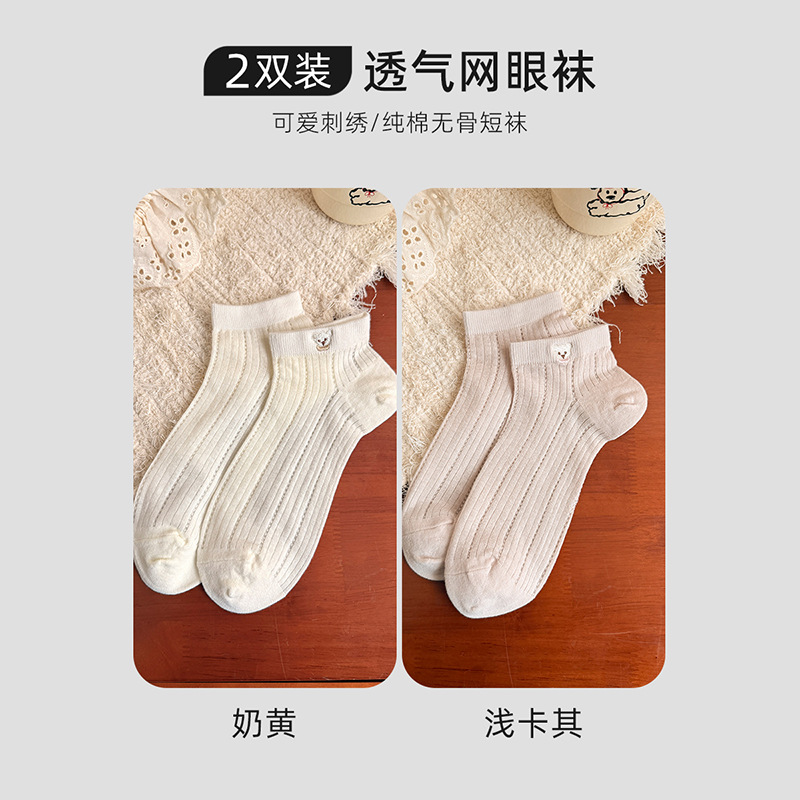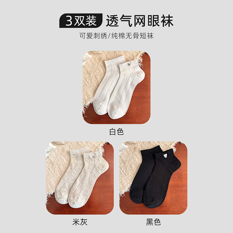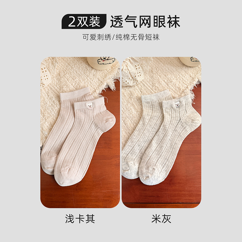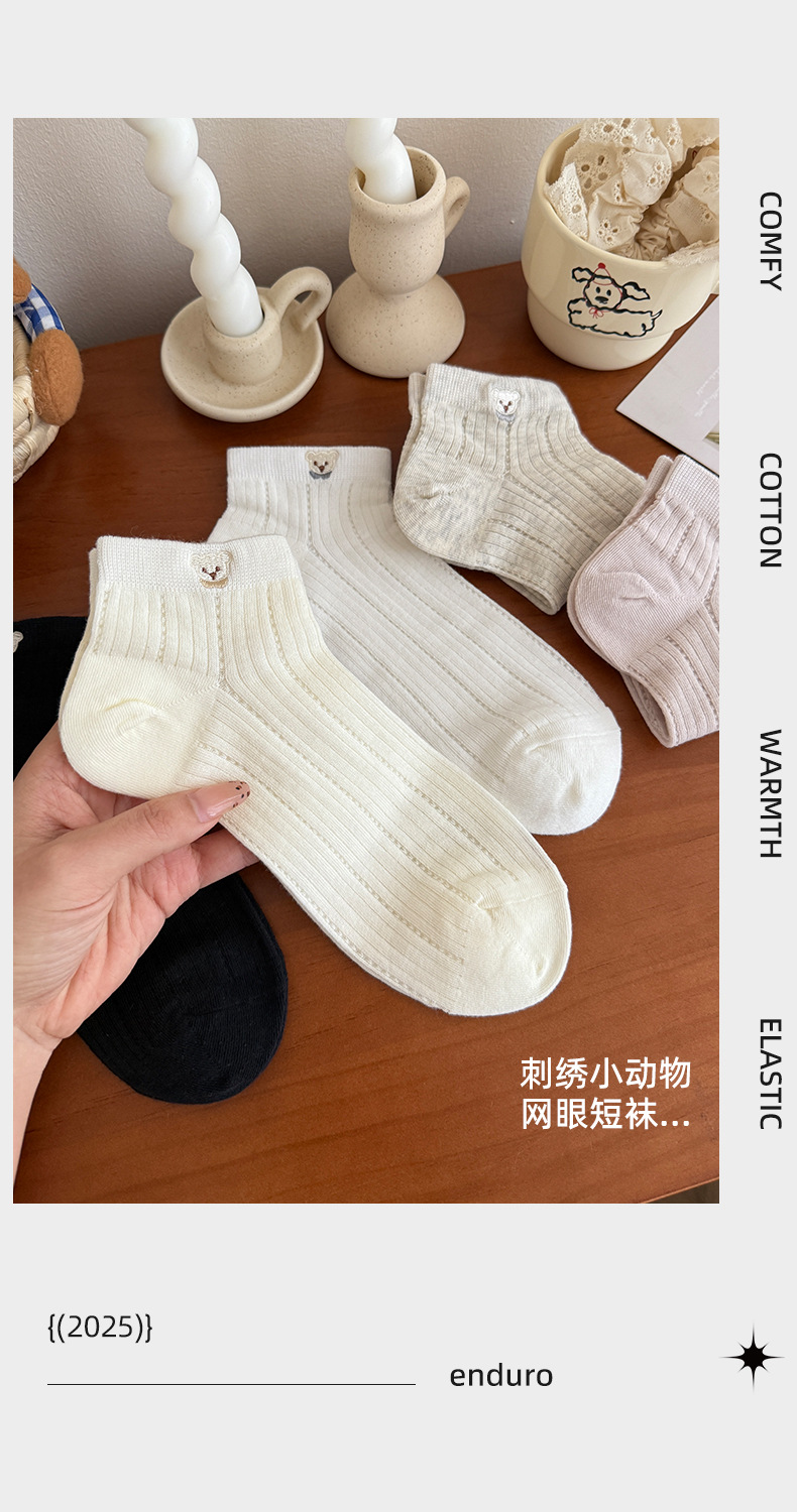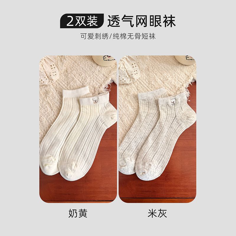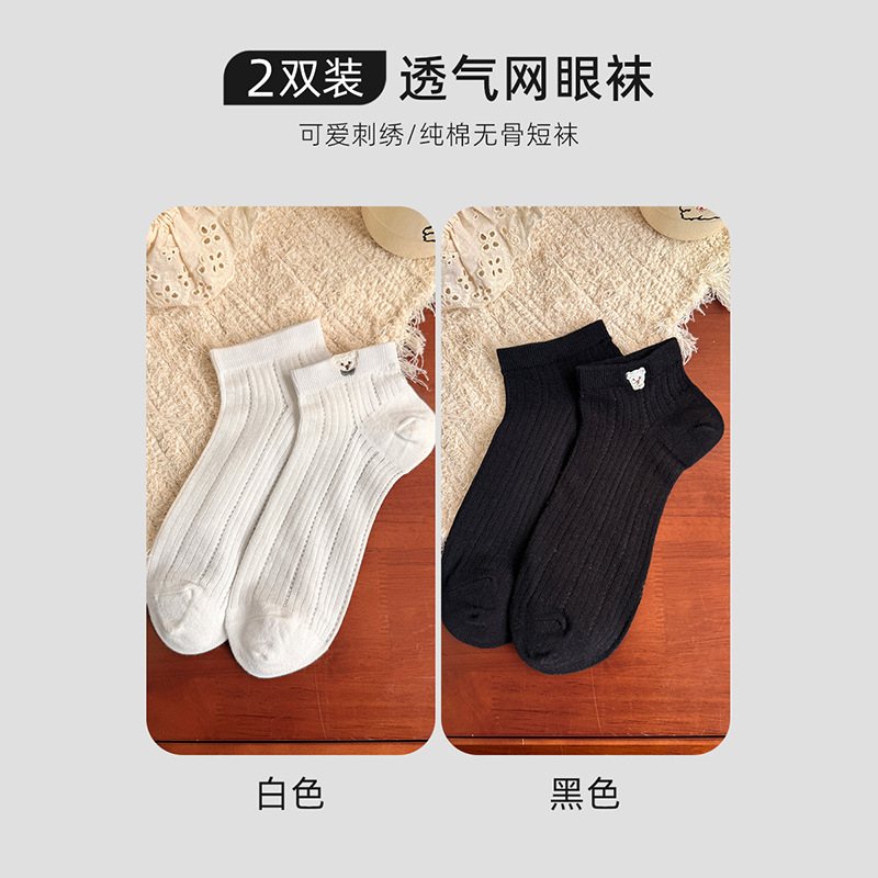 船袜女夏季薄棉袜小狗刺绣网眼中筒袜吸汗防臭经典百搭短袜女袜子