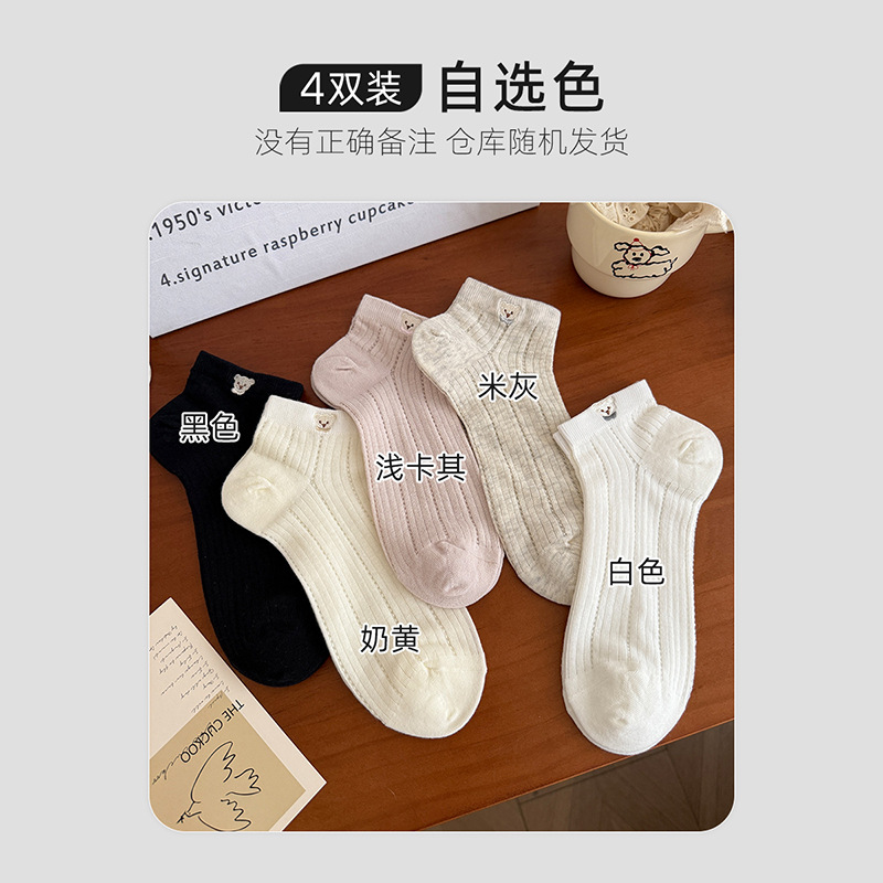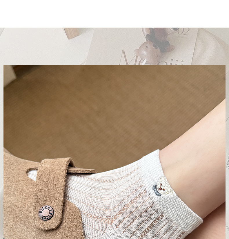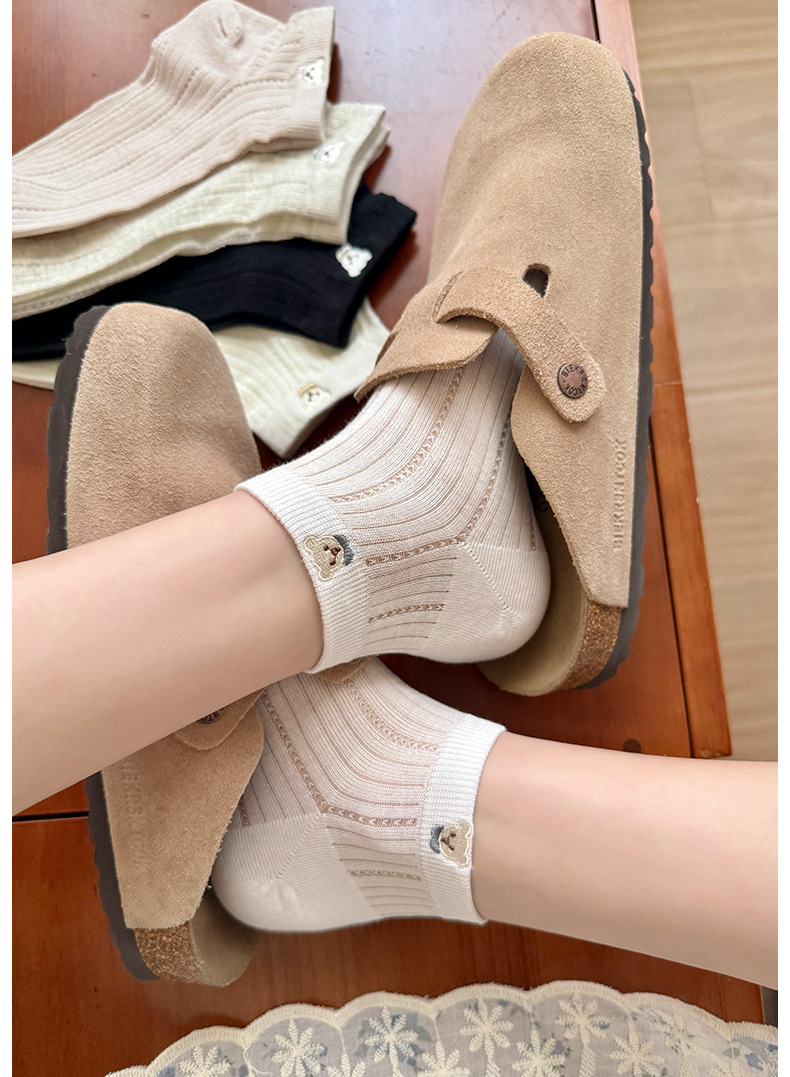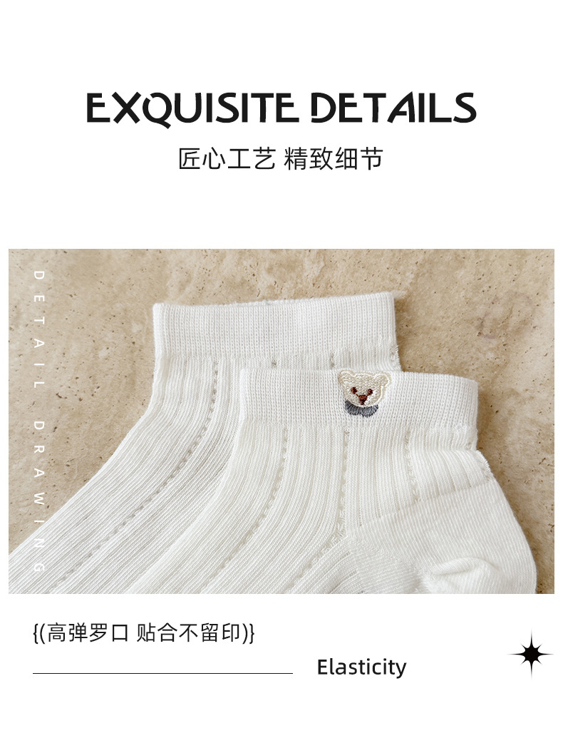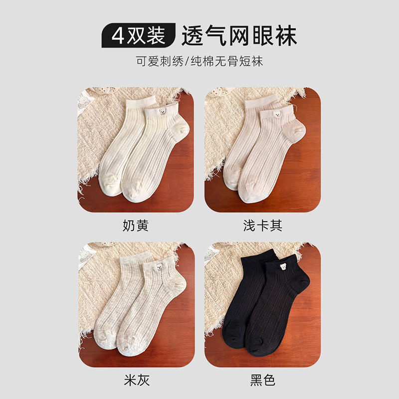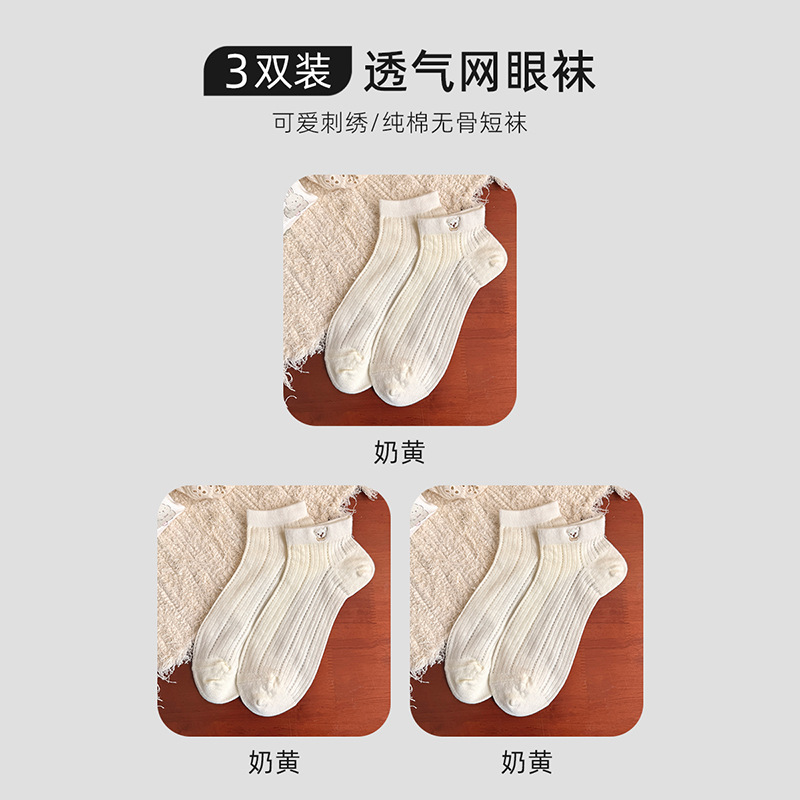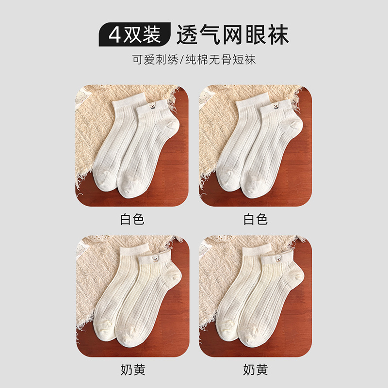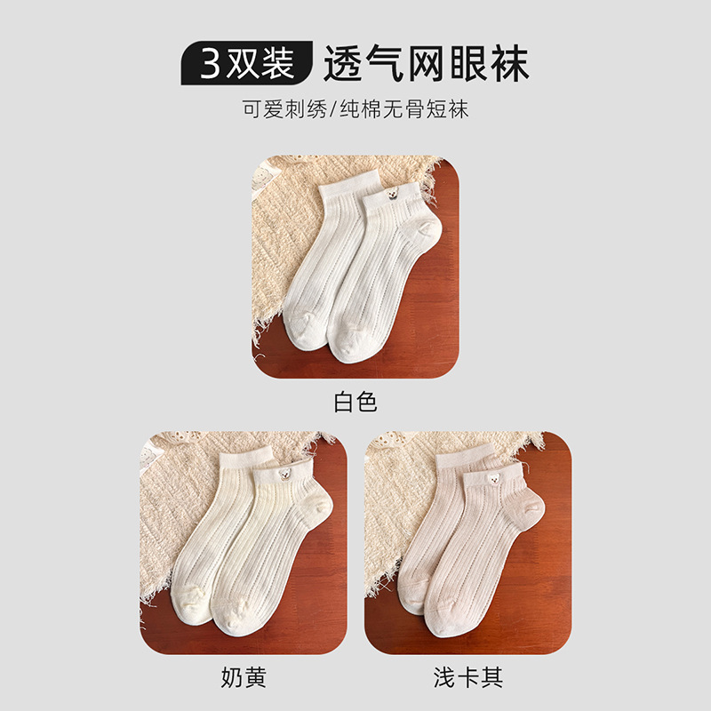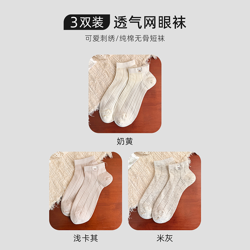 船袜女夏季薄棉袜小狗刺绣网眼中筒袜吸汗防臭经典百搭短袜女袜子