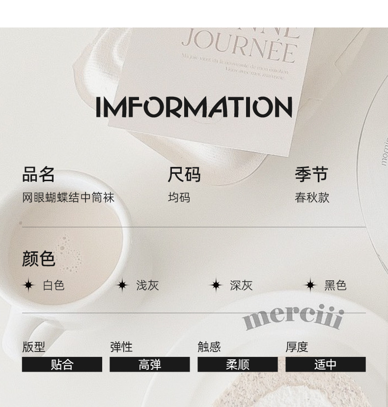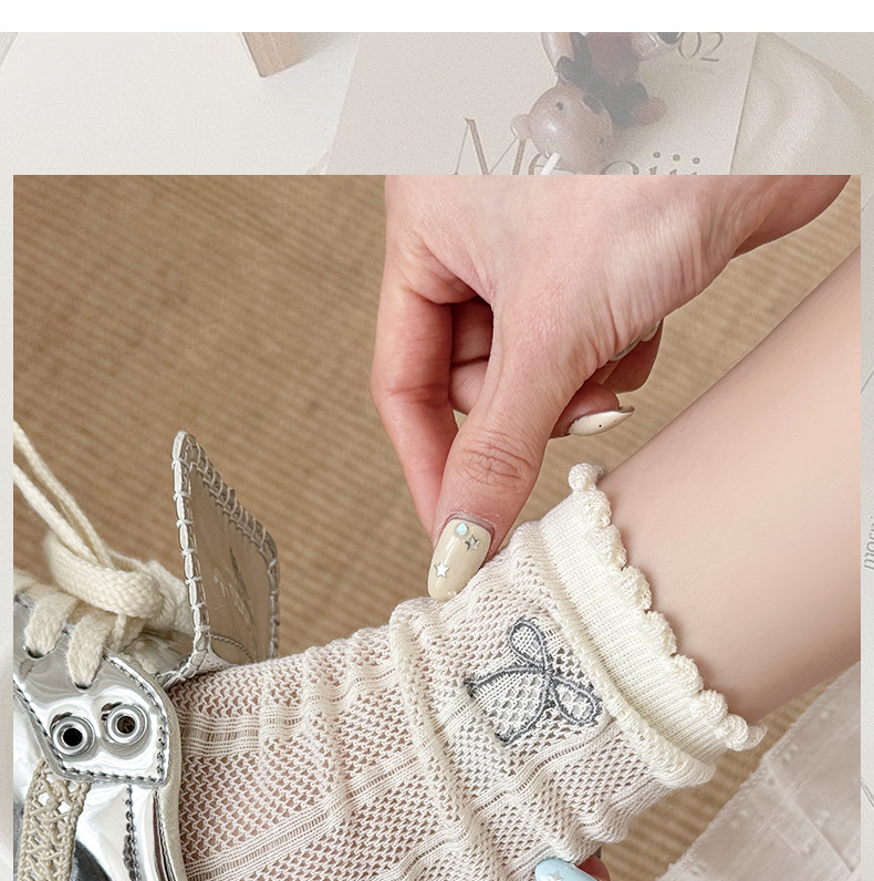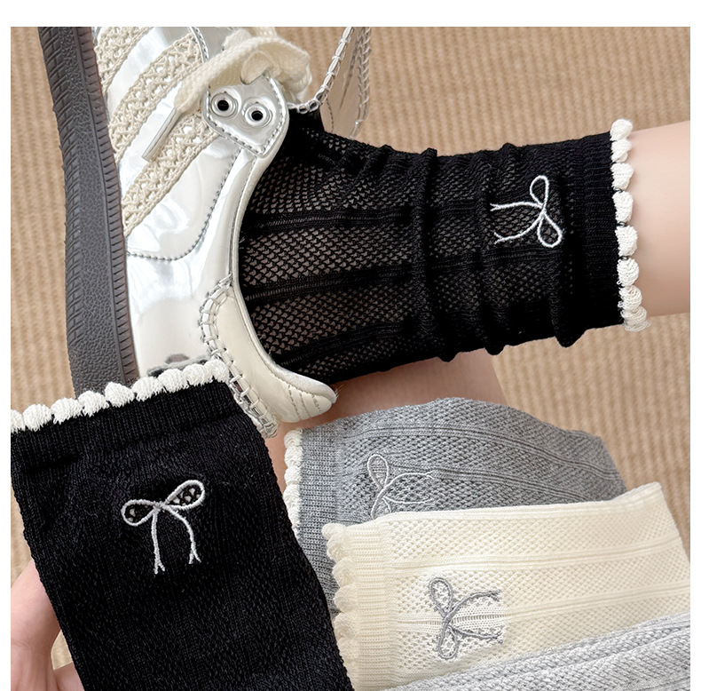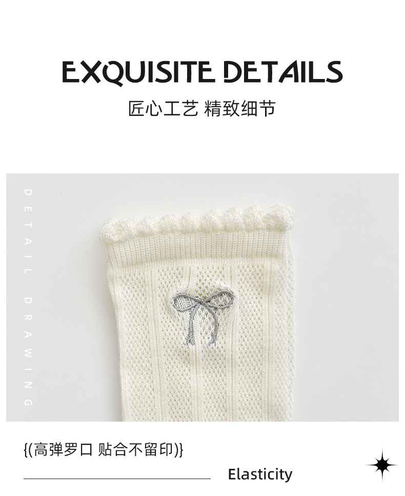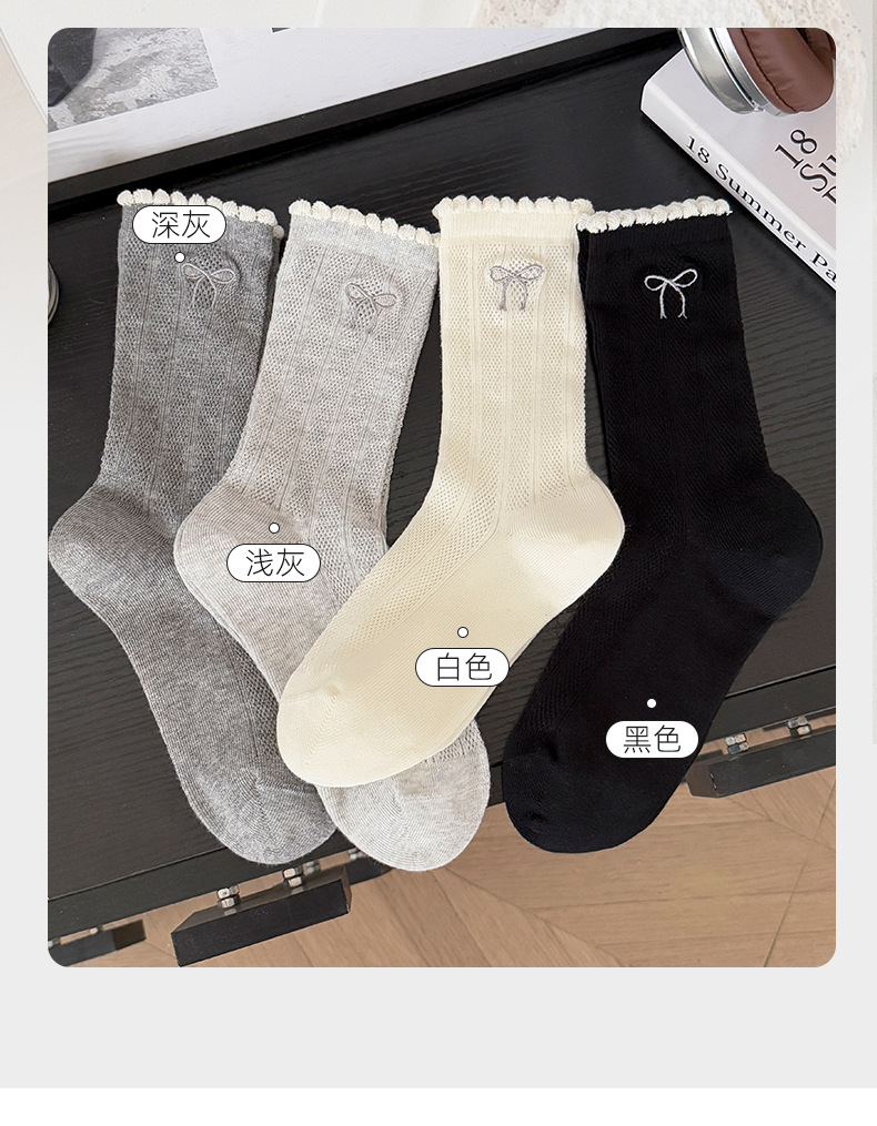袜子女夏季蝴蝶结学院风INS风女袜薄款透气袜子无骨抗起球中筒袜