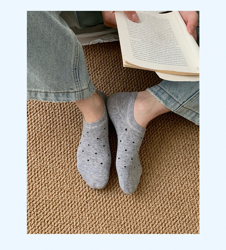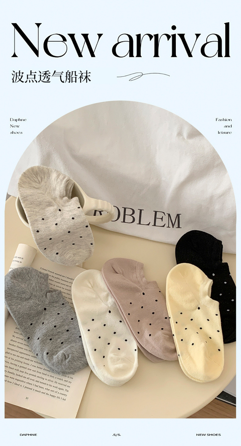波点袜子女短袜春夏季棉袜薄款纯色船袜圆点不掉跟黑白色隐形袜女