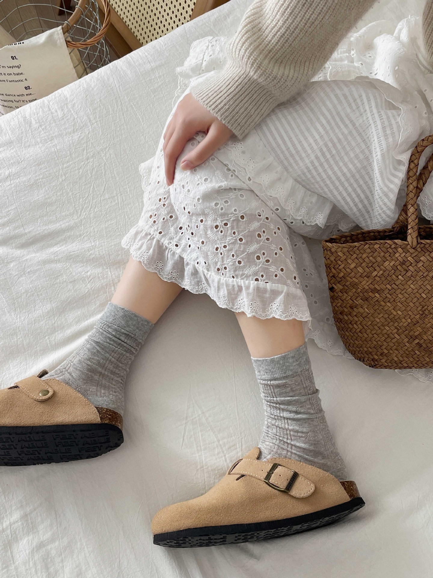 基础百塔纯色天花板堆堆袜子女中筒日系jk夏季薄款透气搭配勃肯鞋