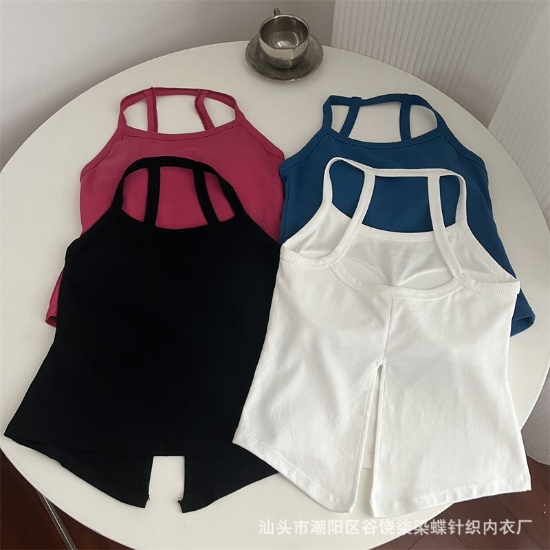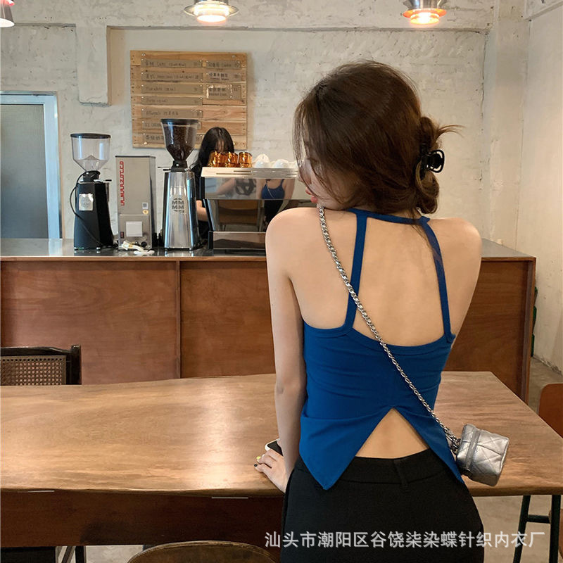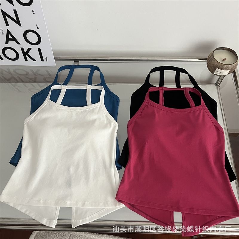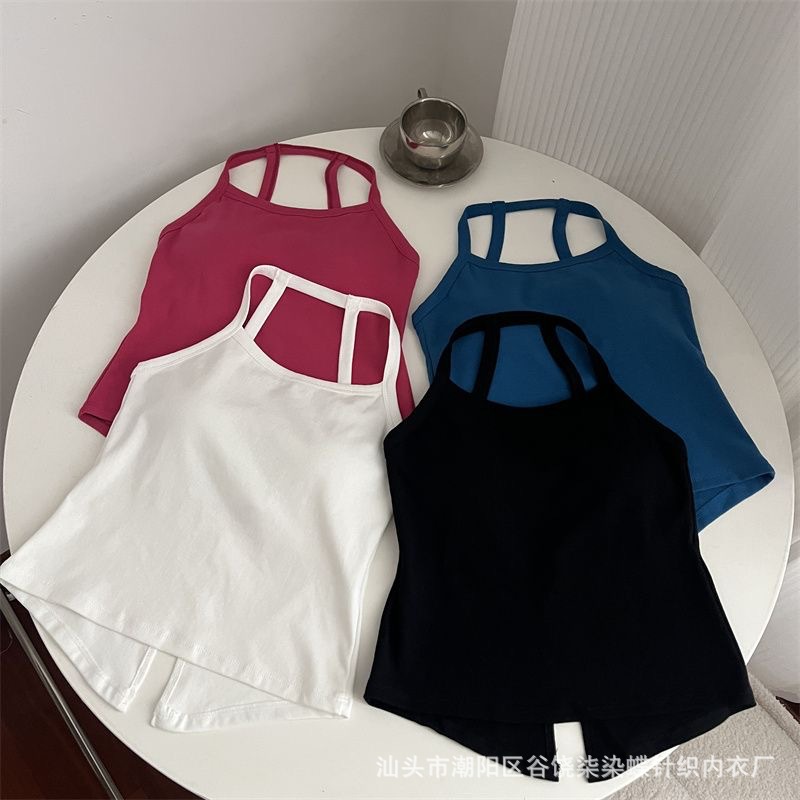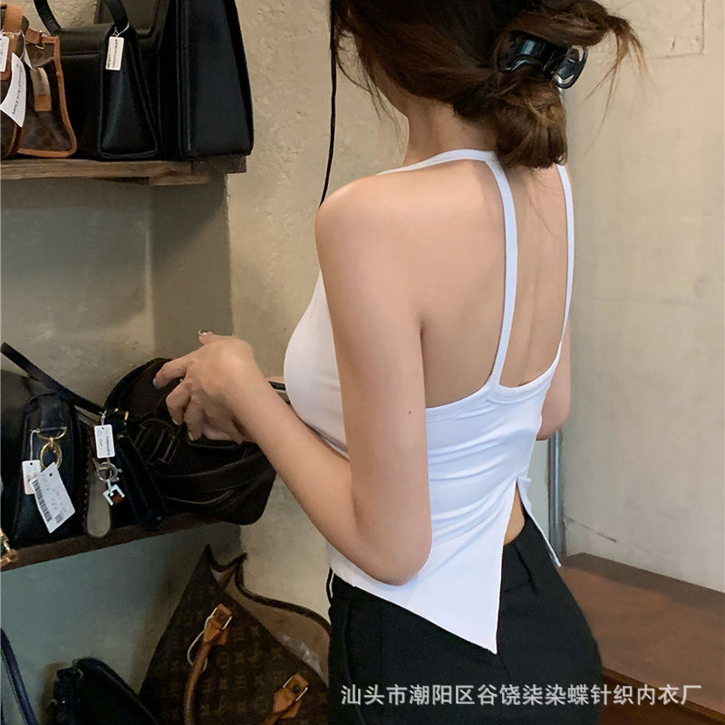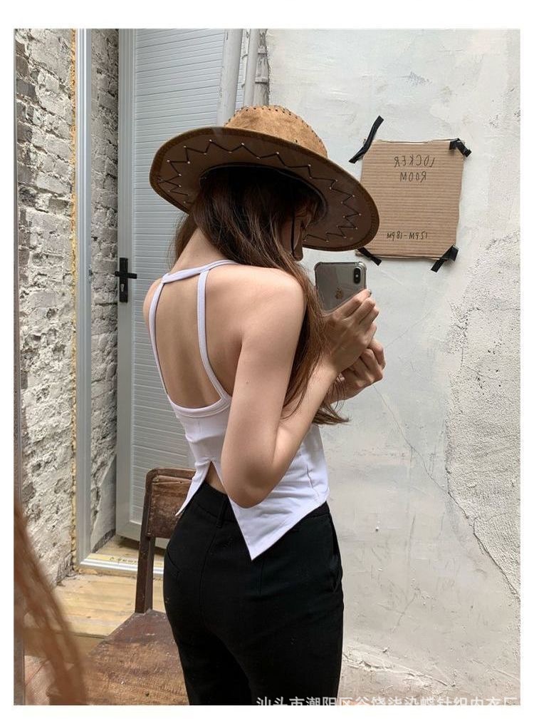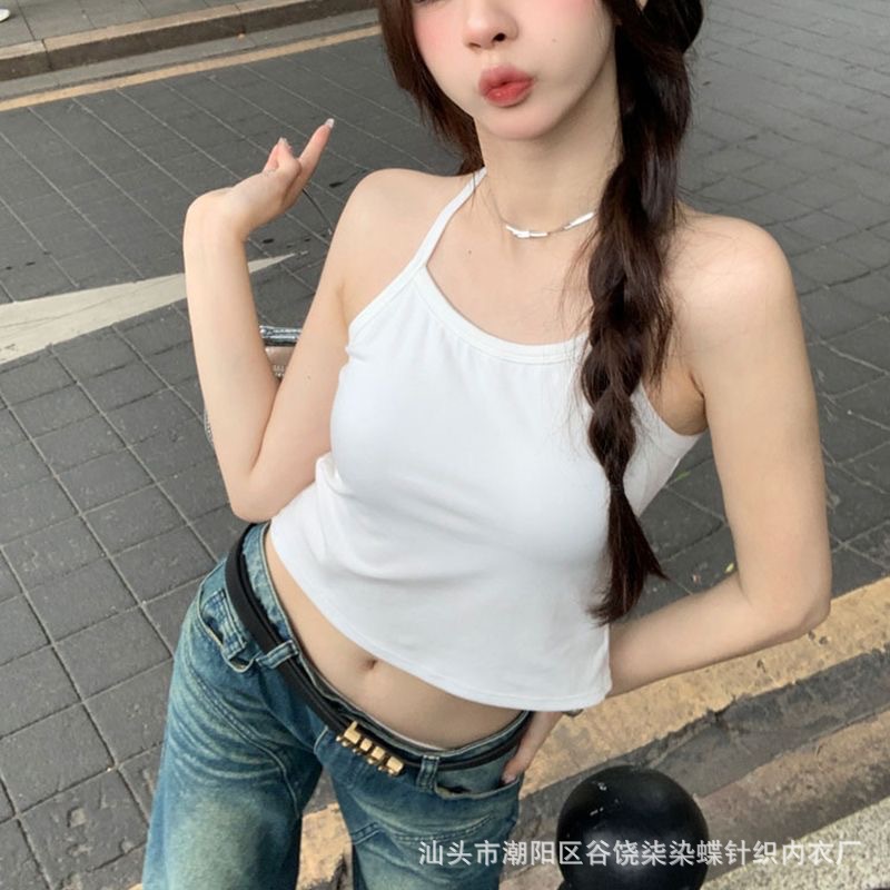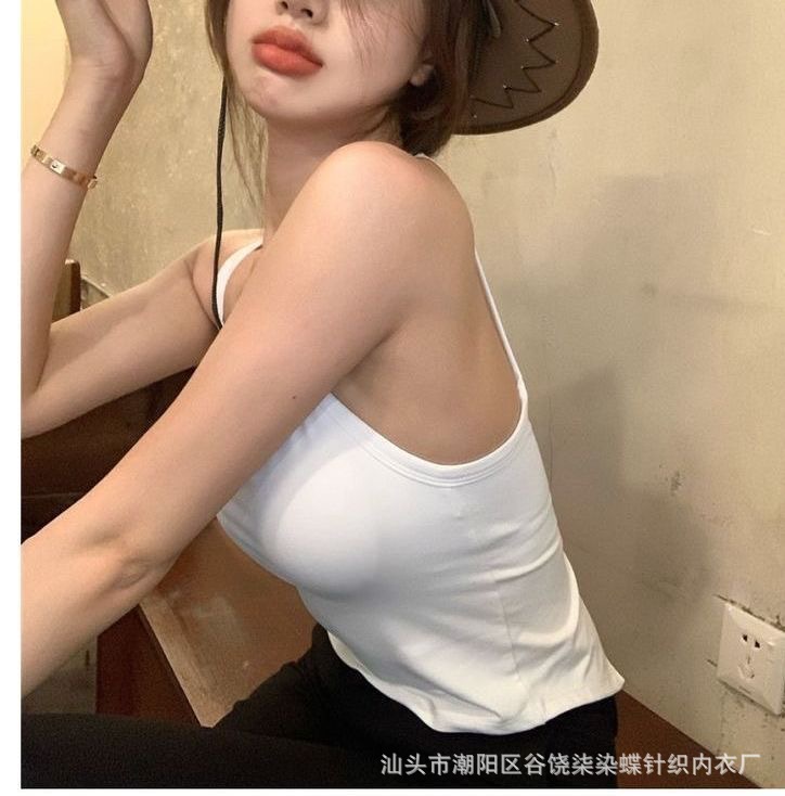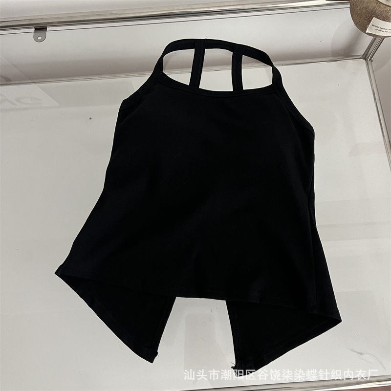 纯欲辣妹挂脖式美背吊带背心女带胸垫小众外穿不规则上衣内搭抹胸