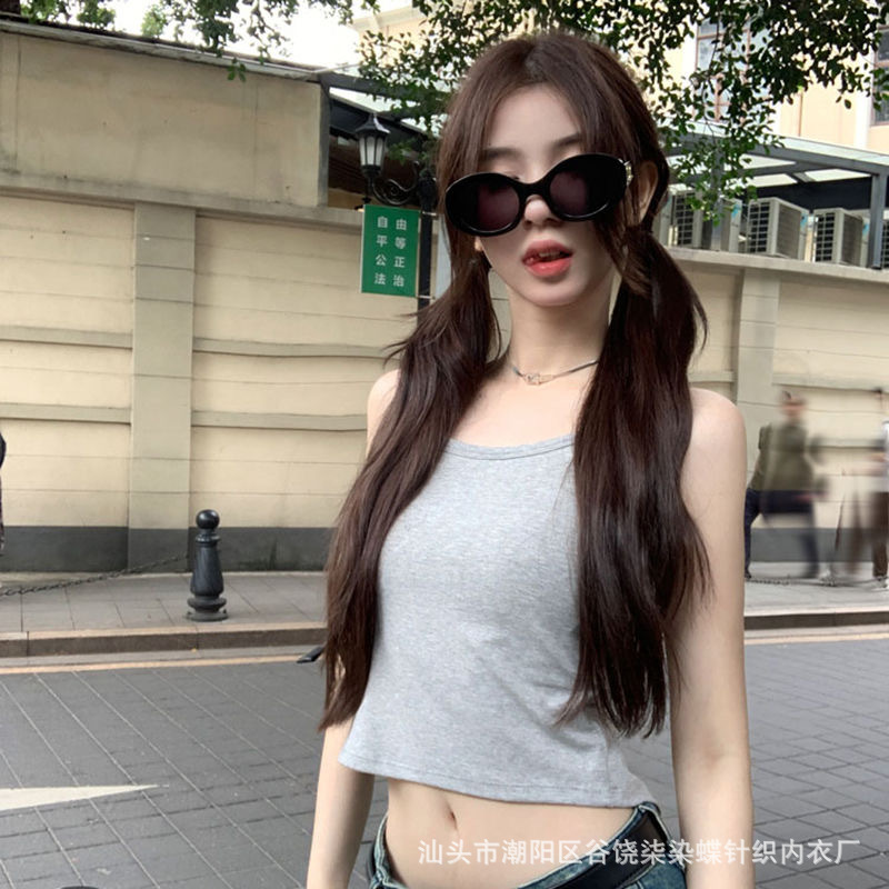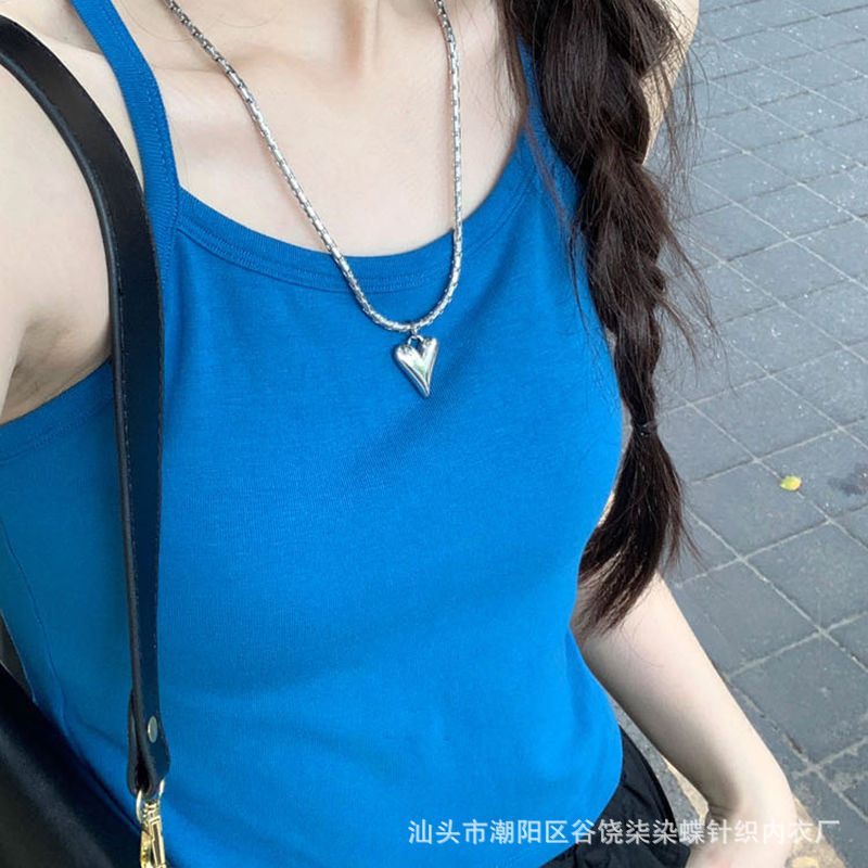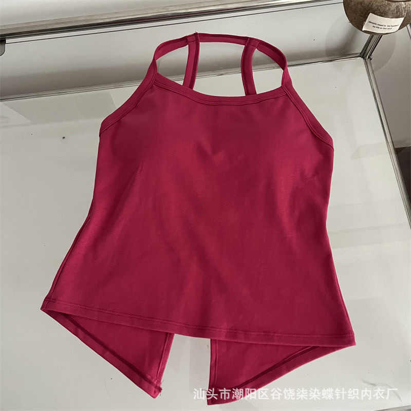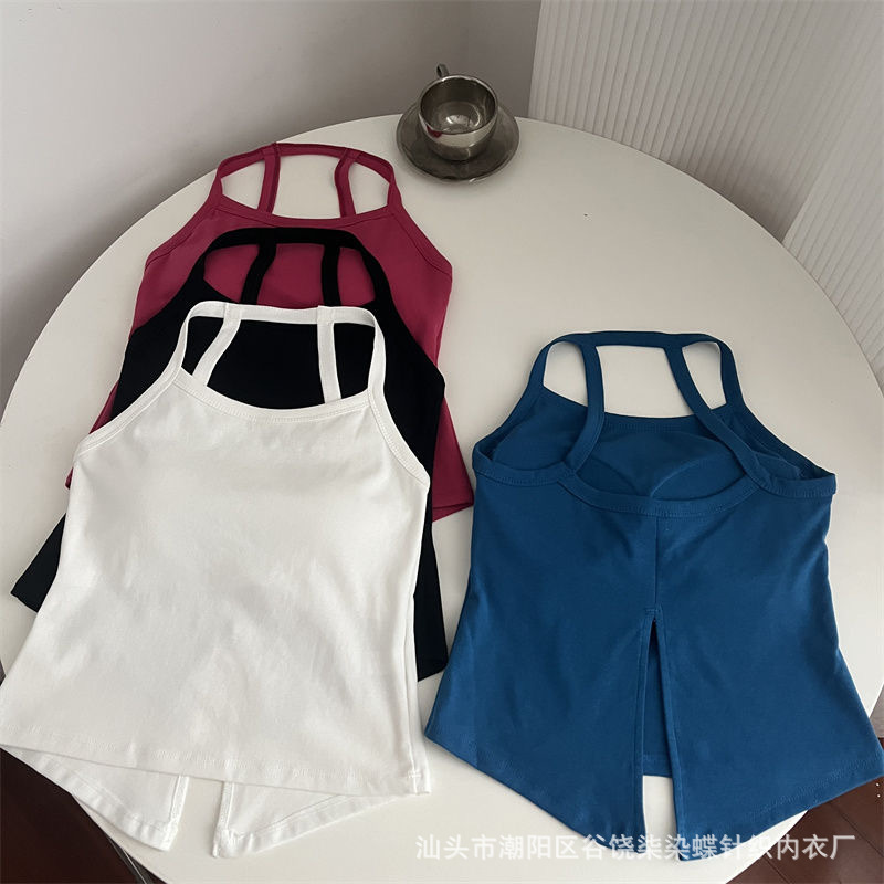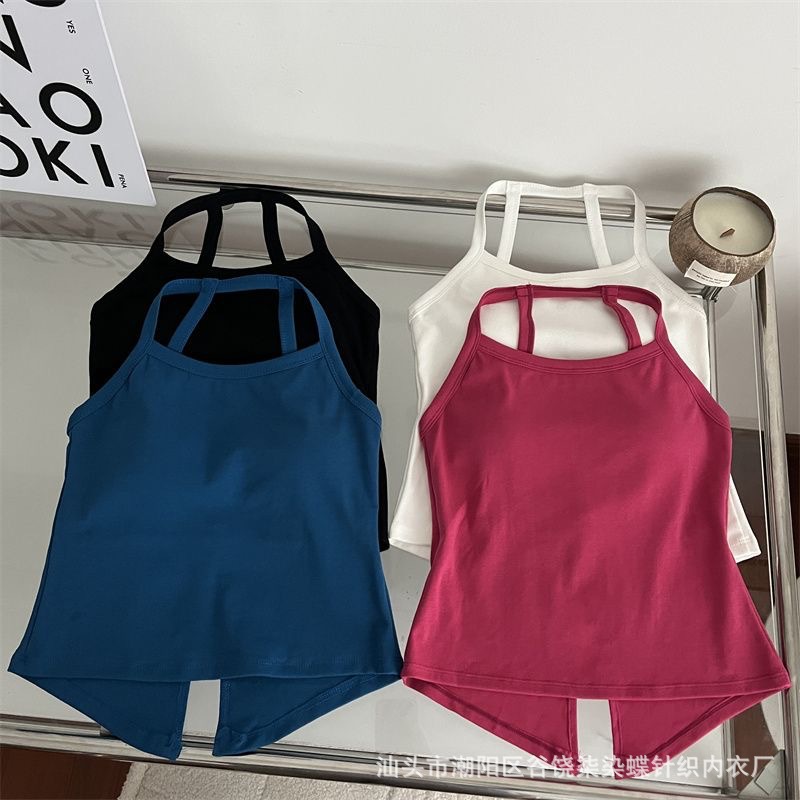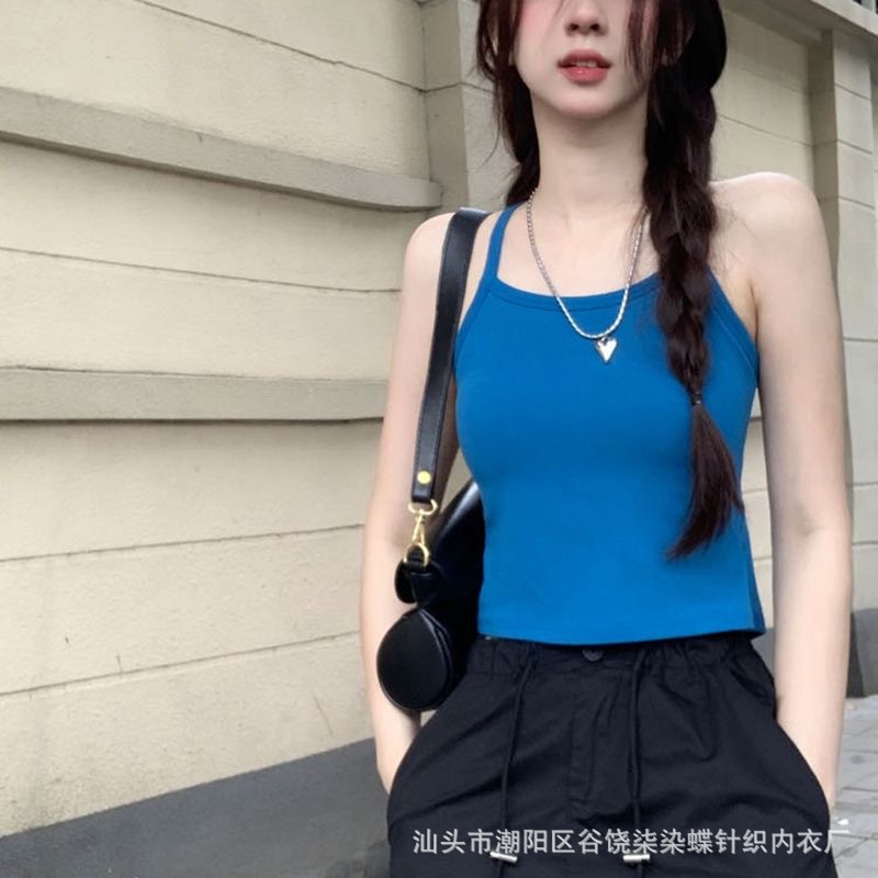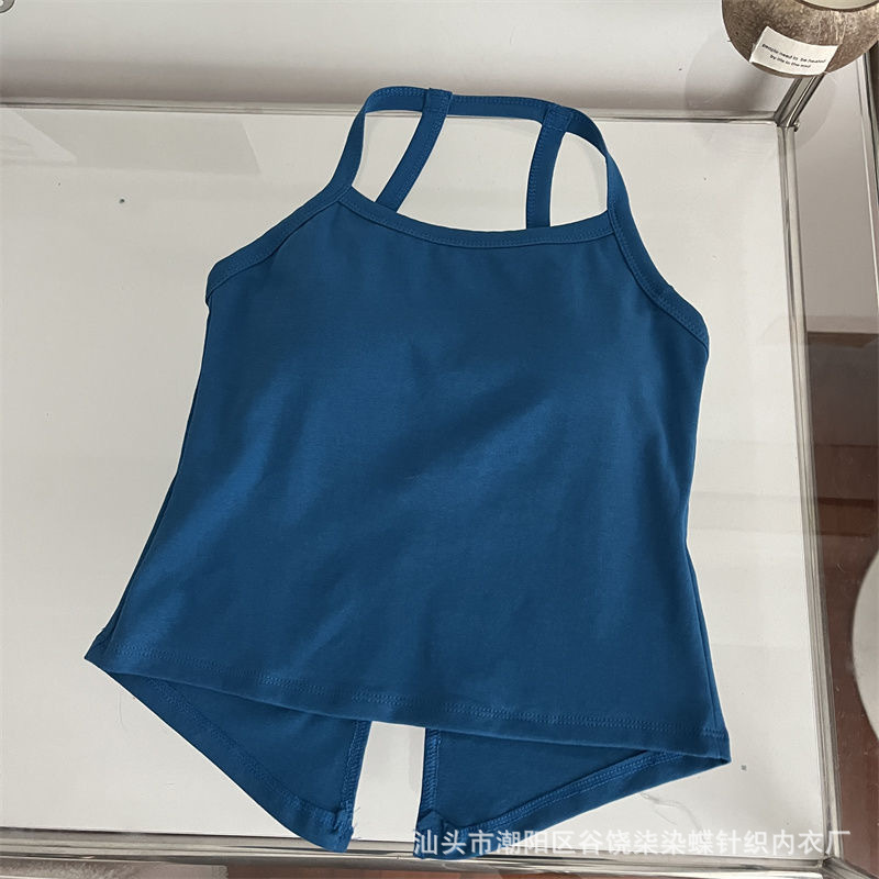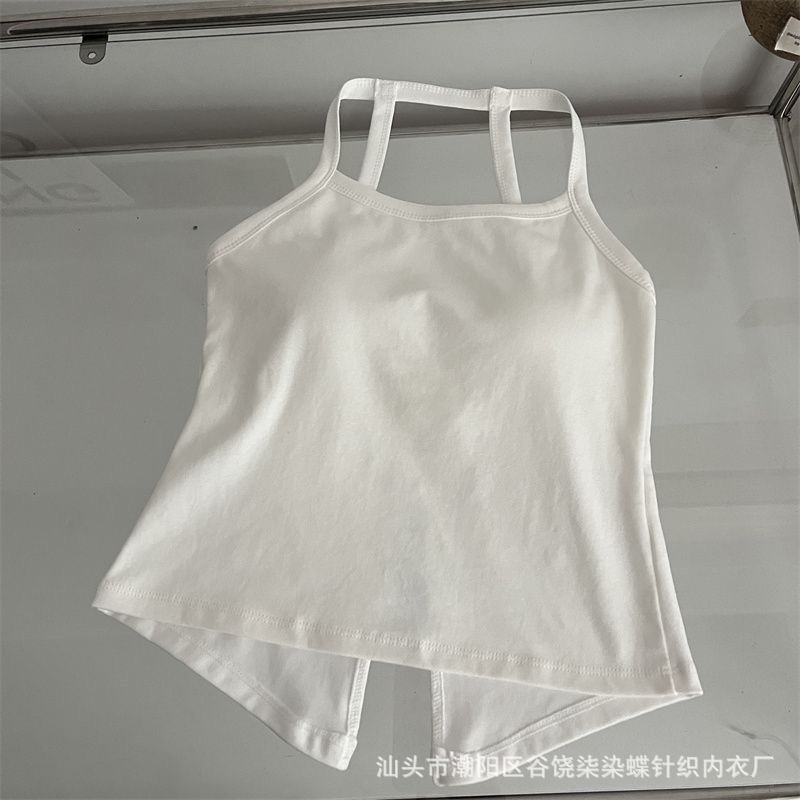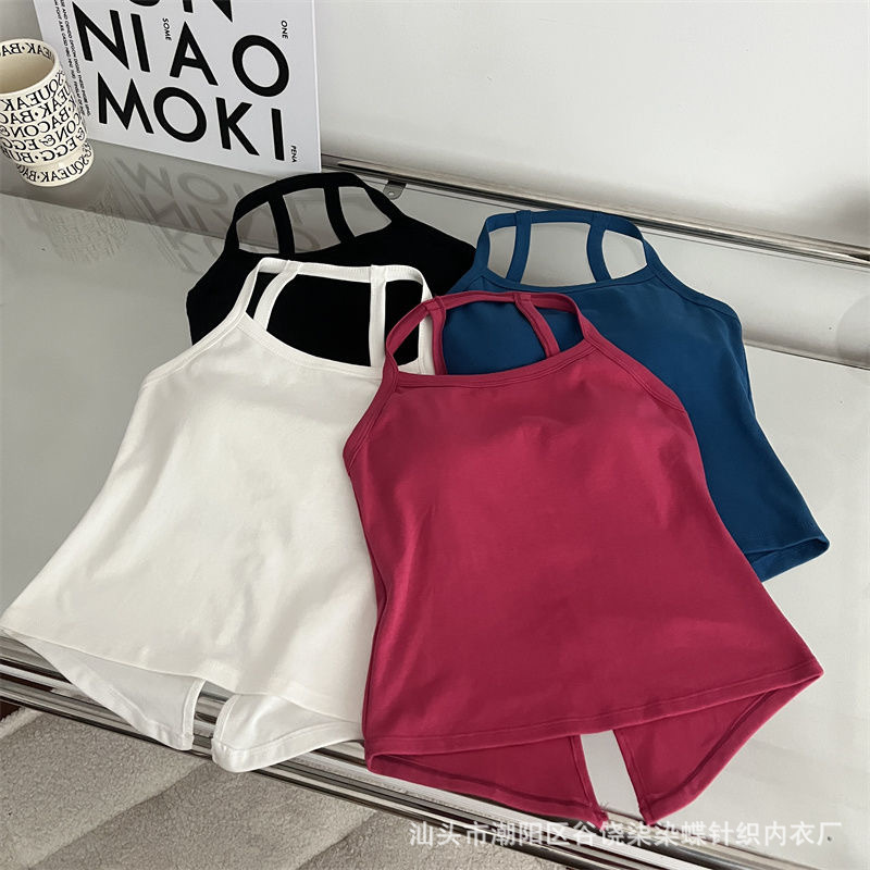 纯欲辣妹挂脖式美背吊带背心女带胸垫小众外穿不规则上衣内搭抹胸