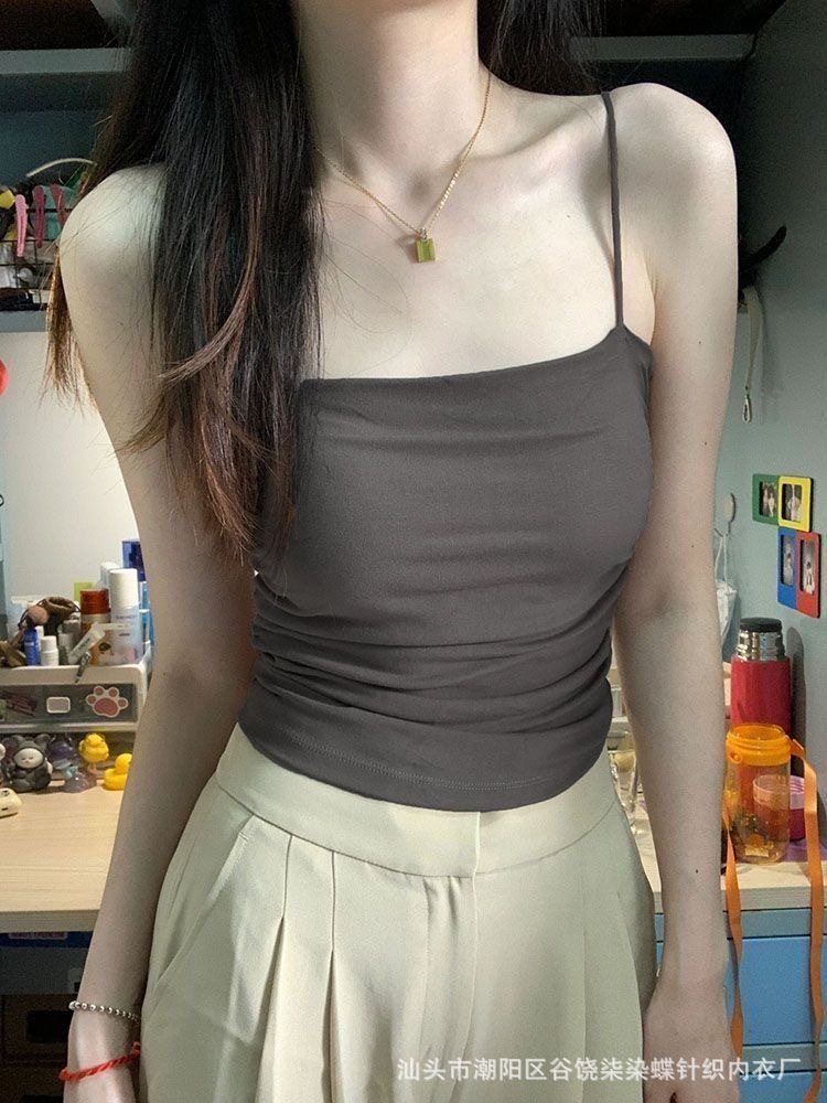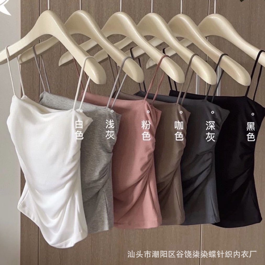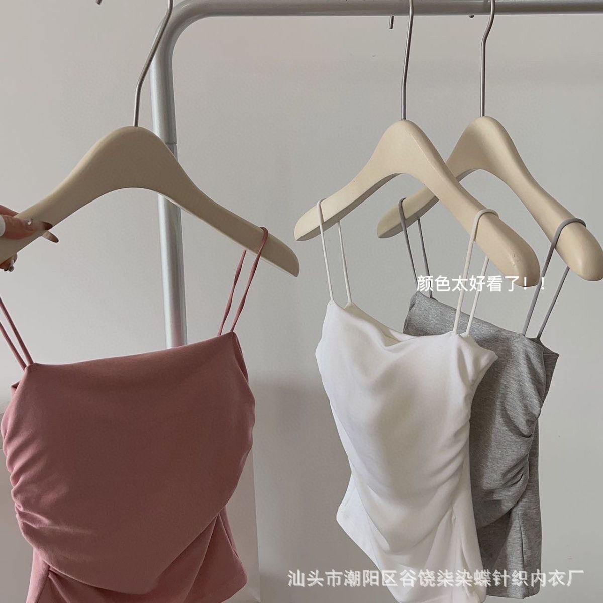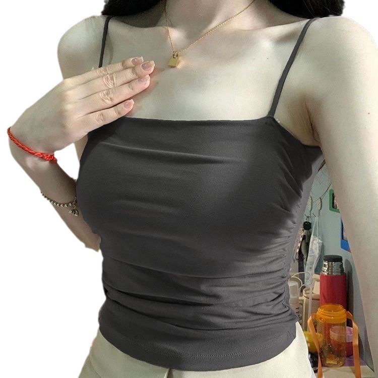 百搭Bra细肩吊带背心 带胸垫纯欲吊带一体抹胸修身褶皱打底上衣女
