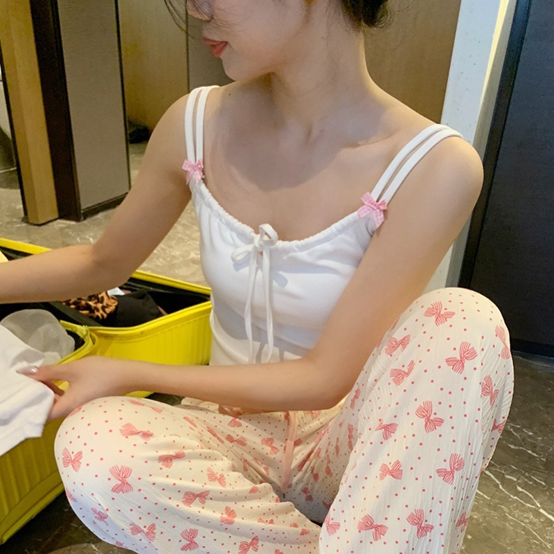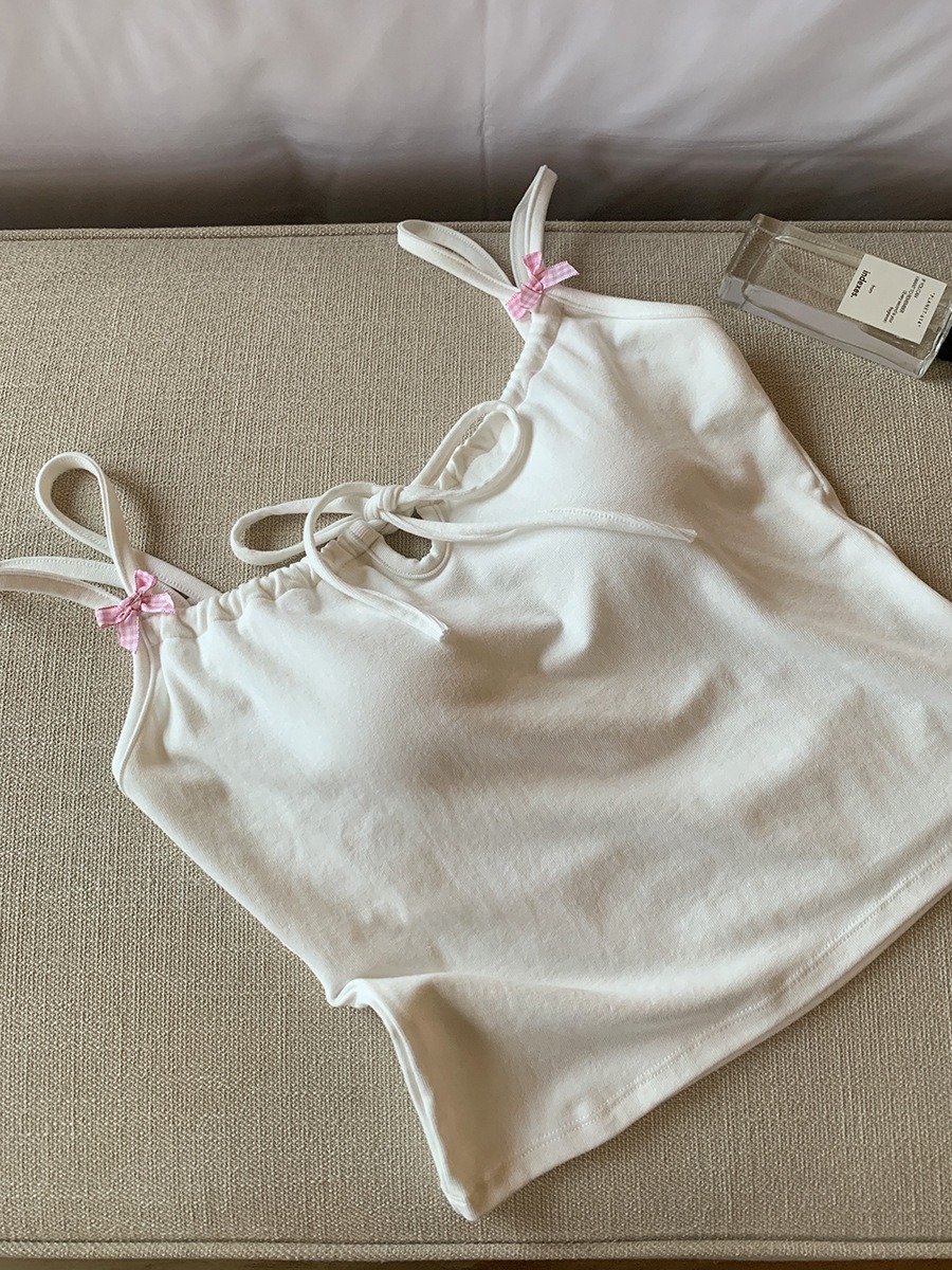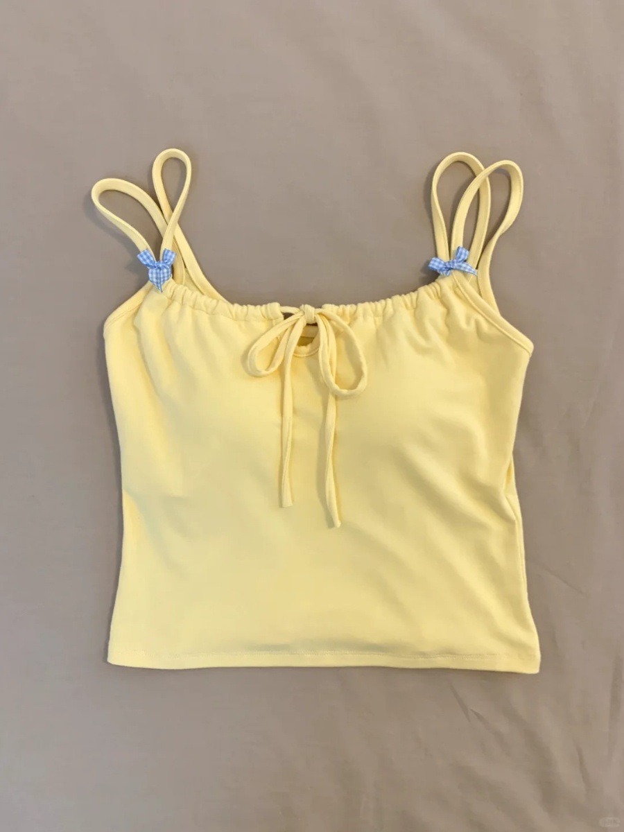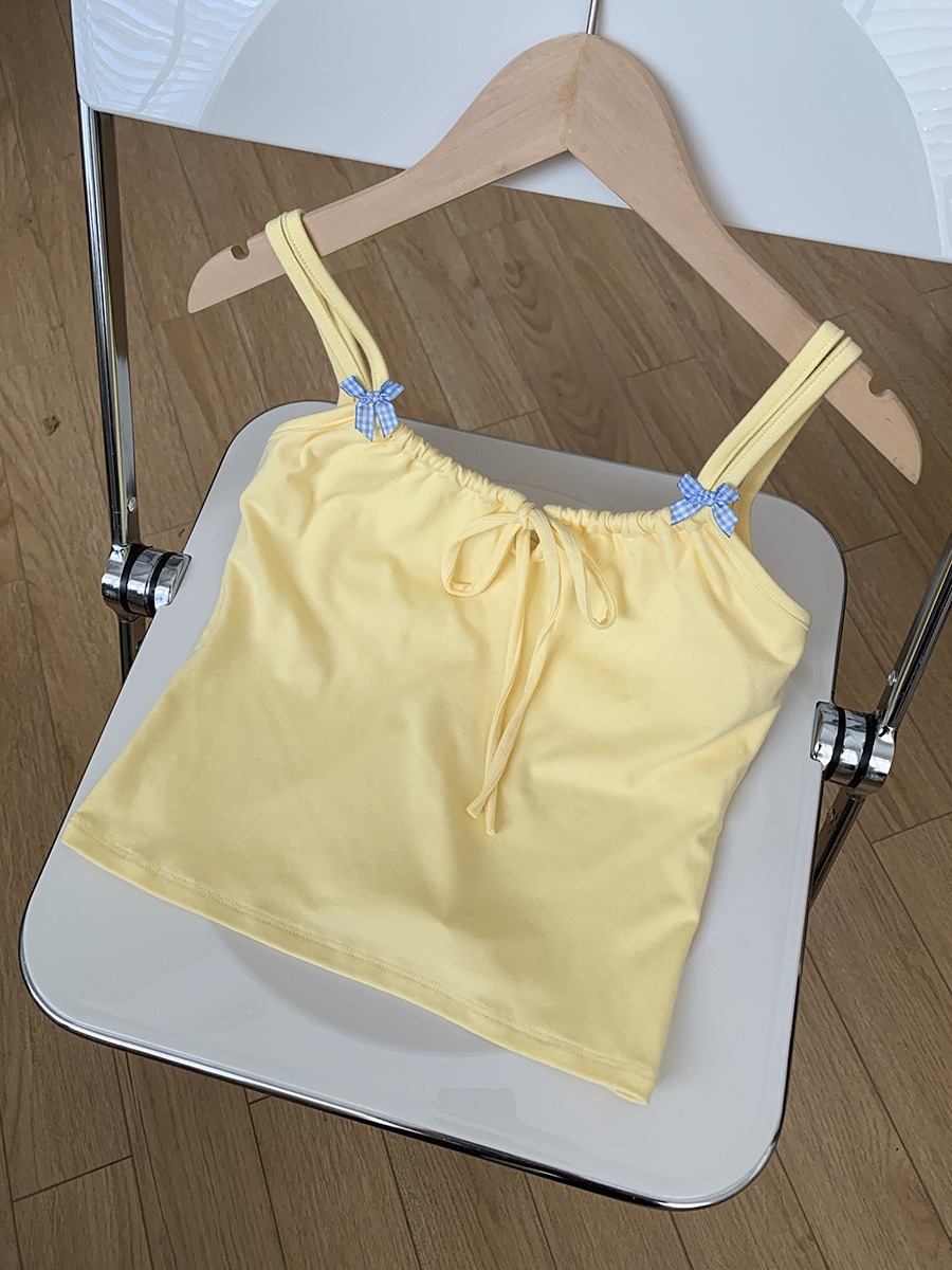 6809带胸垫辣妹双肩带纯欲bm风黄色背心女吊带内搭蝴蝶结无袖美背