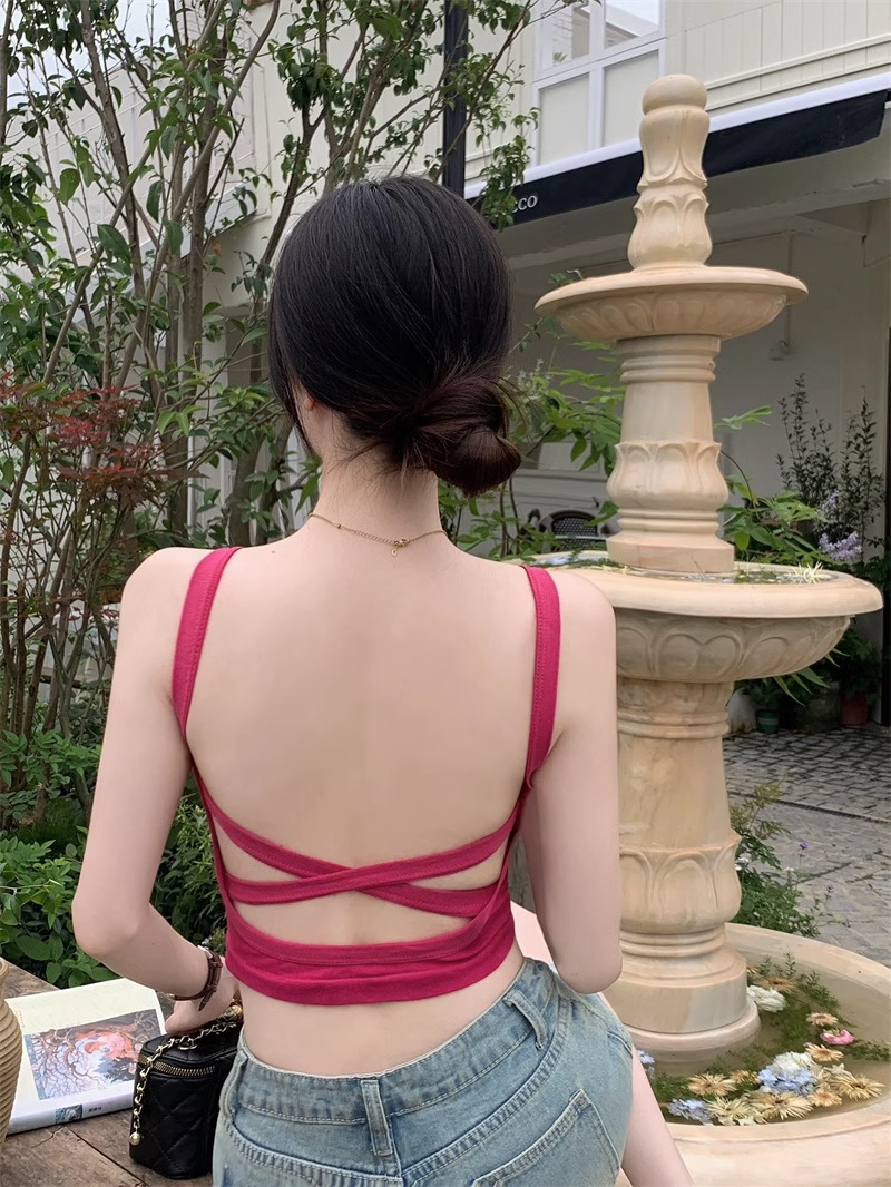 爆款纯欲辣妹交叉吊带美背固定杯带胸垫背心女内搭裹胸抹胸内衣