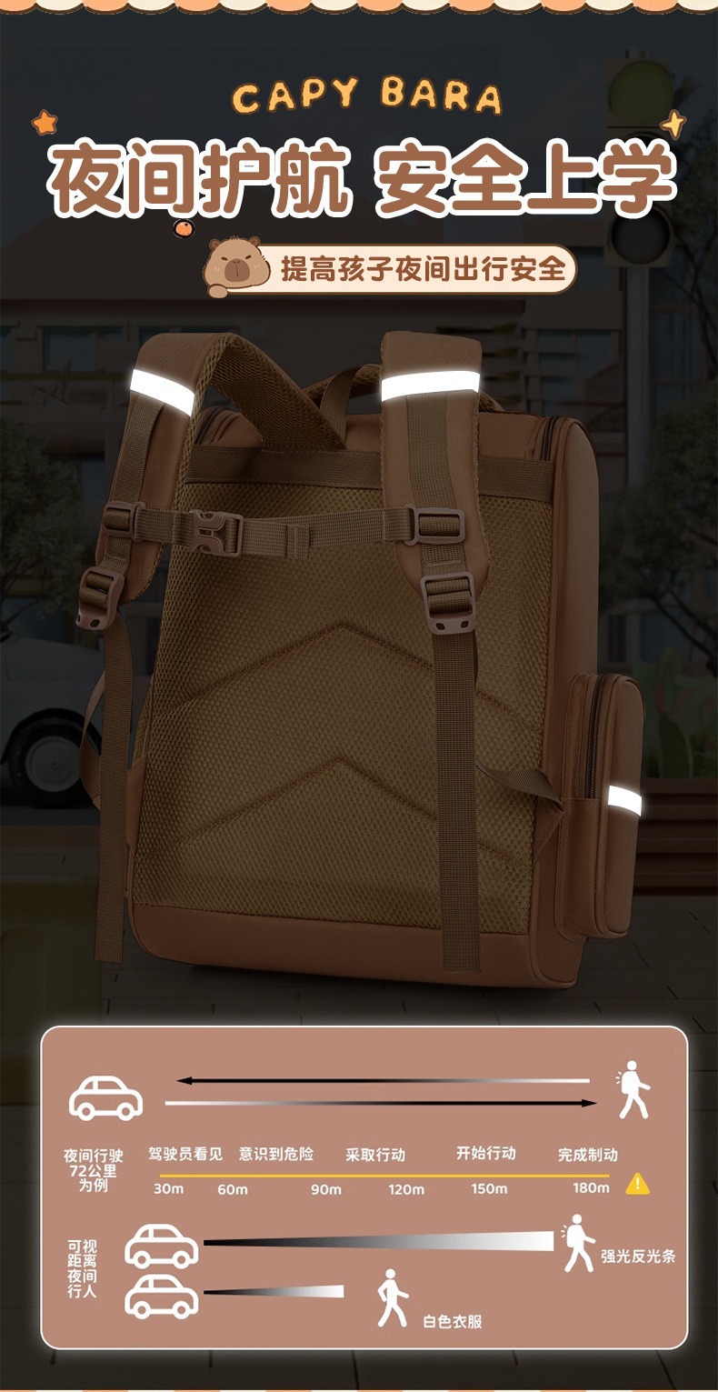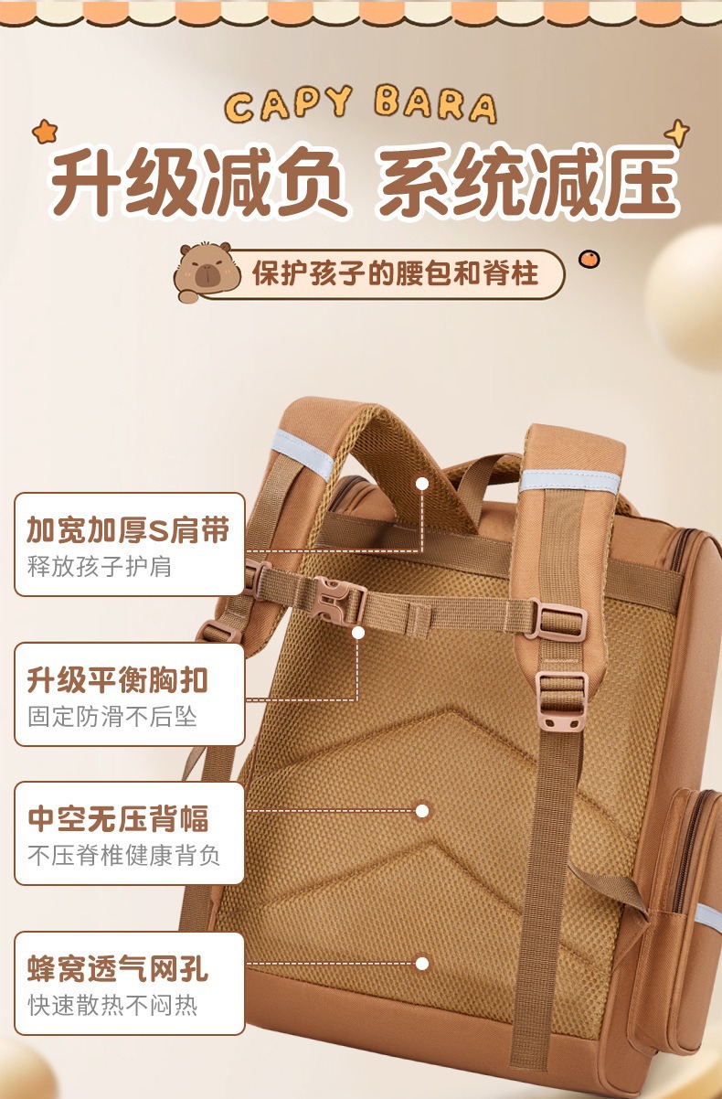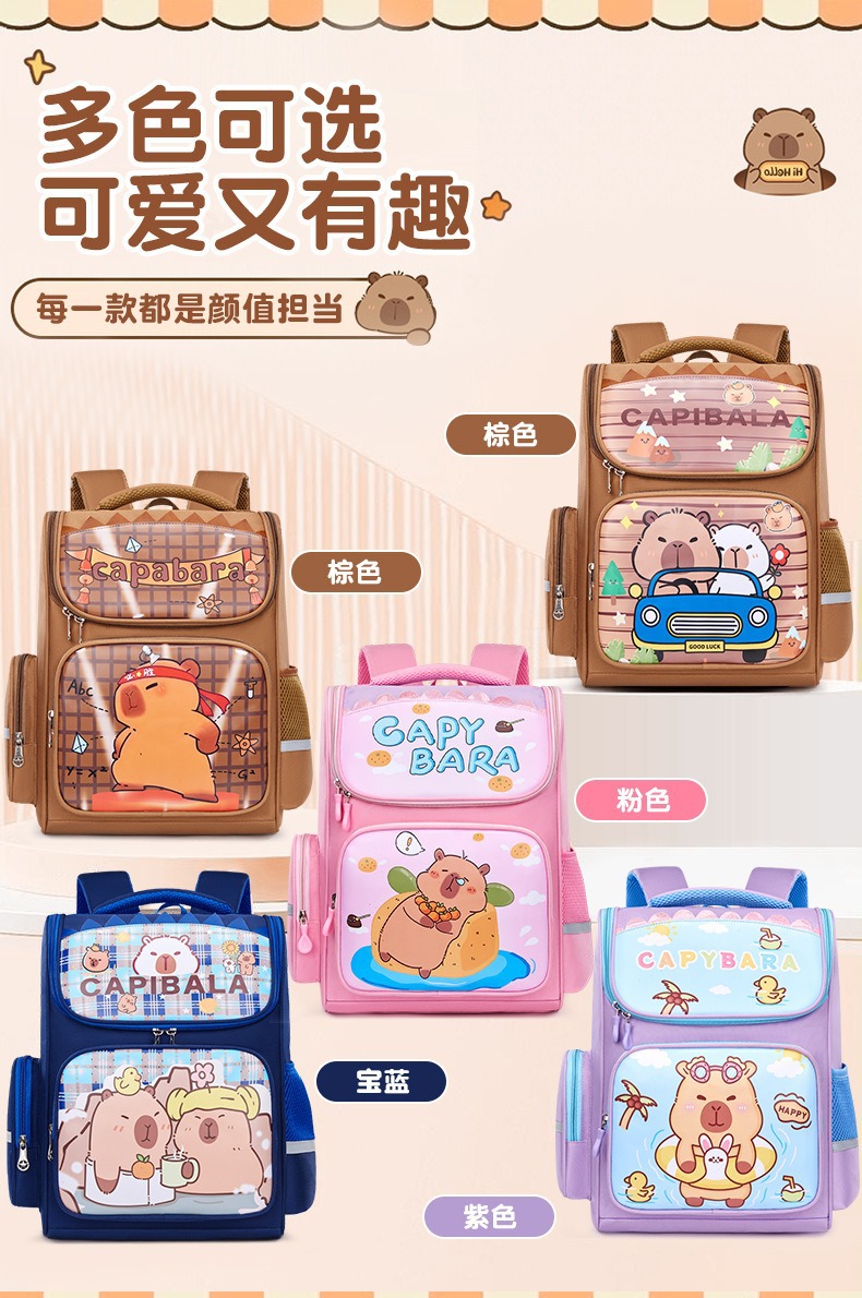 跨境新款卡皮巴拉小学生书包1-3 -6年级男女儿童可爱大容量双肩包