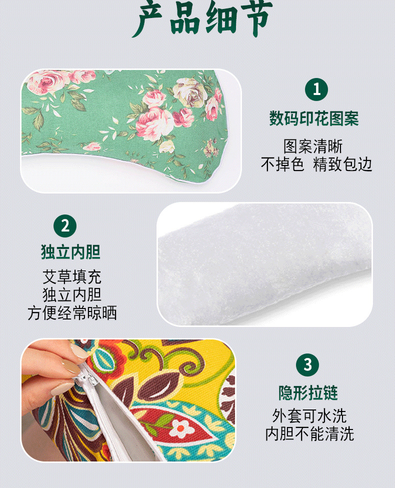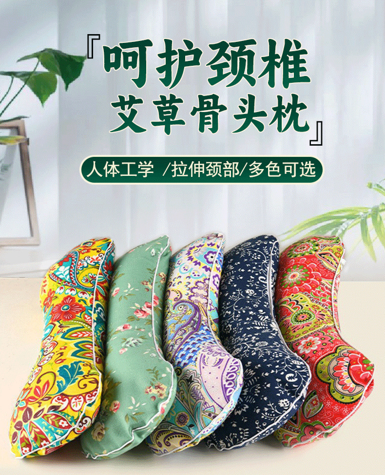 艾草颈椎枕定制家用艾草枕头宫廷护颈枕艾绒枕厂家批发艾草骨头枕