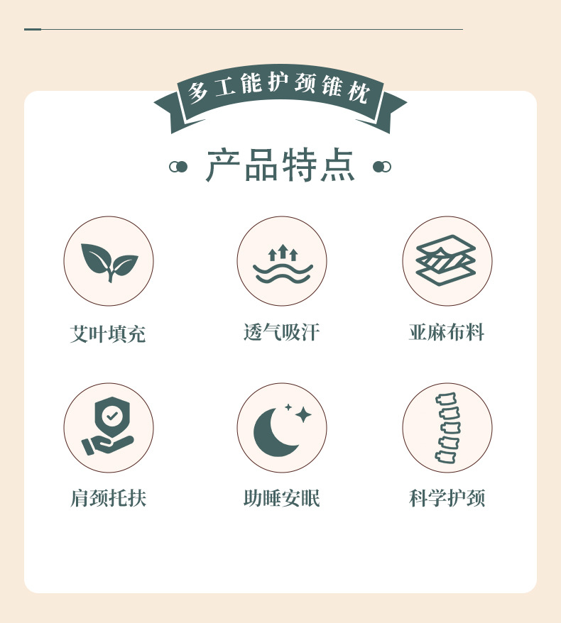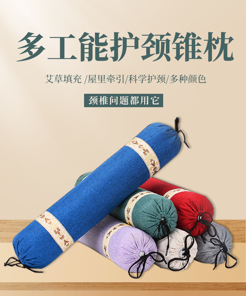 艾草颈椎枕厂家批发粗布按摩护颈枕艾草枕家用多种款式艾叶骨头枕