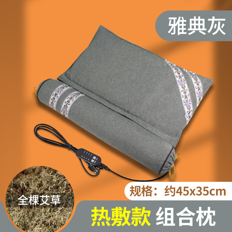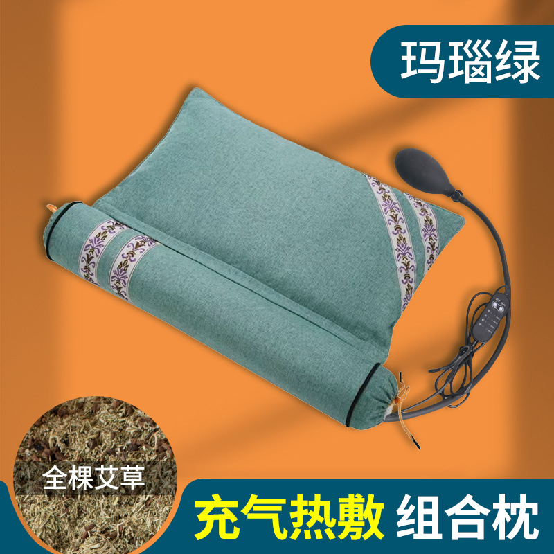艾草颈椎枕连体枕艾草枕头可拆卸圆柱艾枕家用护颈热敷枕厂家批发