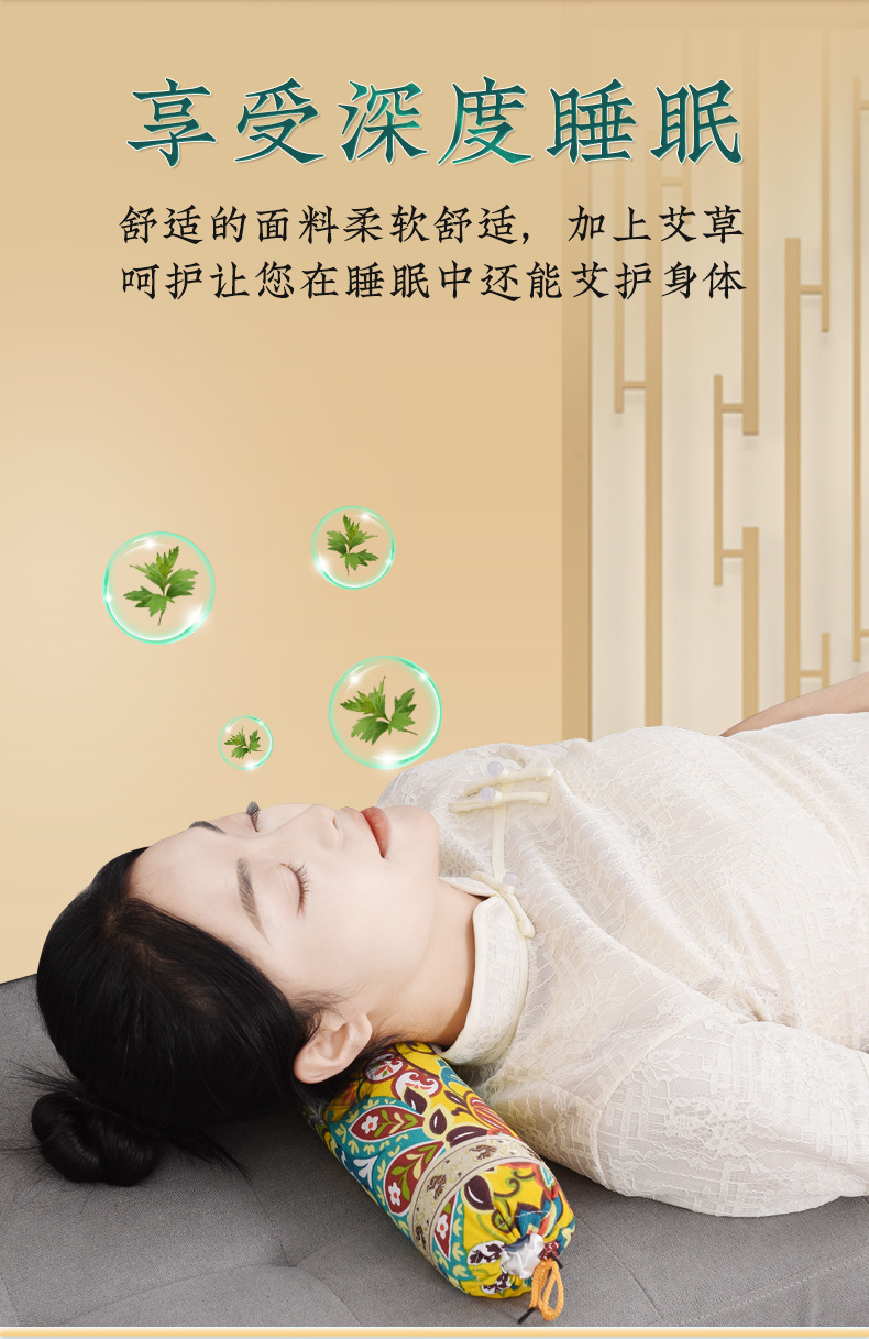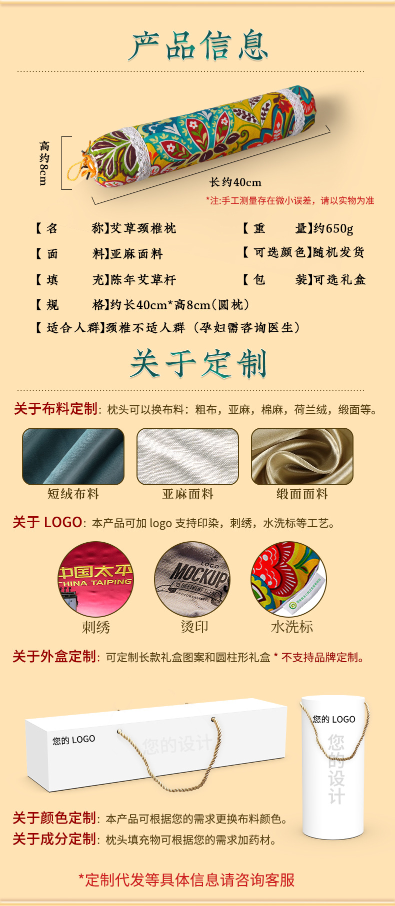 夏季家用老粗布艾草圆柱颈椎枕睡觉护颈糖果枕头纯艾草填充艾灸枕