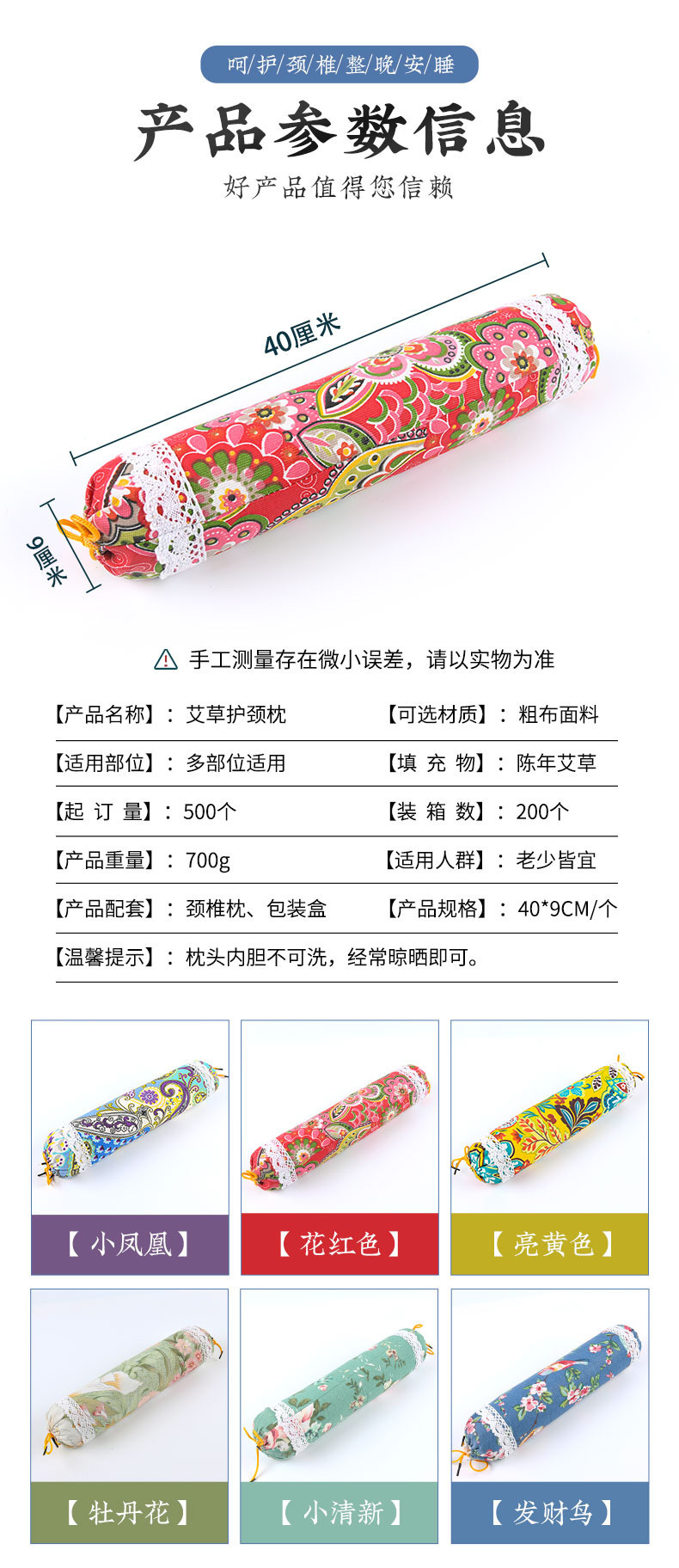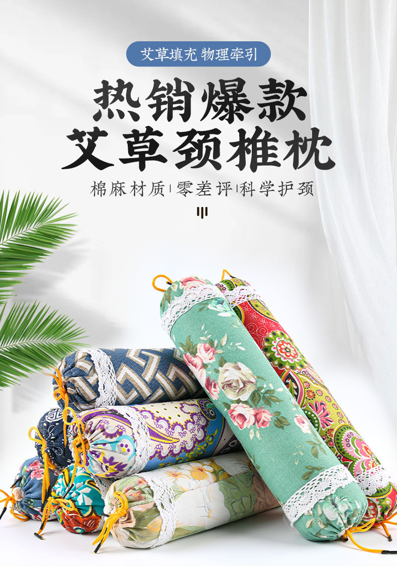 艾草枕颈椎枕批发单人家用大号老粗布护颈枕艾灸枕圆柱枕颈椎枕