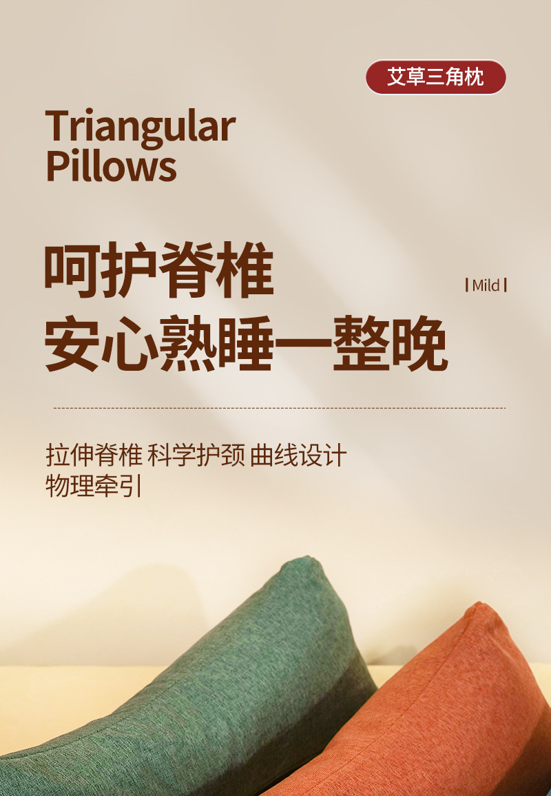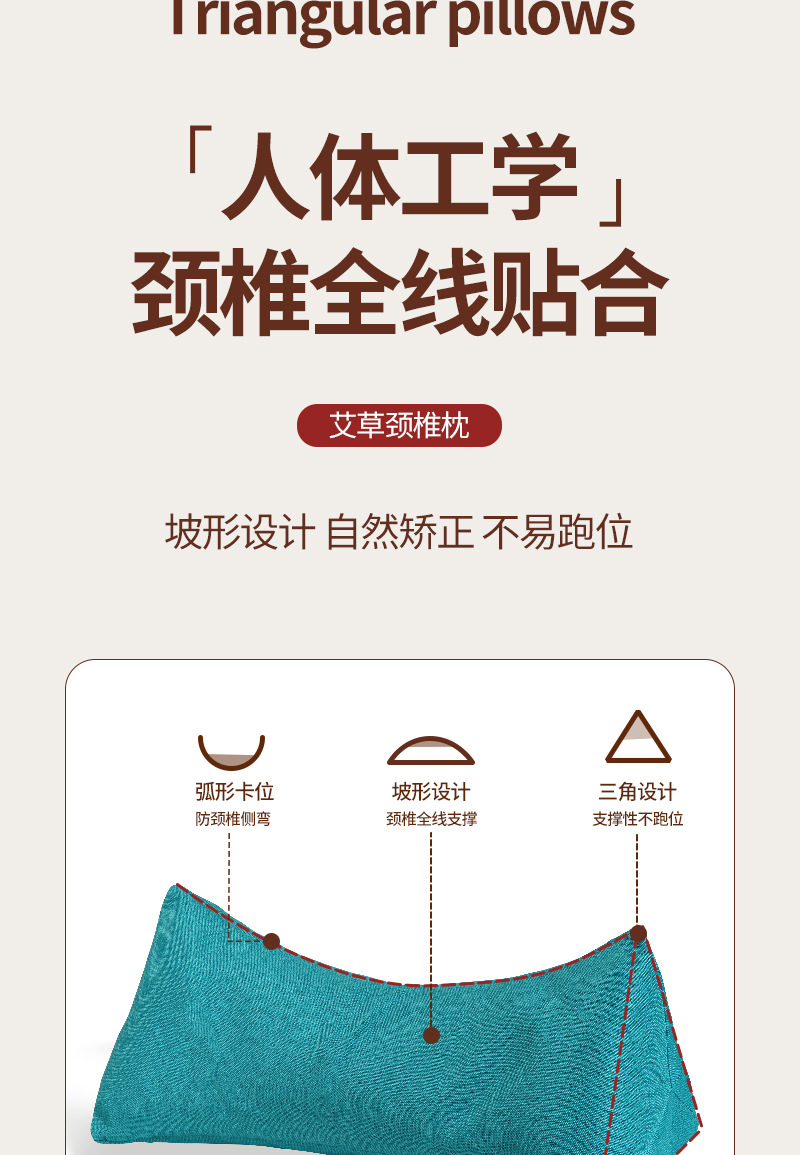 艾草颈椎枕家用单人纯棉护颈枕头艾草荞麦壳枕睡觉三角枕头