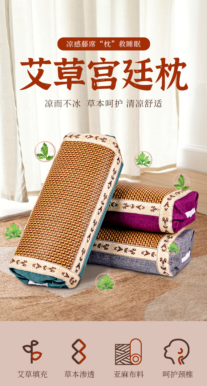 艾草凉席宫廷枕 厂家批发艾叶枕成人高低可调节艾绒枕头艾灸枕