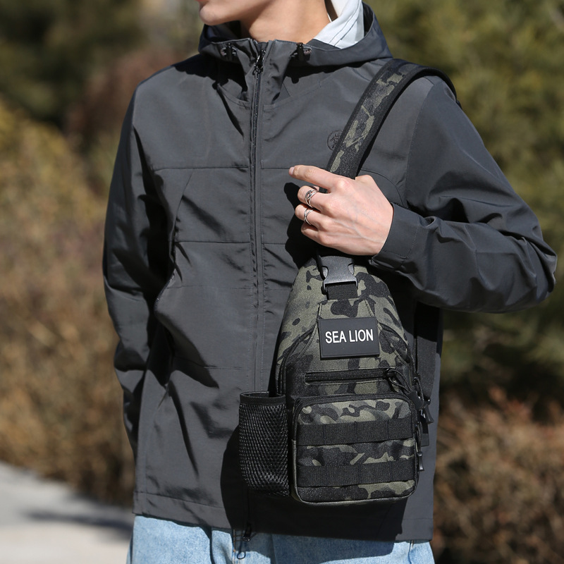 男士胸包斜挎包多功能迷彩战术背包户外斜挎帆布包休闲运动路亚包