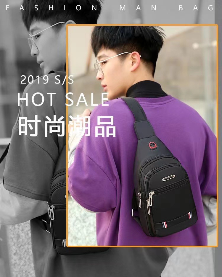 新款时尚百搭防水耐磨胸包男士牛津布小背包潮流胸前单肩斜挎包男