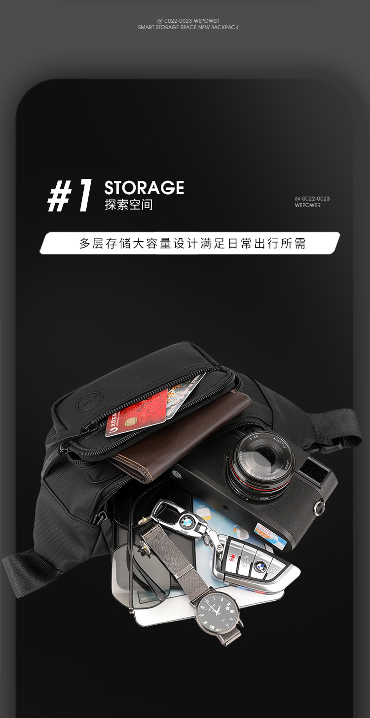 WEPOWER新款腰包男休闲运动户外胸前包百搭单肩斜挎包大容量胸包