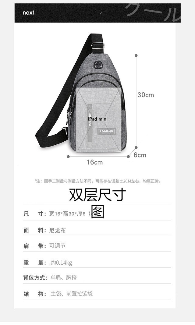 新款男士胸包牛津布多功能运动户外休闲单肩背包斜挎包男士包包