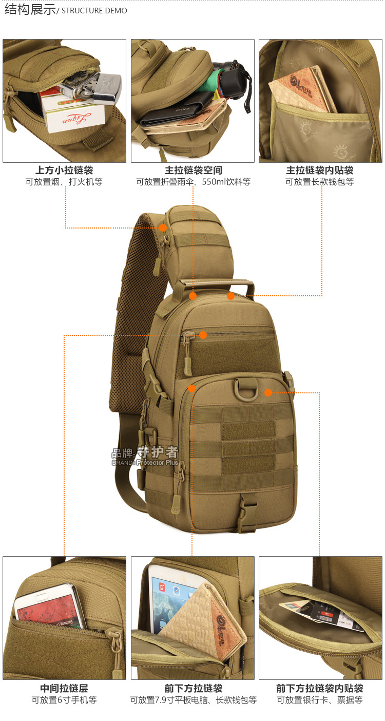 男士胸包骑行单肩包迷彩战术胸包户外登山便携斜挎包