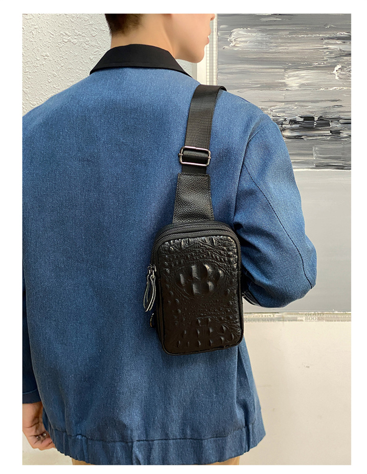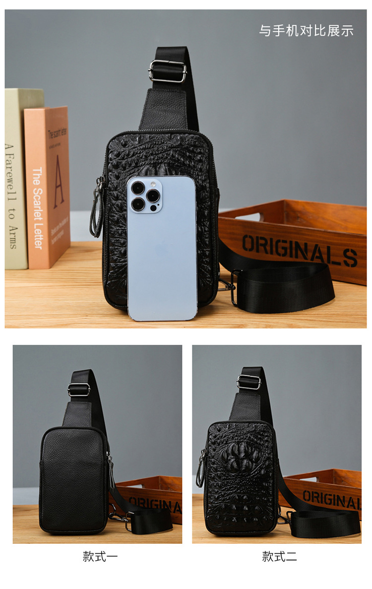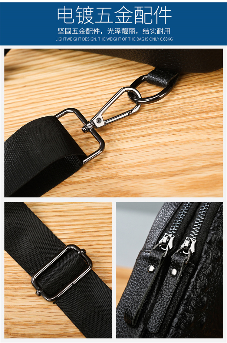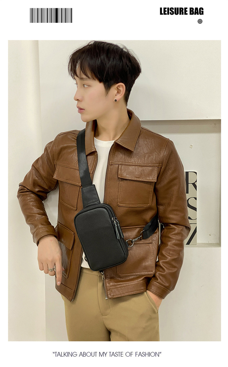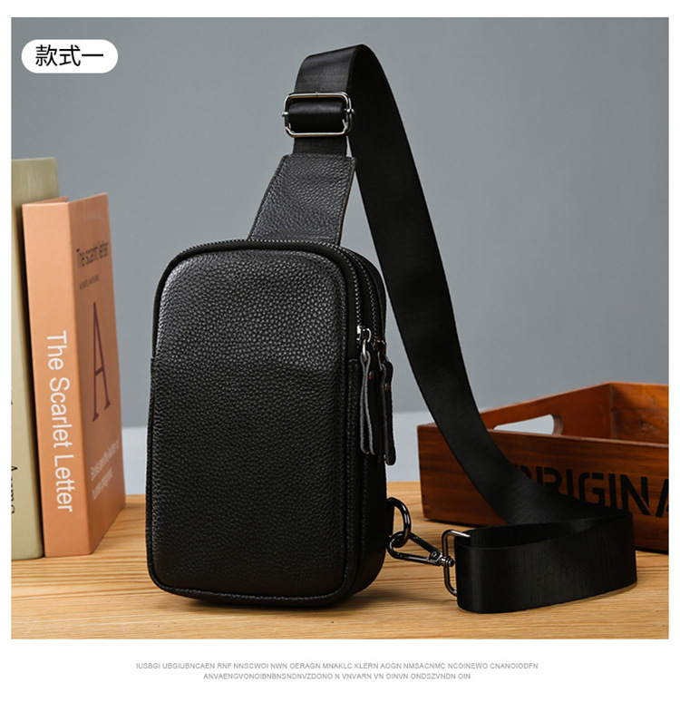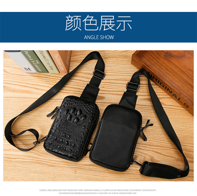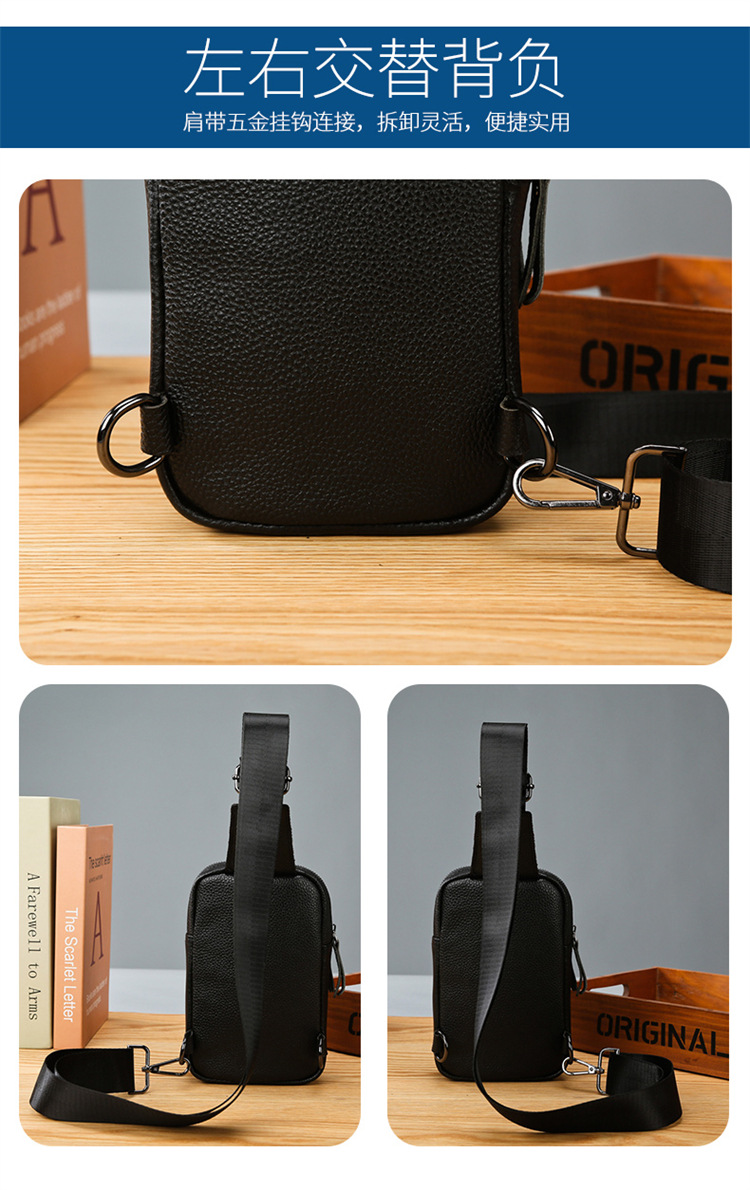 新款男士真皮胸包休闲大容量斜挎包户外潮流背包头层牛皮胸前挎包