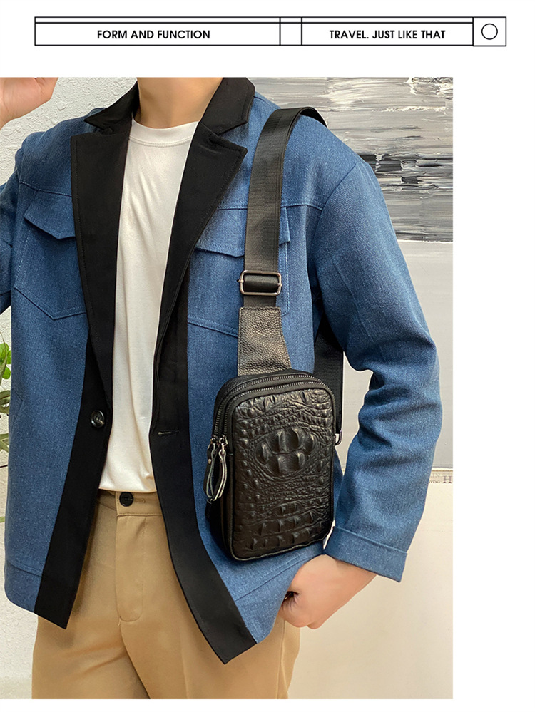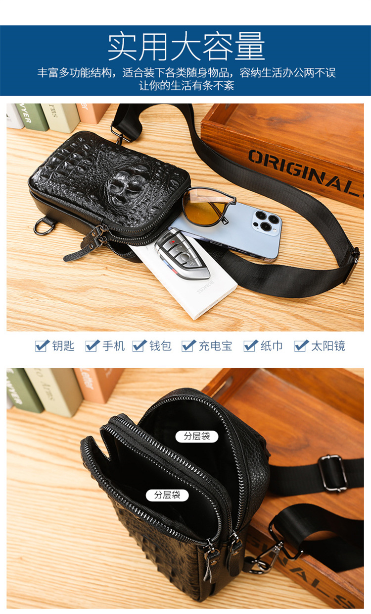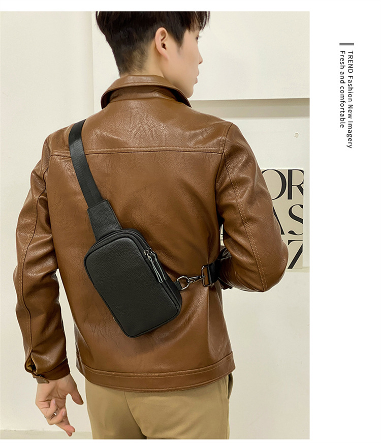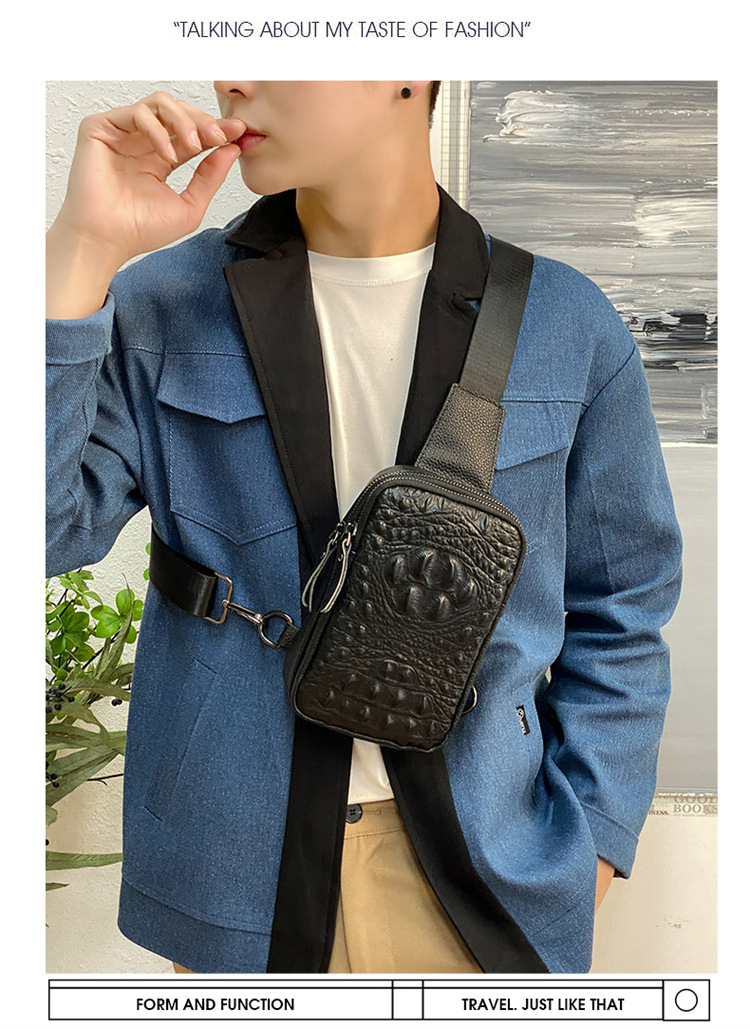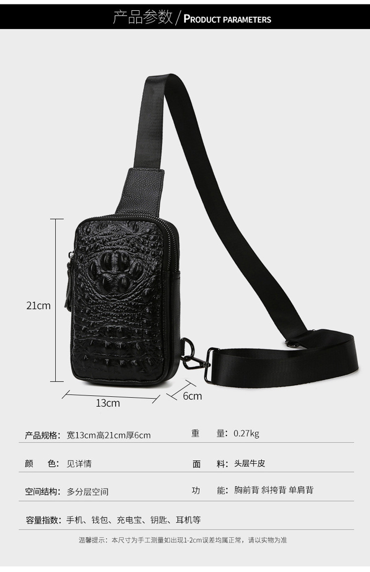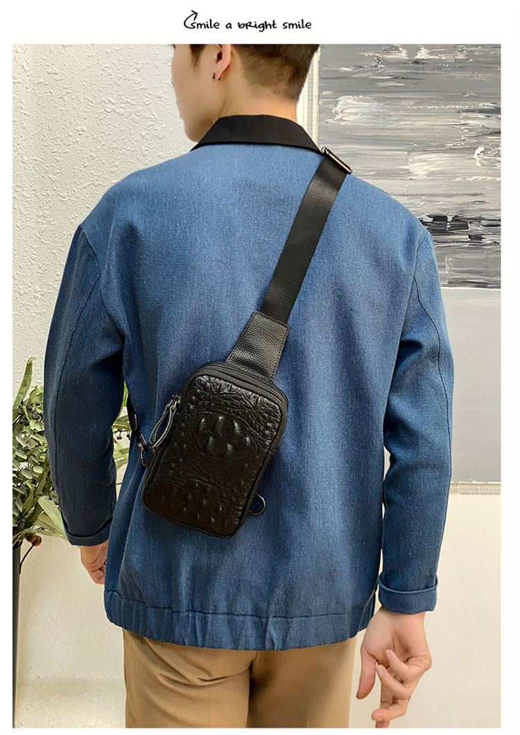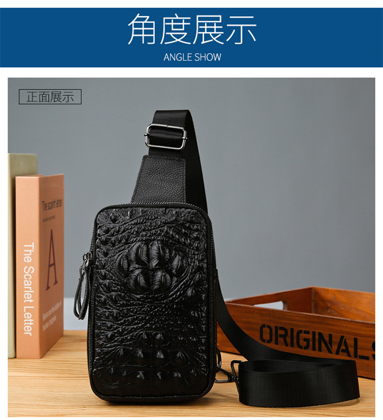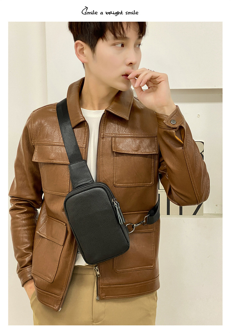 新款男士真皮胸包休闲大容量斜挎包户外潮流背包头层牛皮胸前挎包