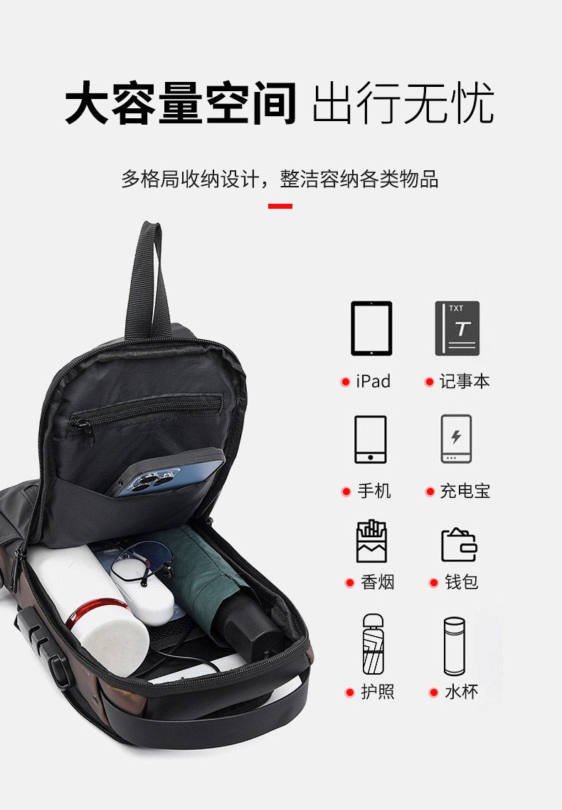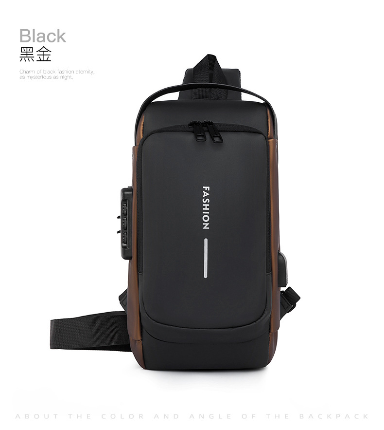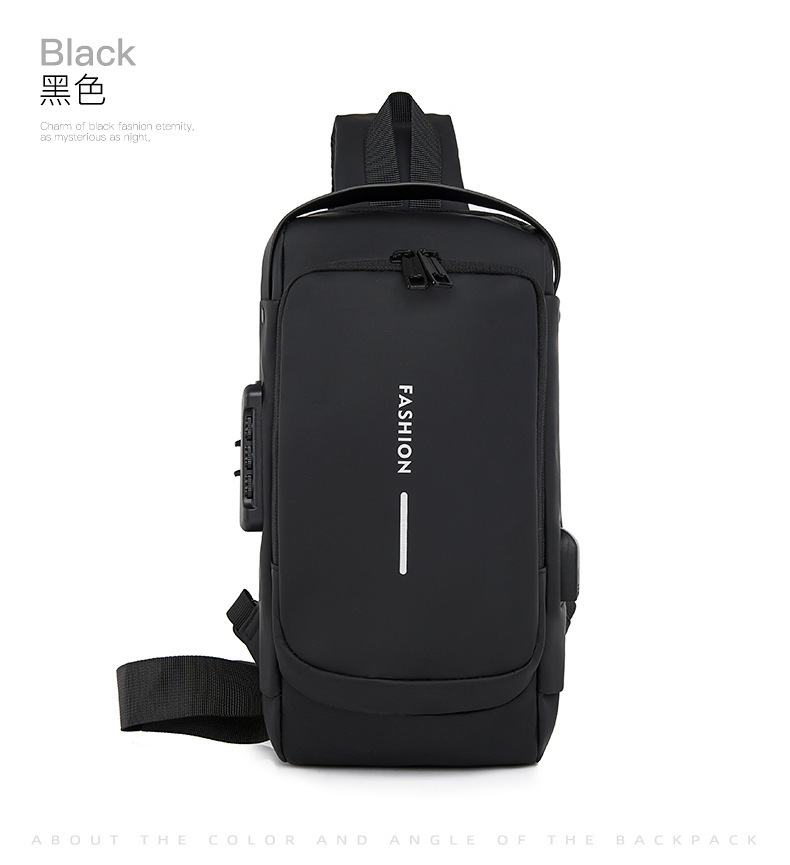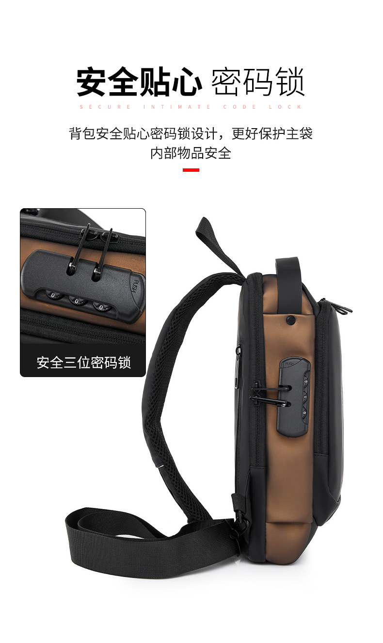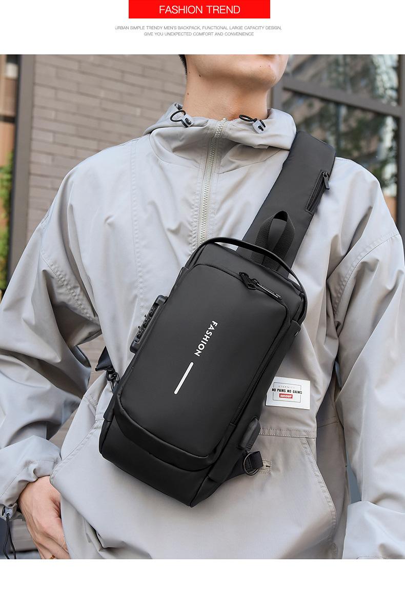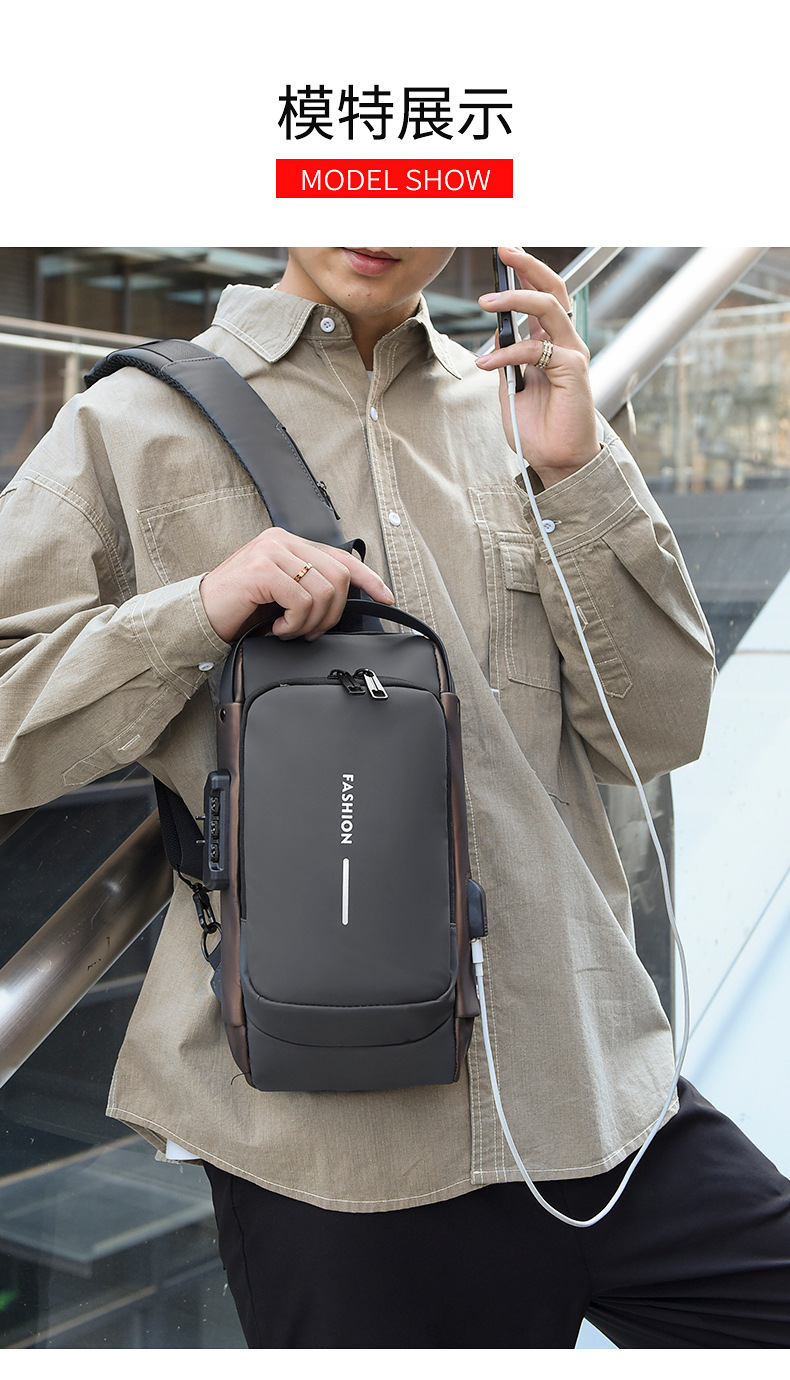 跨境爆款男士胸包单肩包休闲运动胸包多功能大容量男款胸包密码锁
