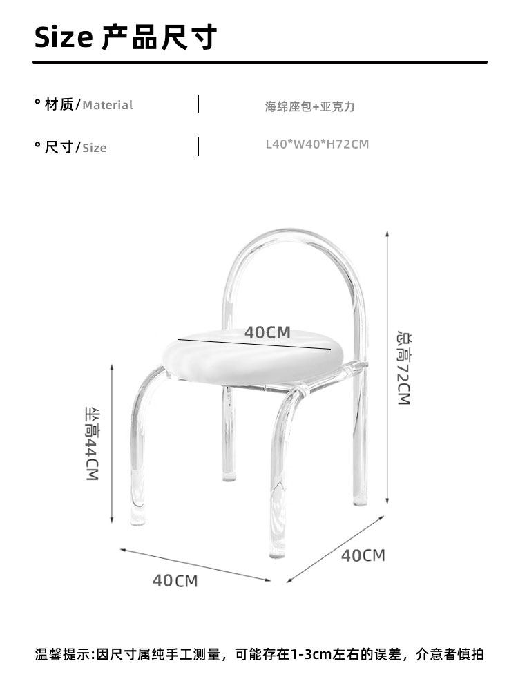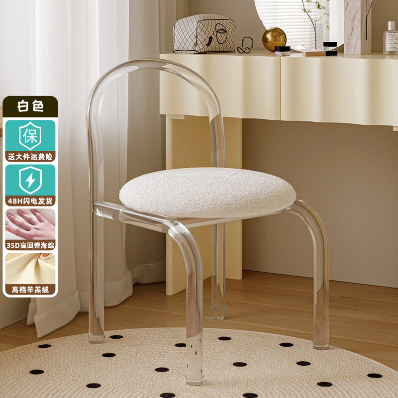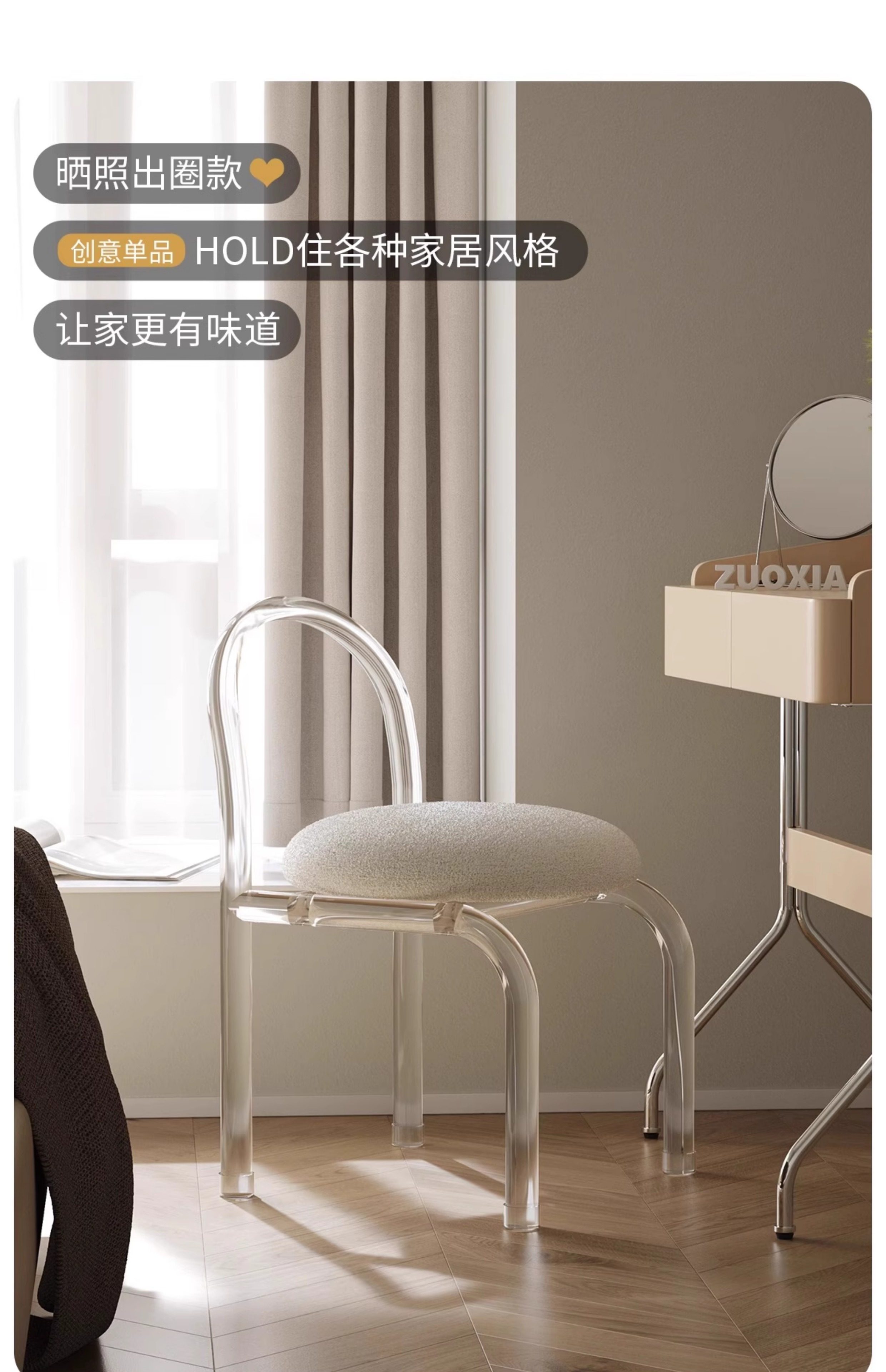 熹山造物 北欧简约卧室化妆椅家用靠背网红ins亚克力透明椅梳妆凳