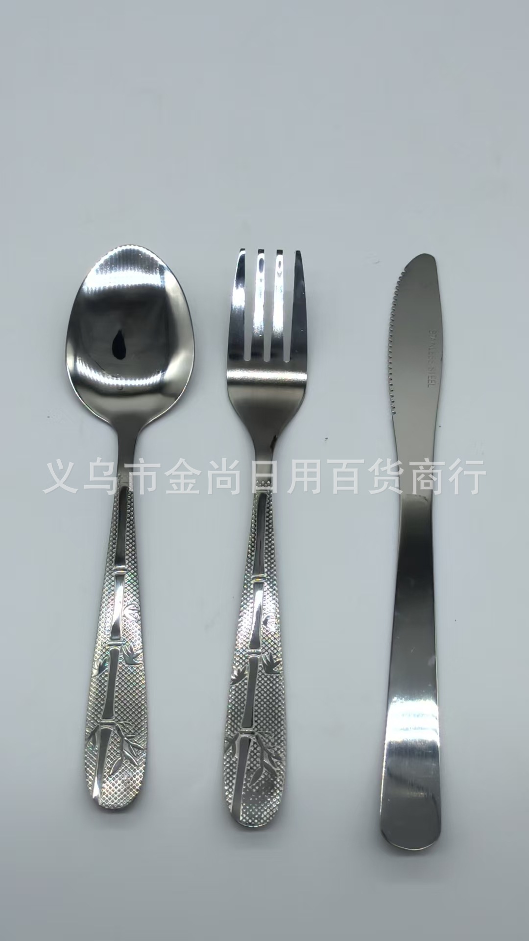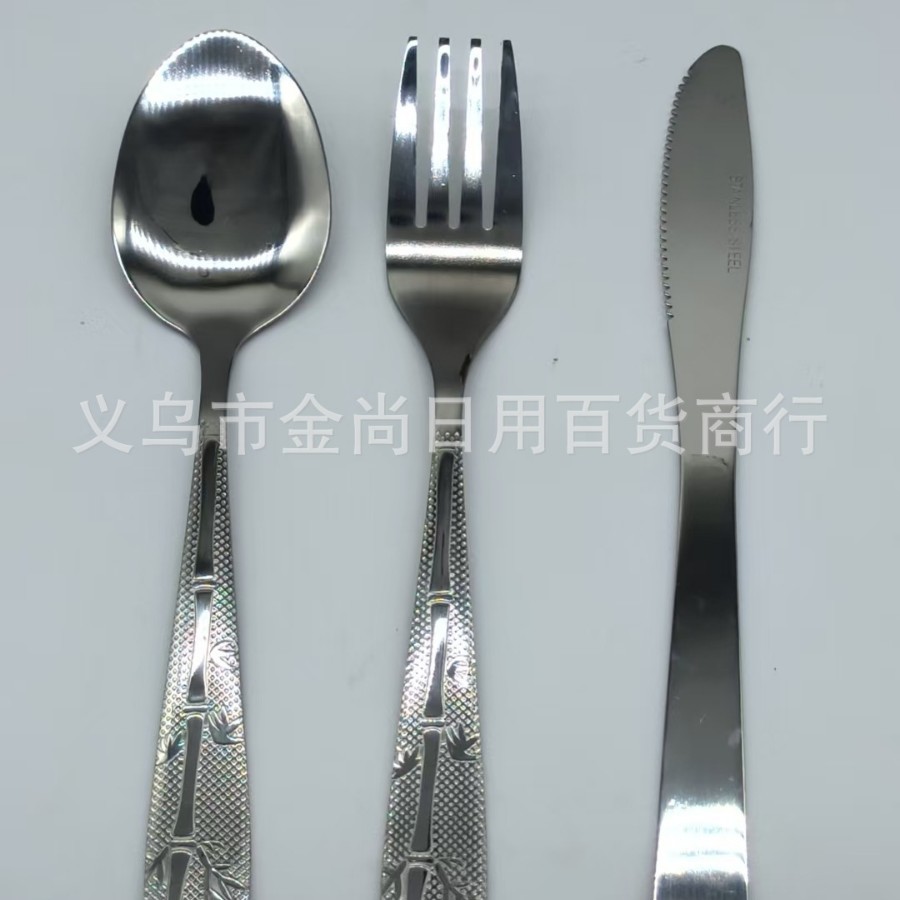竹纹2号410不锈钢餐具学生下午茶使用叉子勺子刀餐具套装