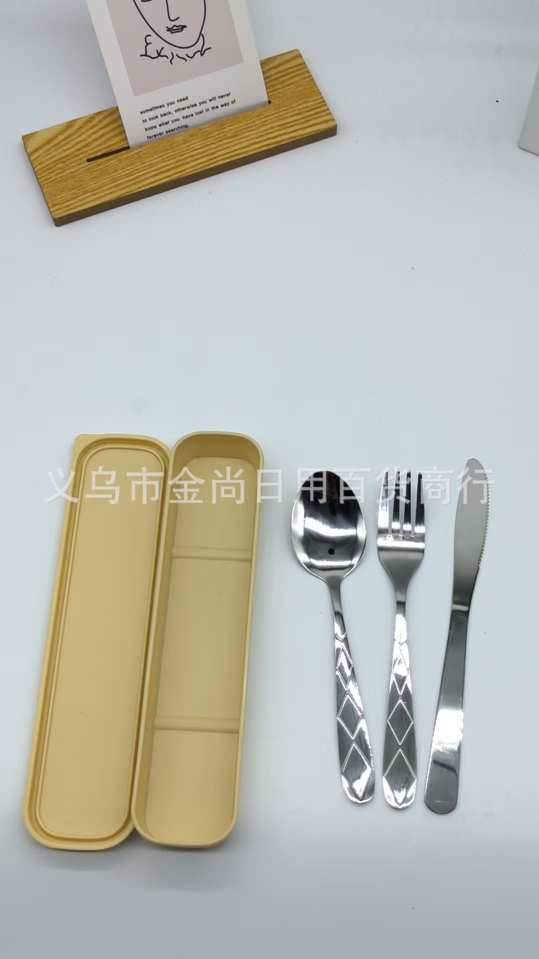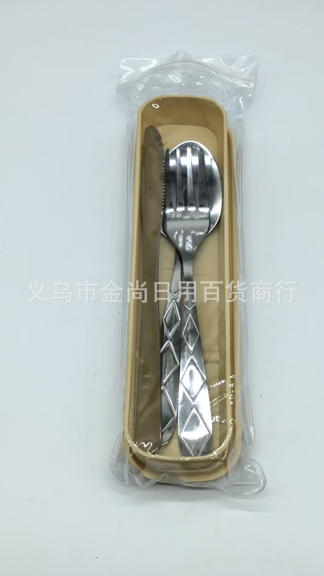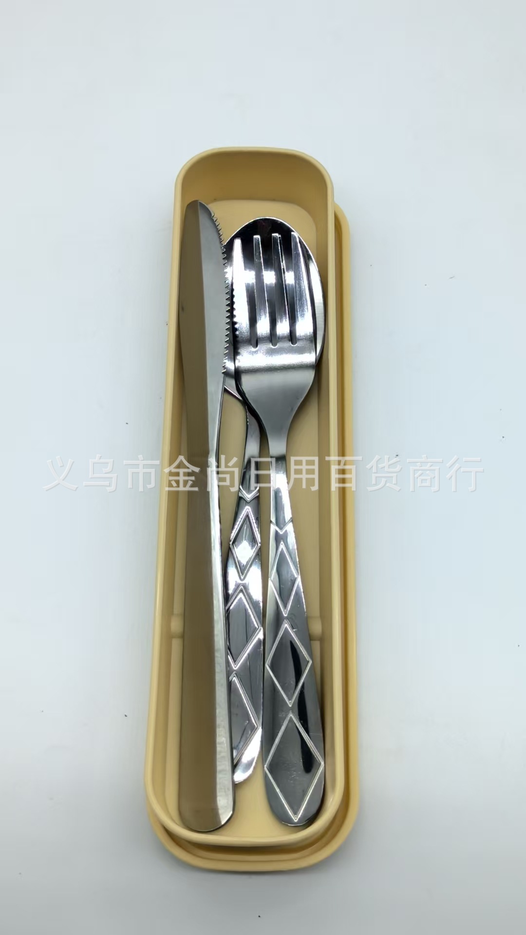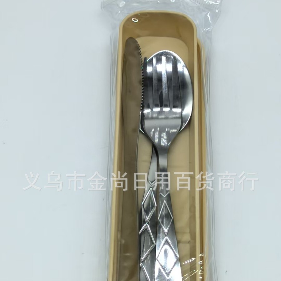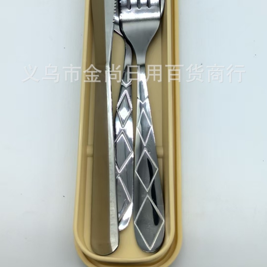 菱形2号餐具套装学生勺刀叉勺保管盒野餐便携餐具盒子