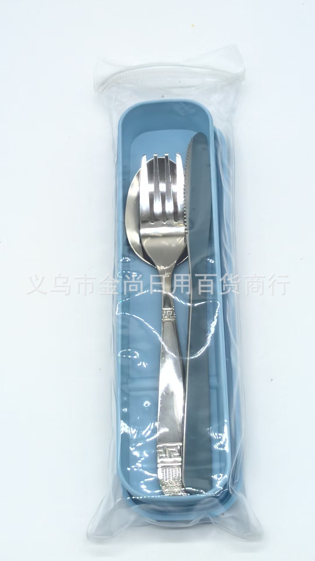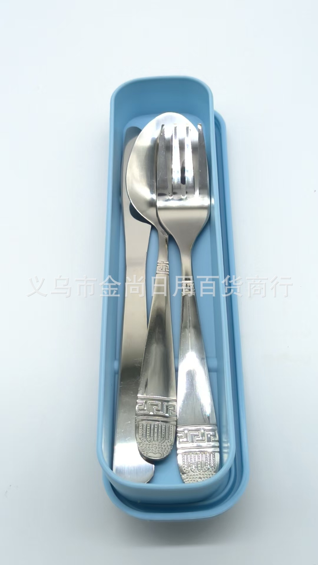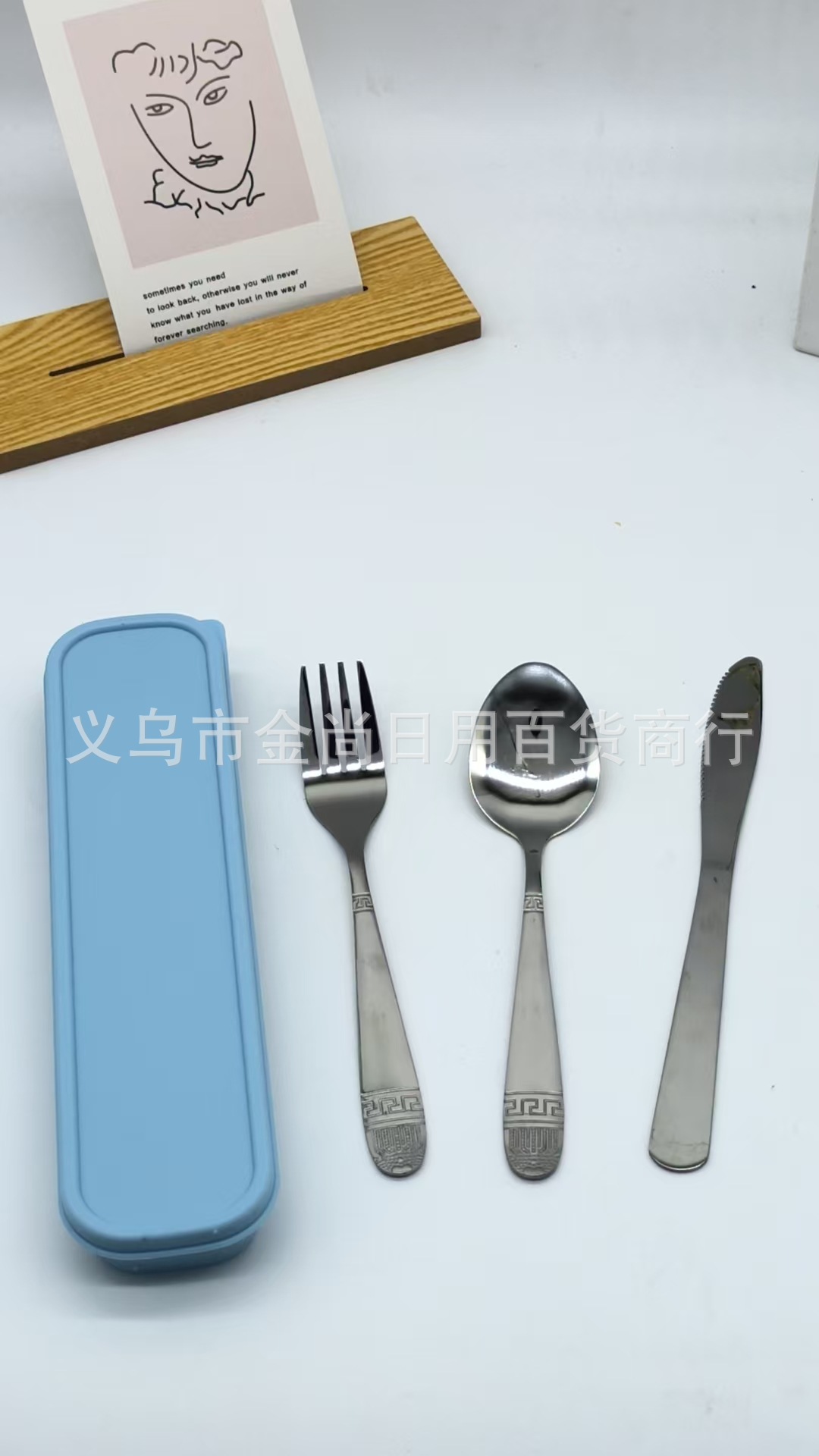 皇冠2号410不锈钢便携餐具勺子叉筷子三件套学生活动餐具套装