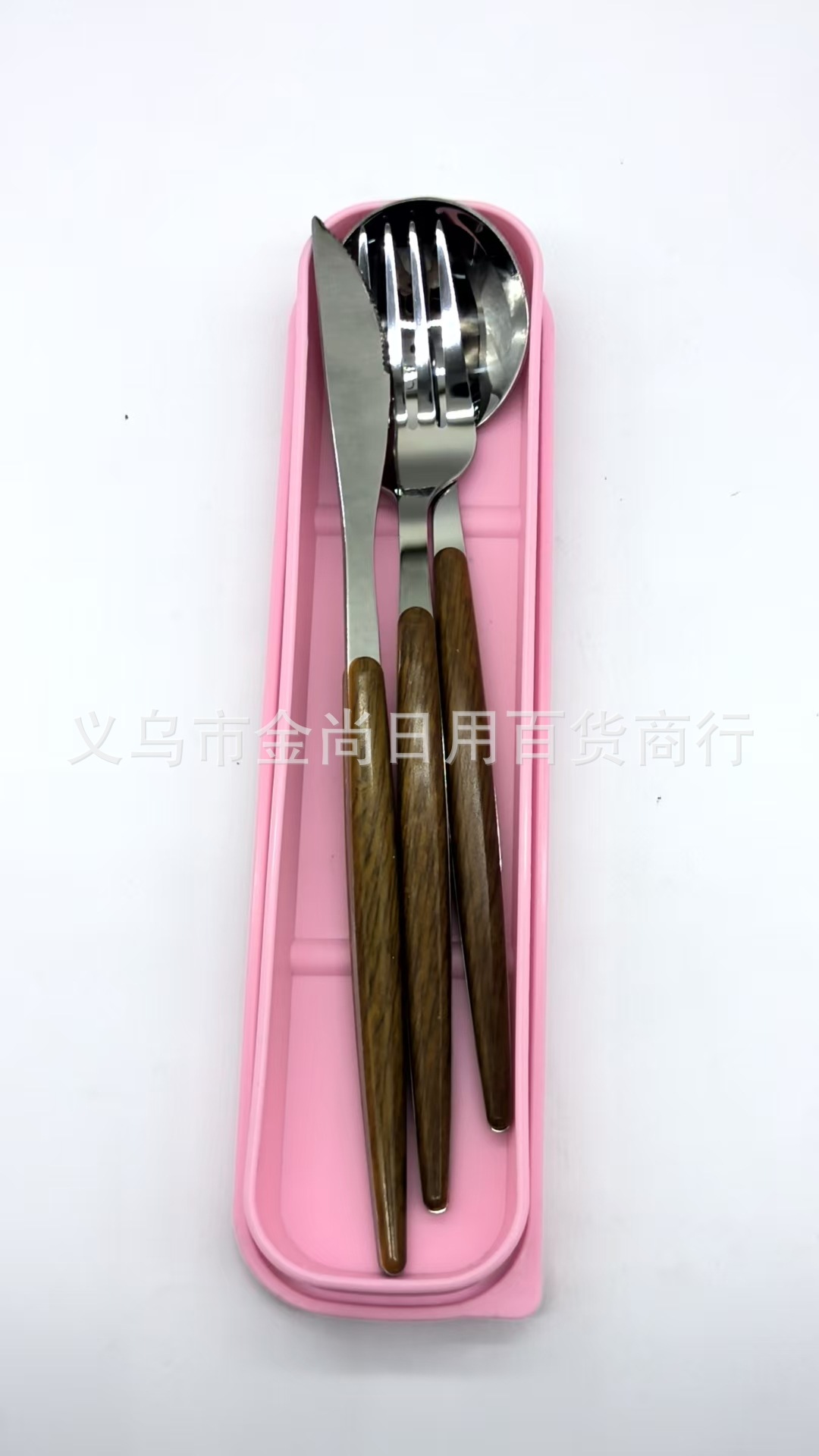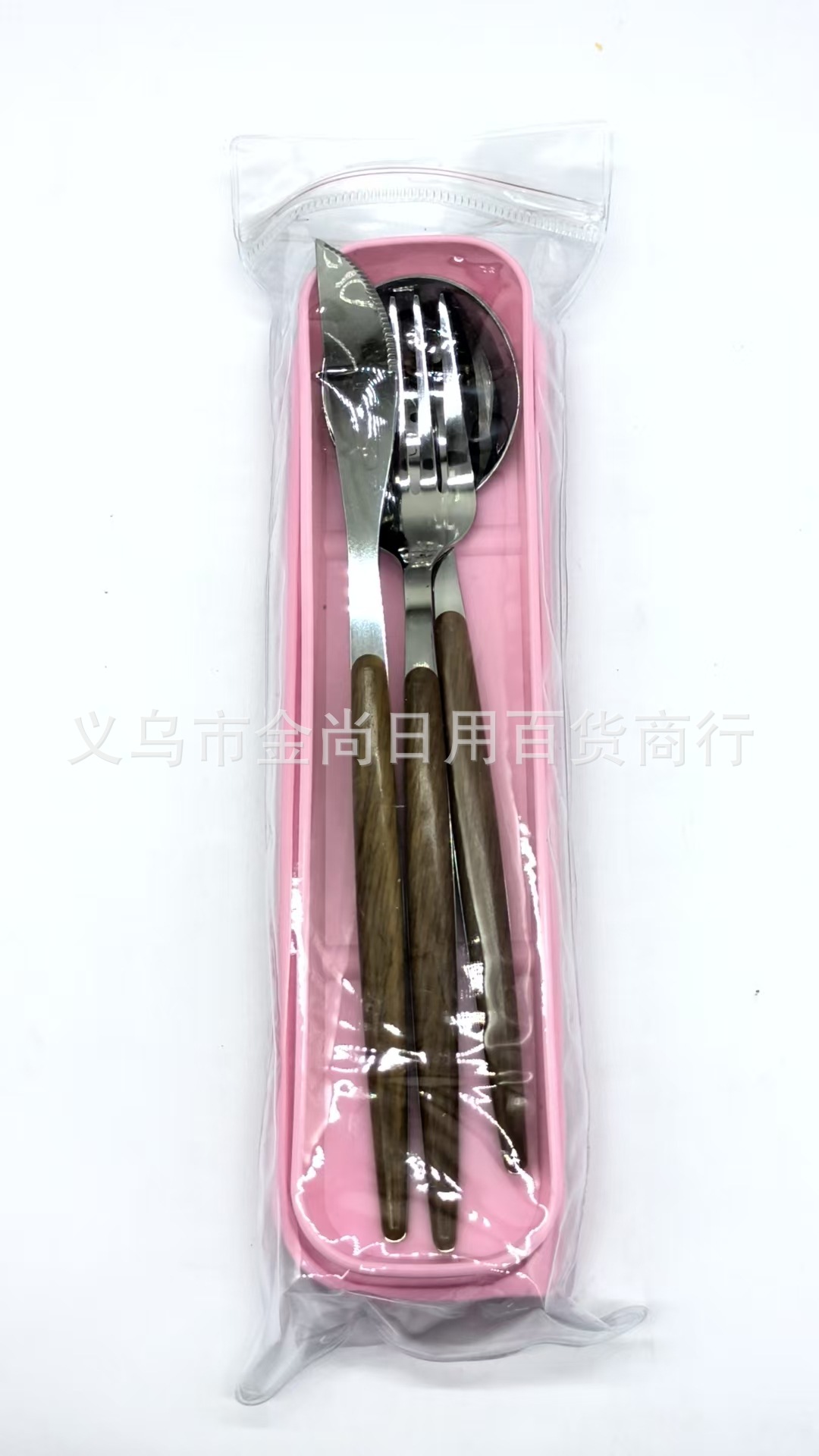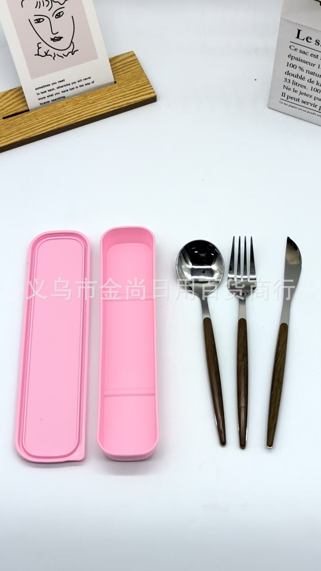 葡萄牙勺叉刀便携餐具盒三件套收纳盒学生方便携带三件套餐具套装