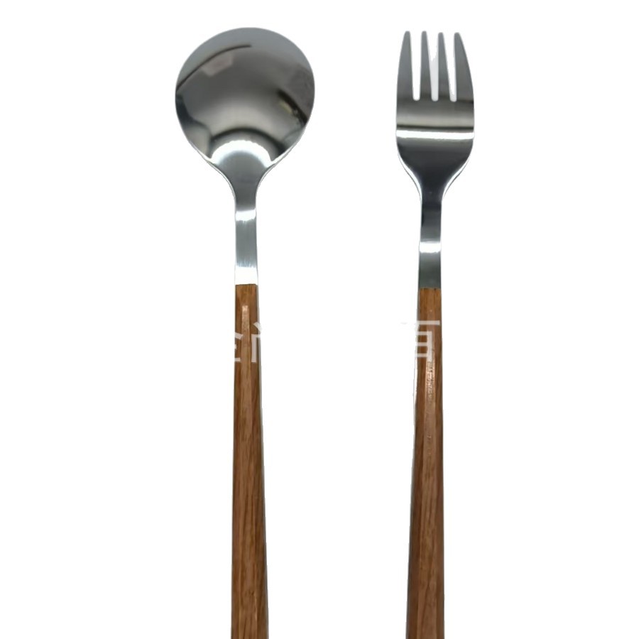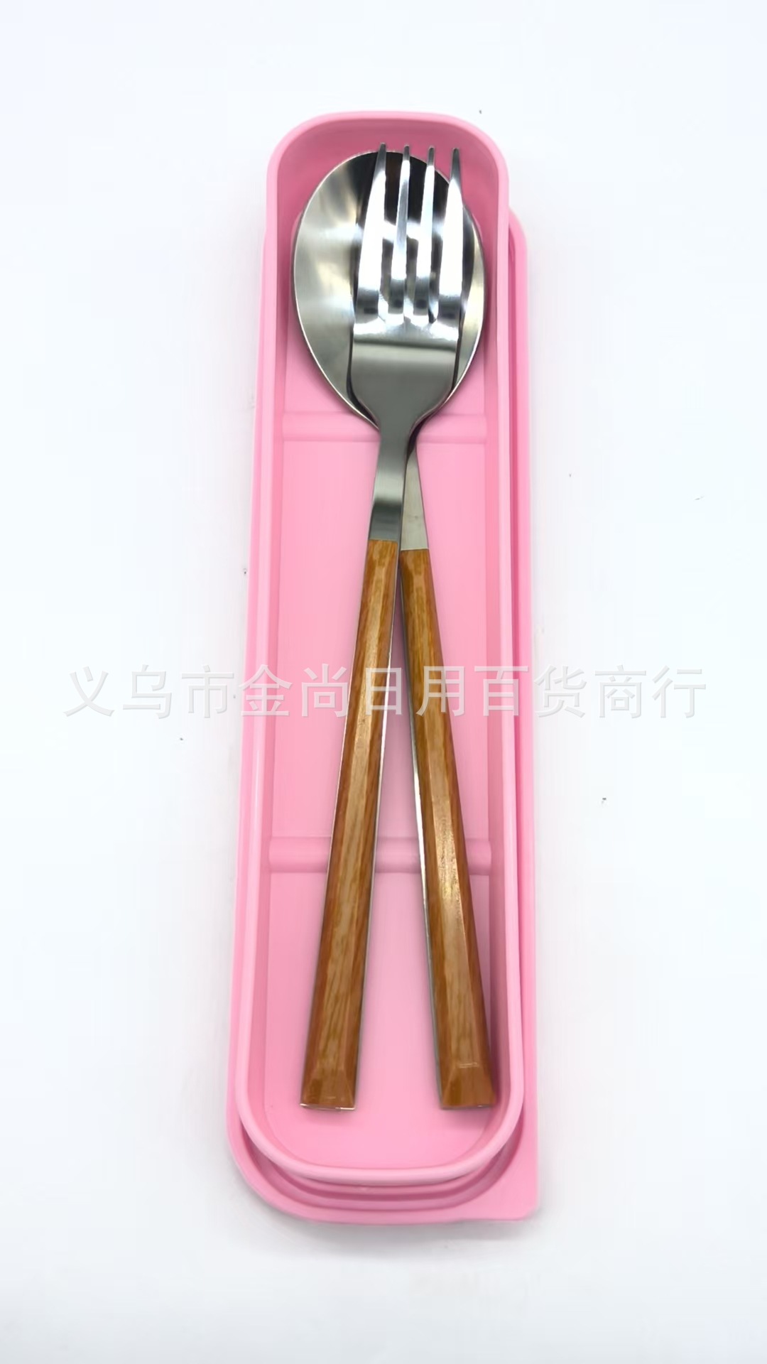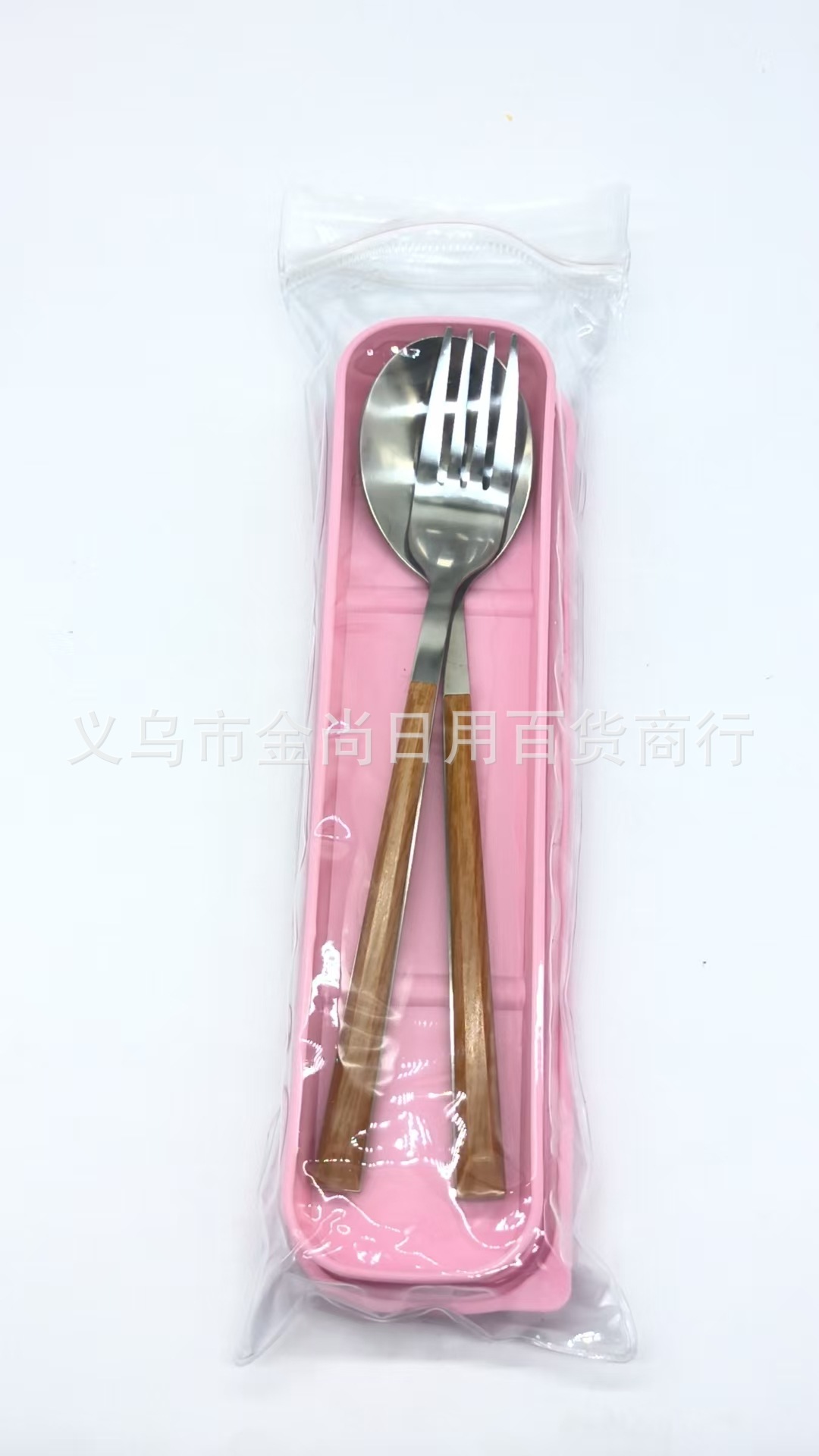 方夹柄勺叉410不锈钢便携餐具叉子勺子套装韩式两件套户外野餐学