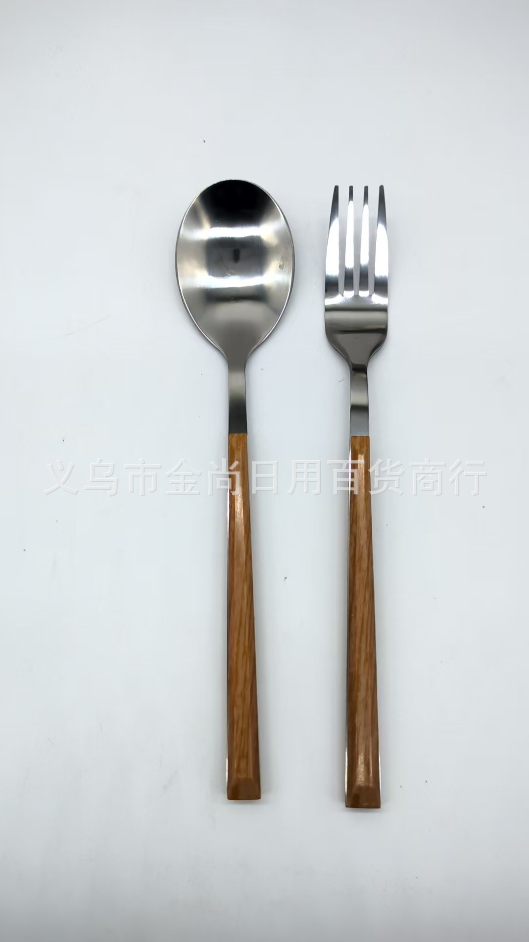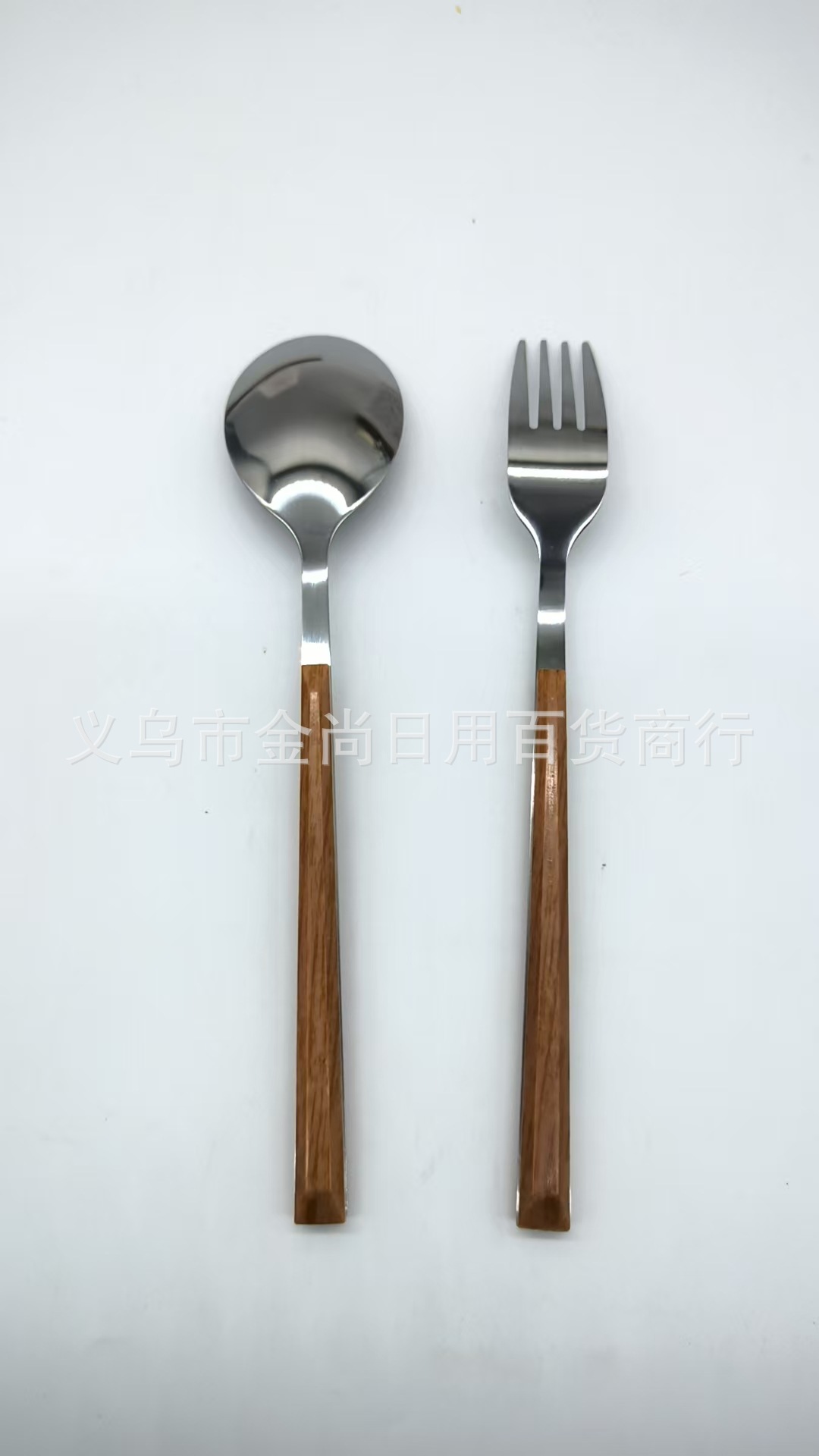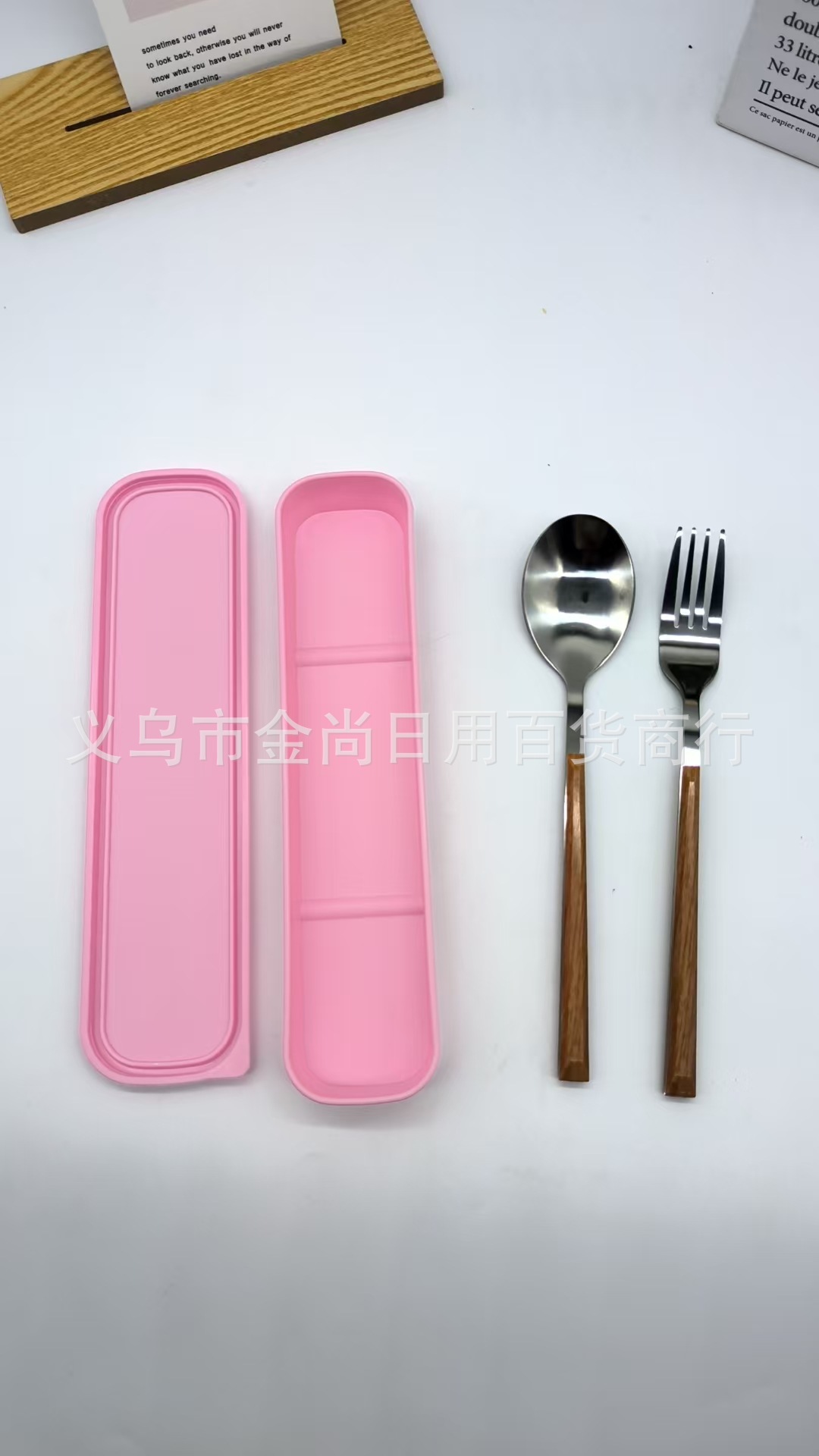 方夹柄勺叉410不锈钢便携餐具叉子勺子套装韩式两件套户外野餐学