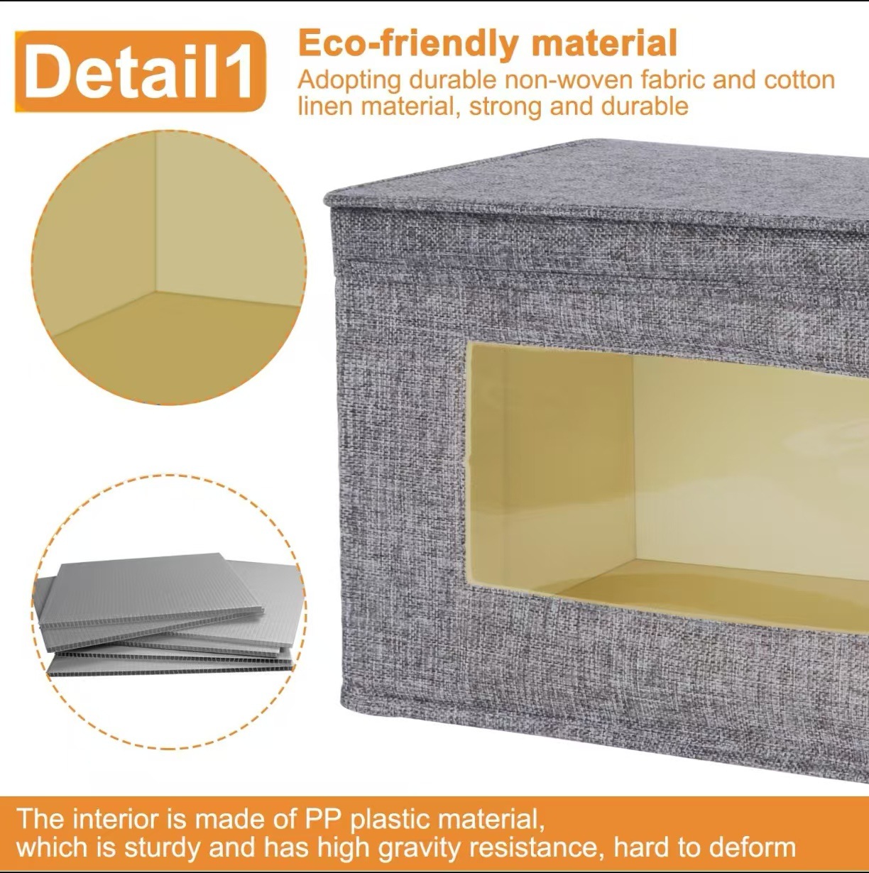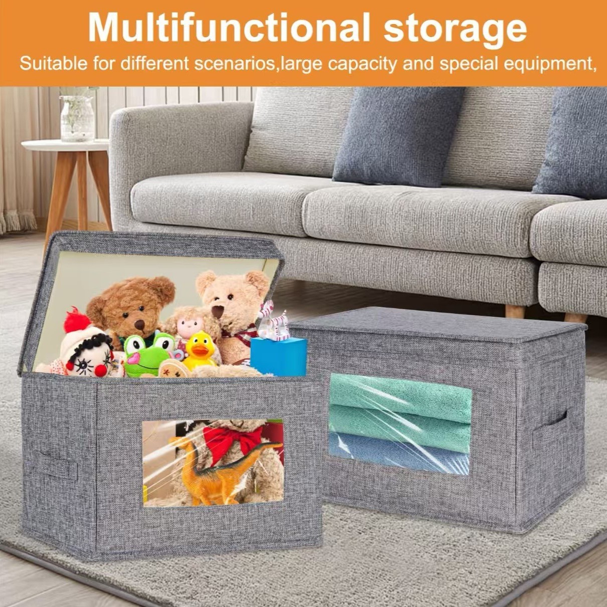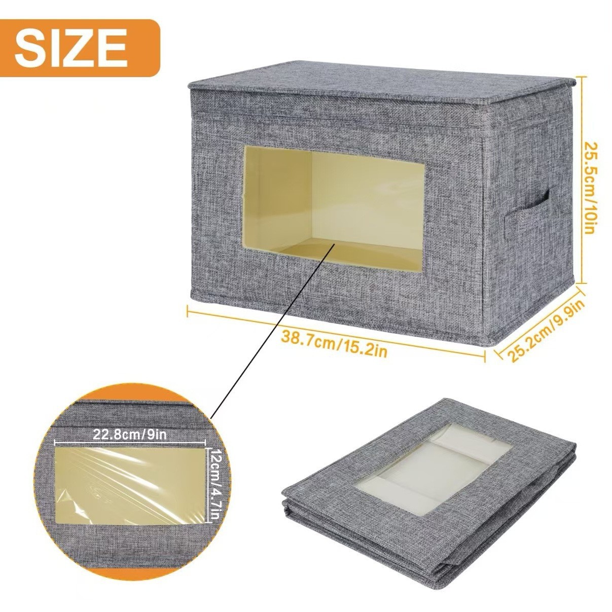 带盖储物箱带窗户织物储物盒可折叠衣柜卧室办公室收纳衣服毛毯
