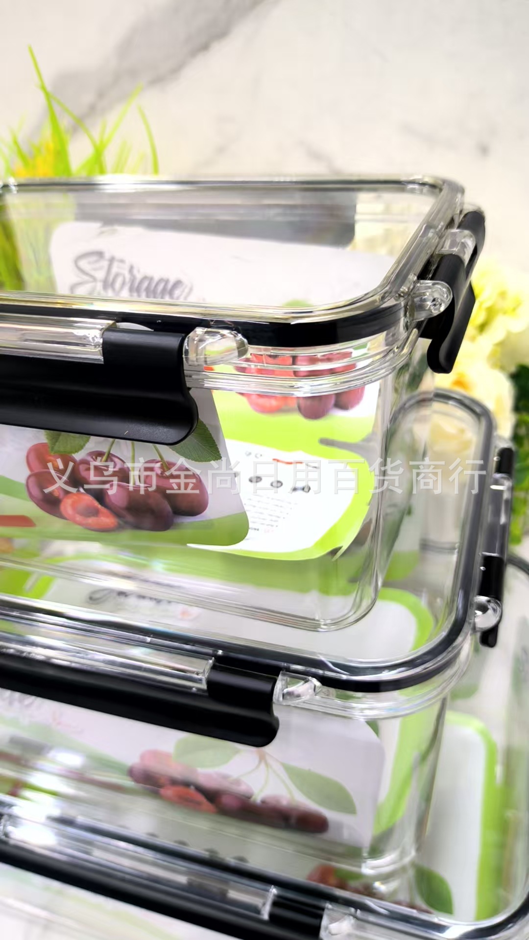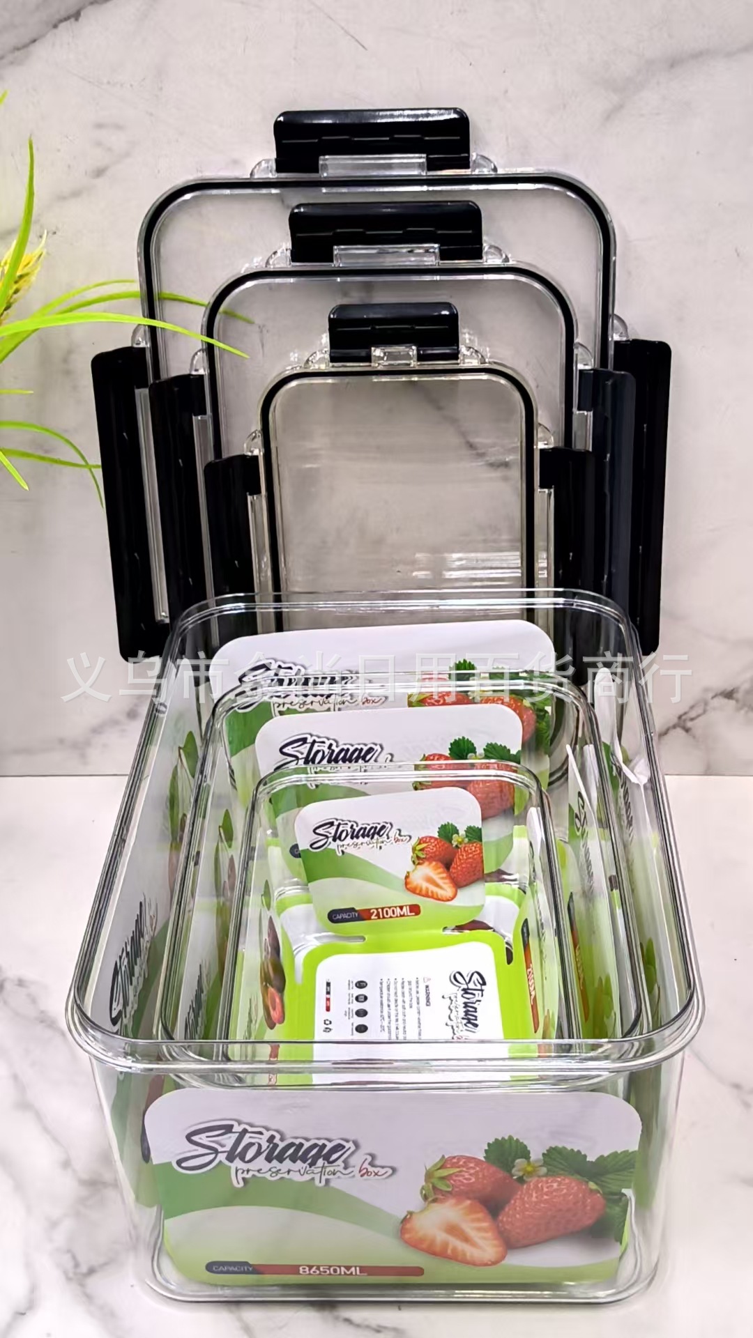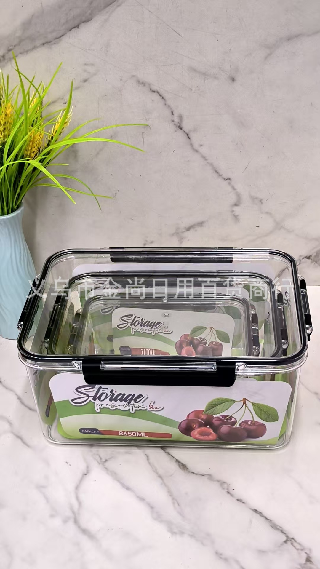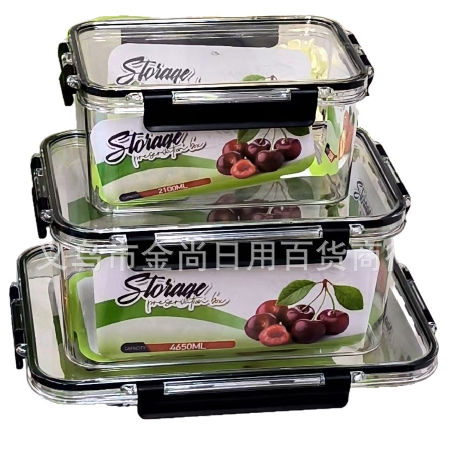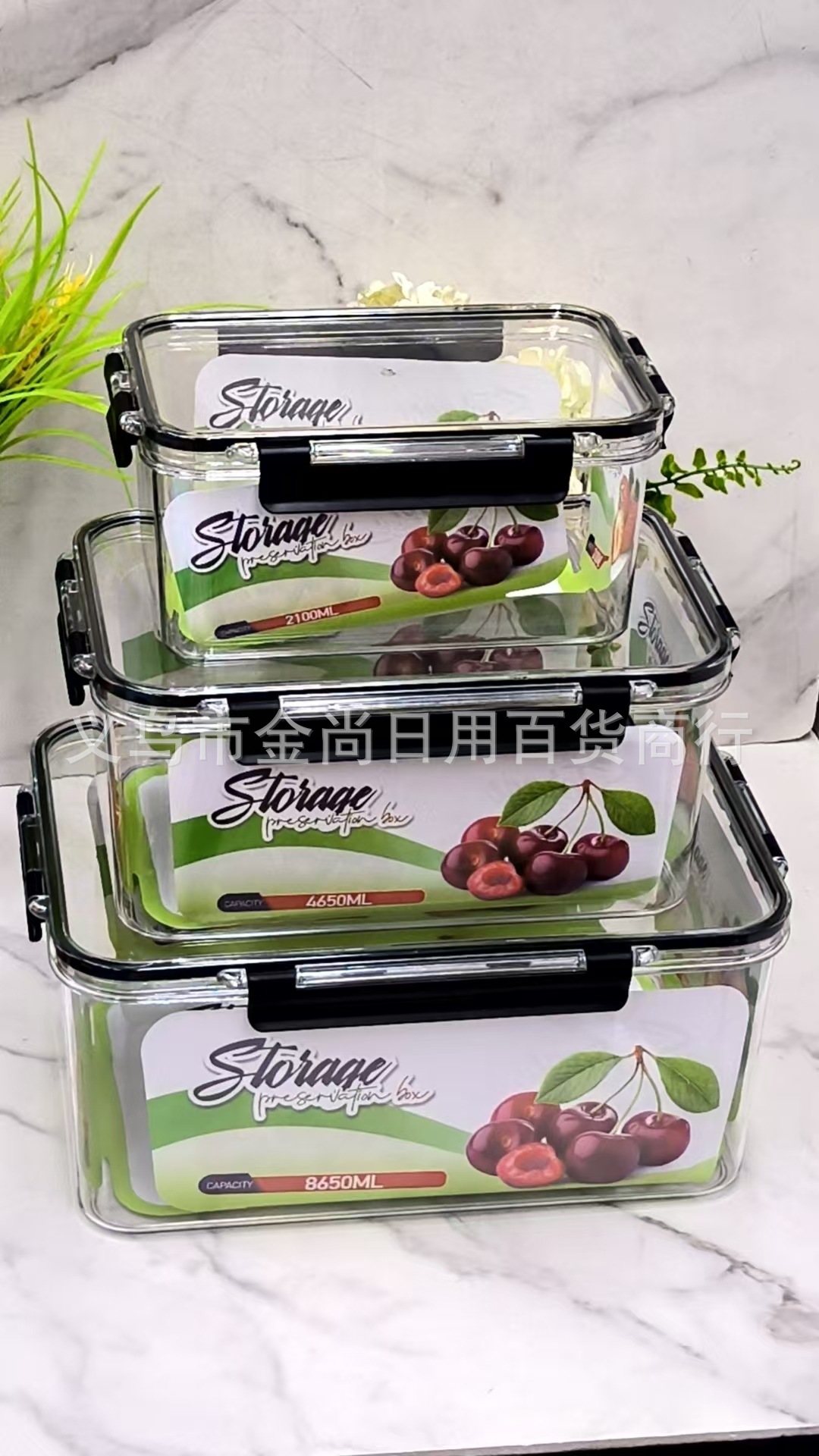 厨房冰箱三件套长方形保鲜盒塑料饭盒食品餐盒水果收纳密封盒