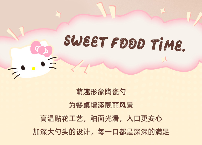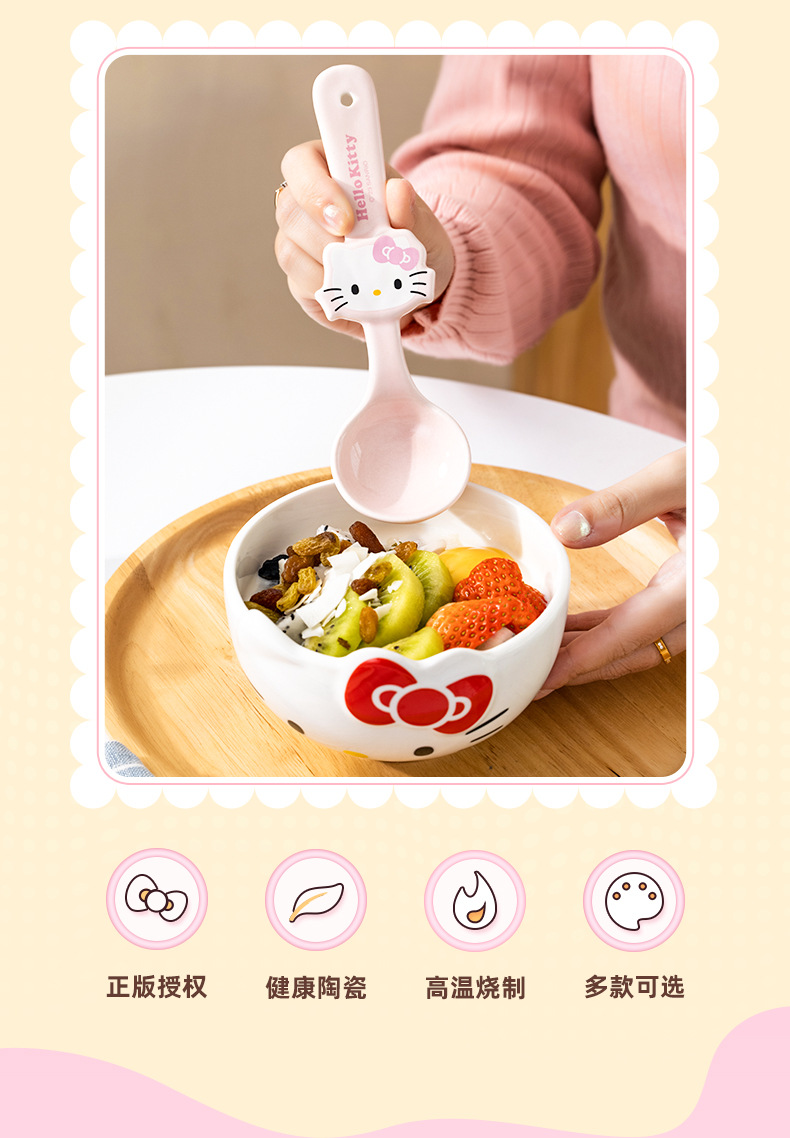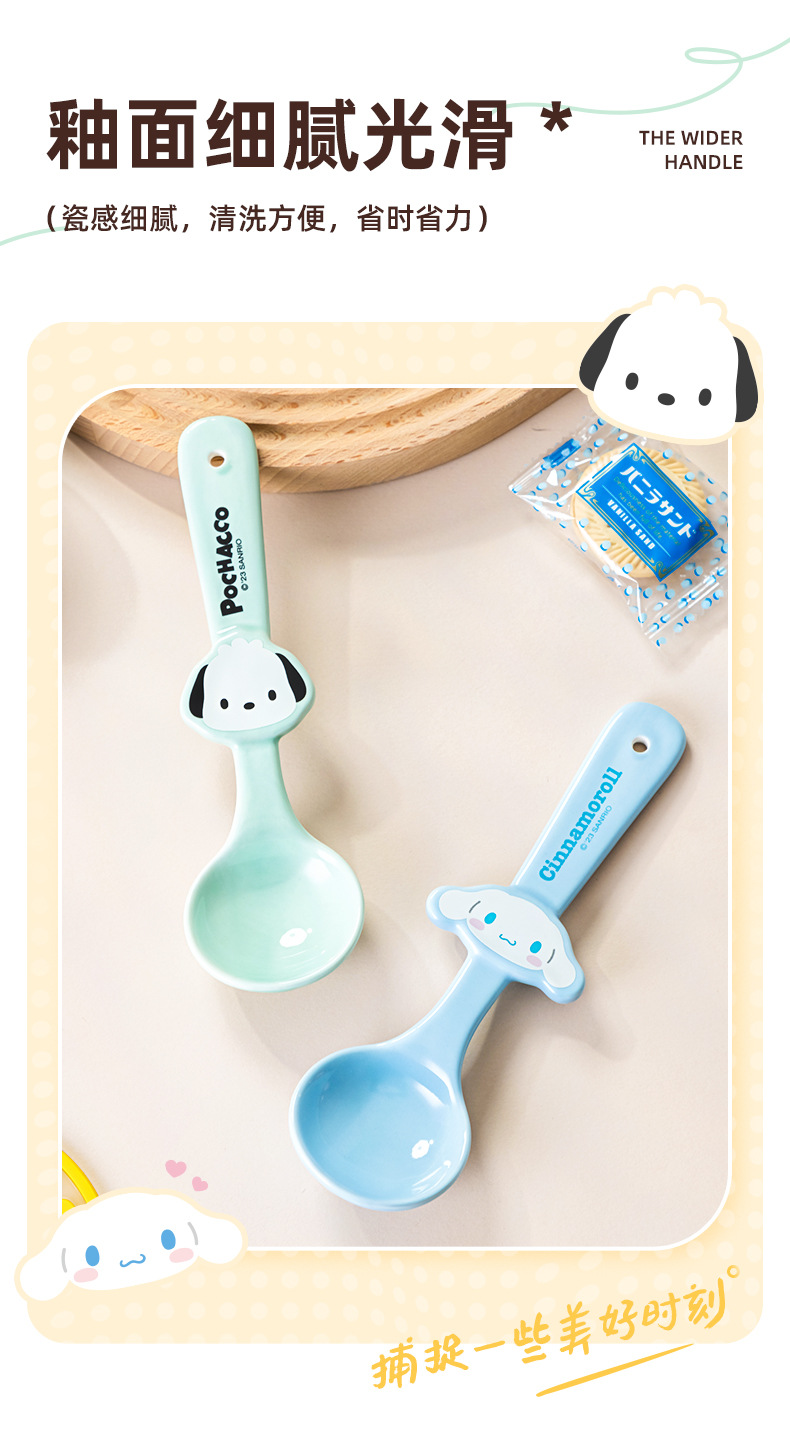 三丽鸥陶瓷勺子可爱小汤勺家用调羹儿童吃饭勺高颜值卡通汤匙批发