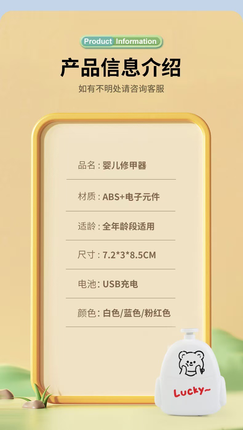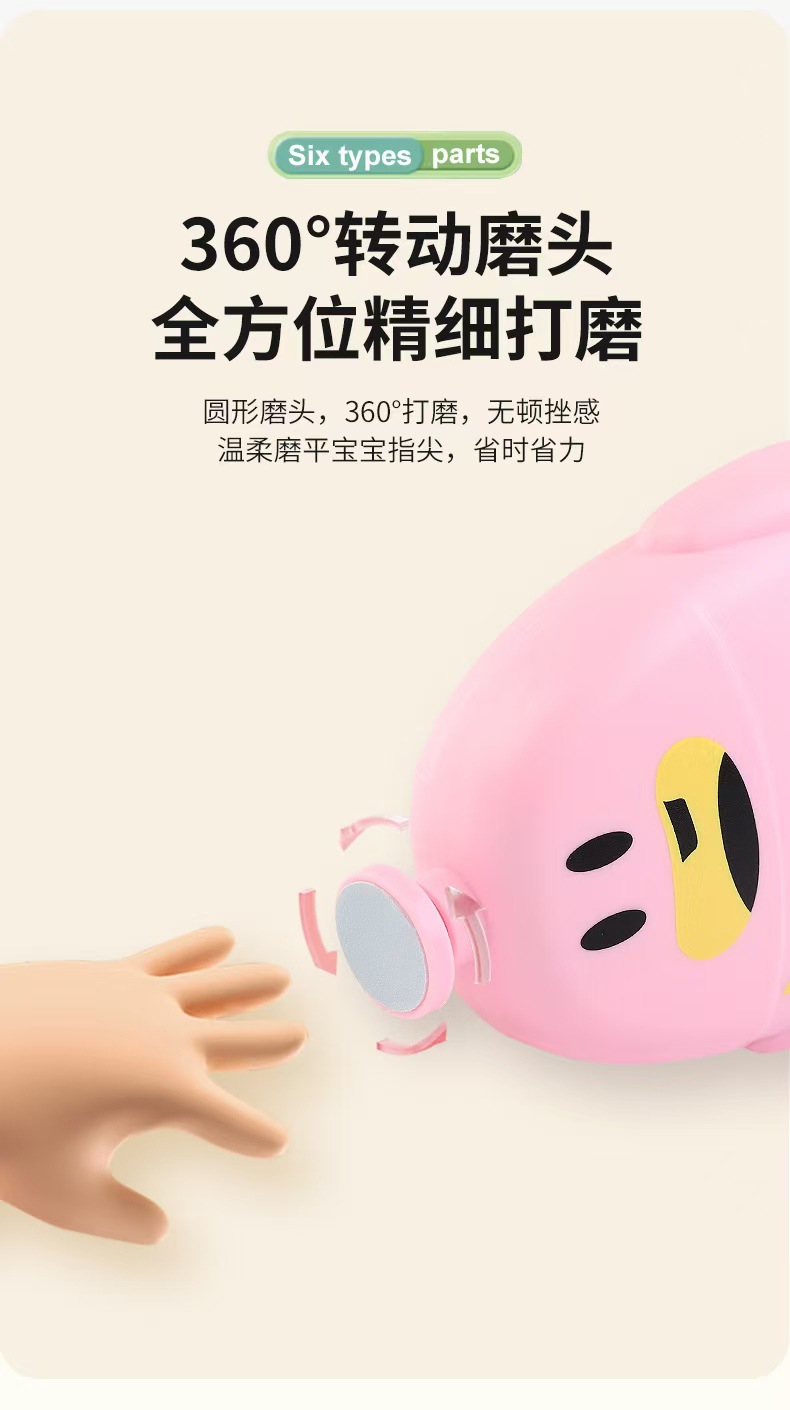 婴儿卡通自动磨甲器 儿童智能修甲器打磨器便携式USB电动美甲礼品