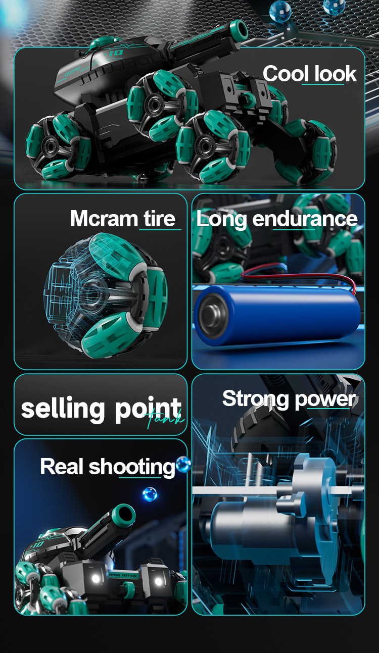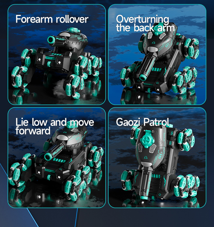 六轮特技坦克遥控儿童可发射可充电灯光音乐手势感应男孩玩具批发